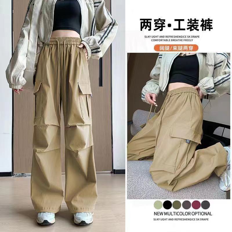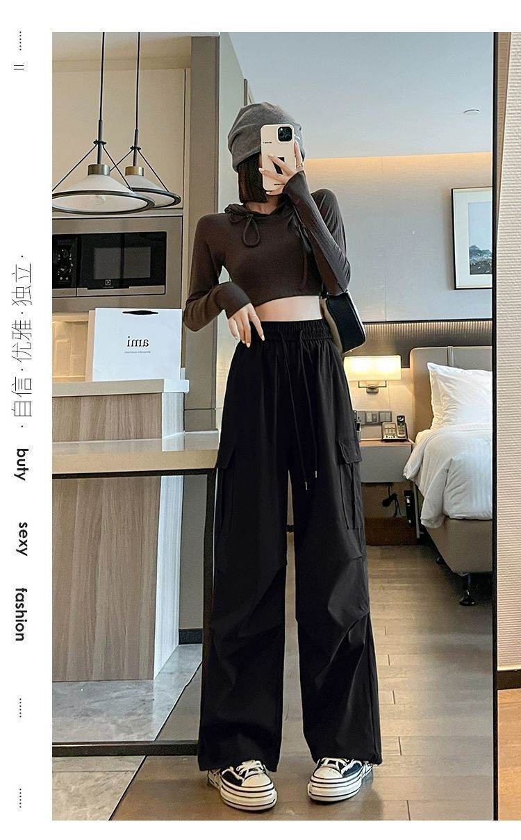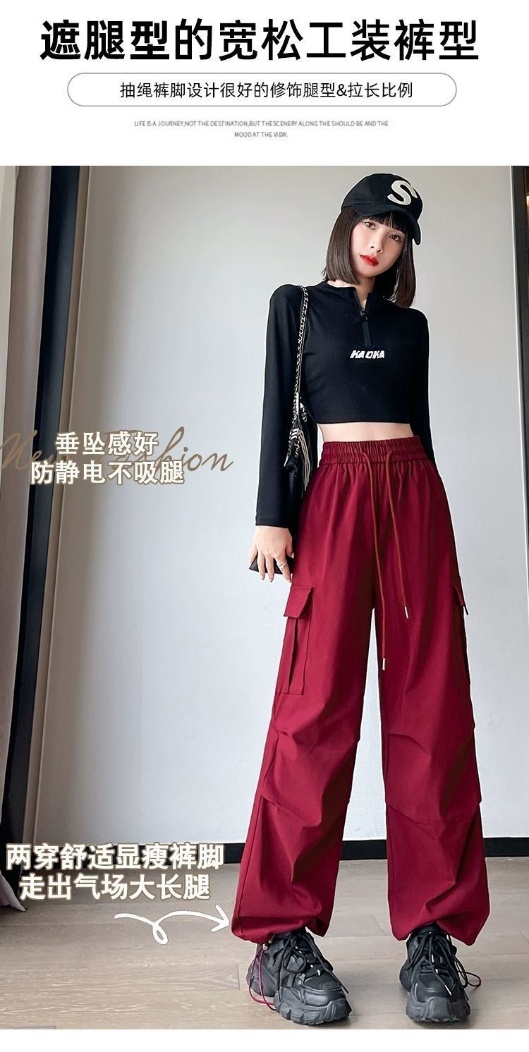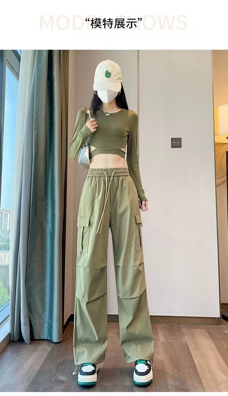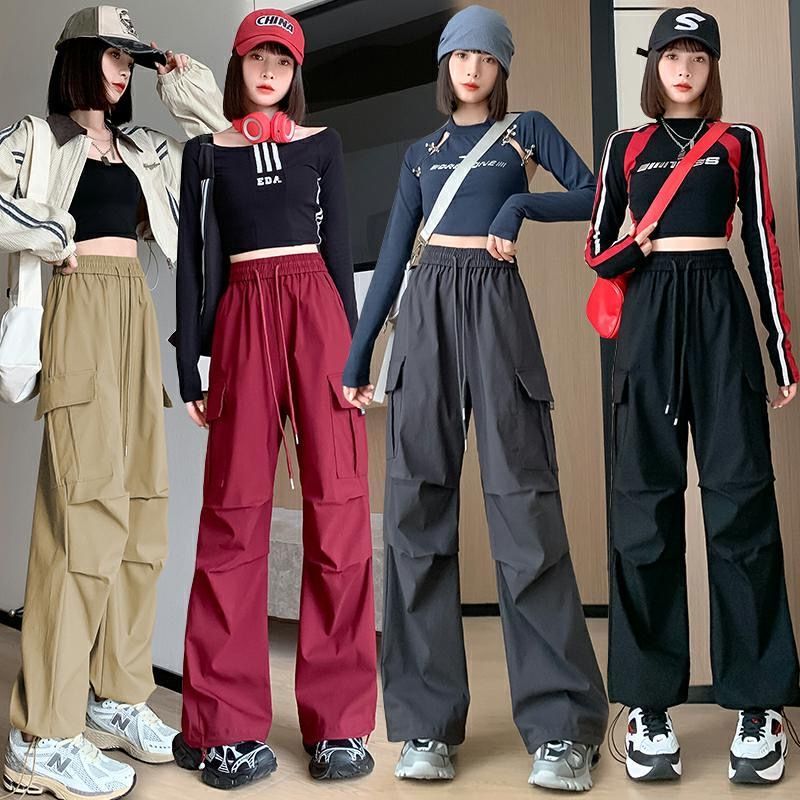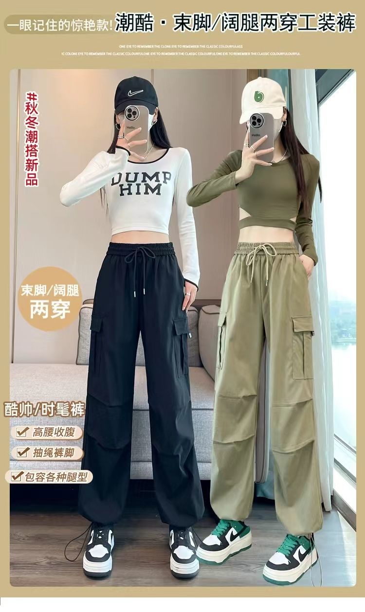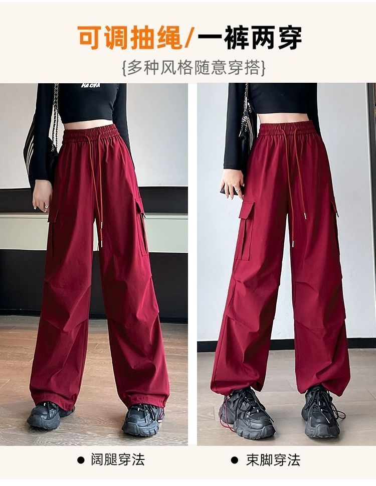 高腰直筒工装裤BF宽松休闲运动显瘦黑色阔腿薄荷曼波男女新款裤子