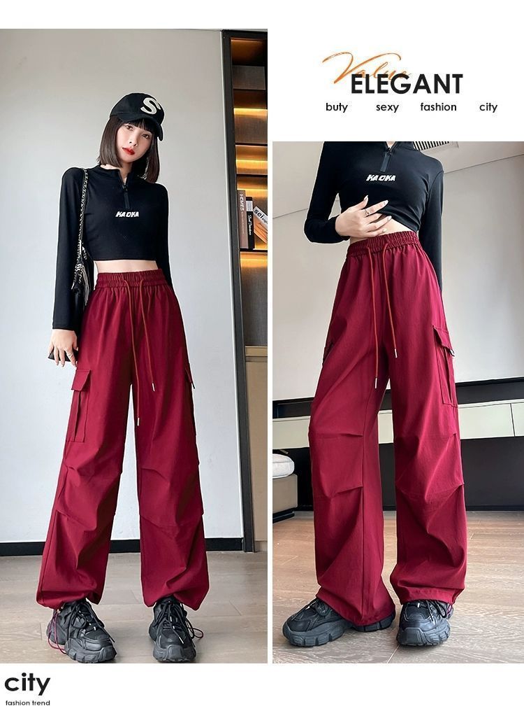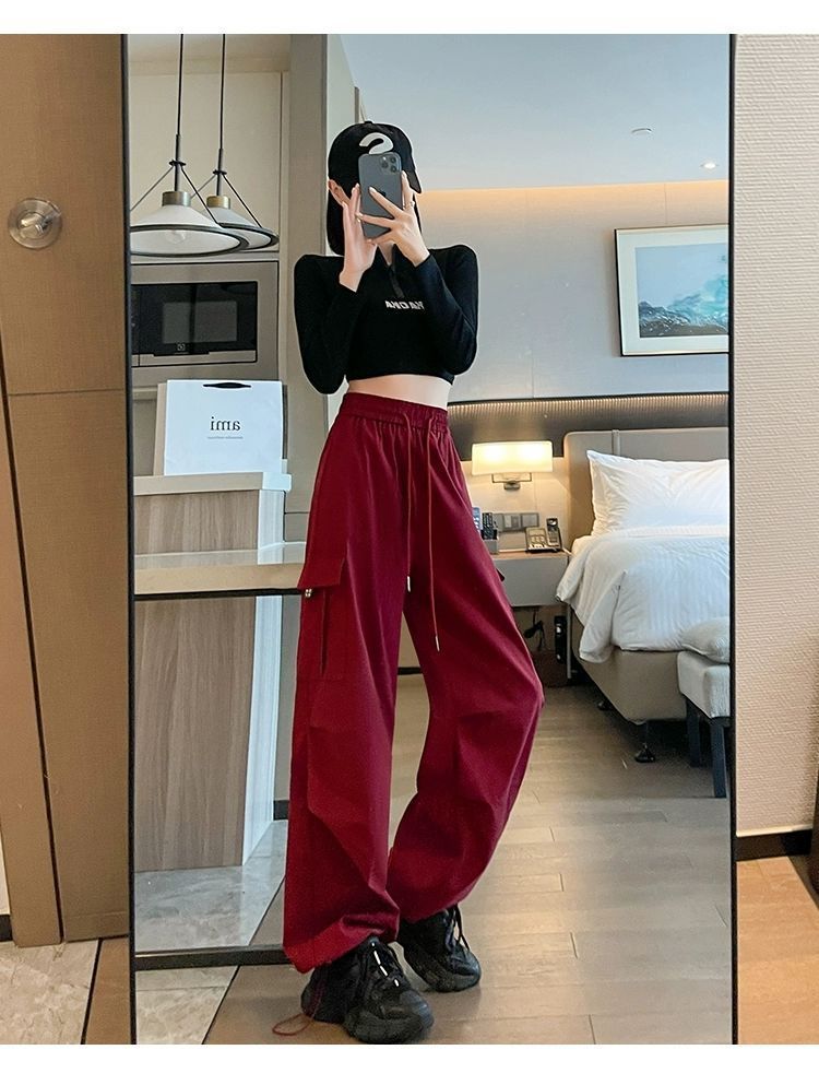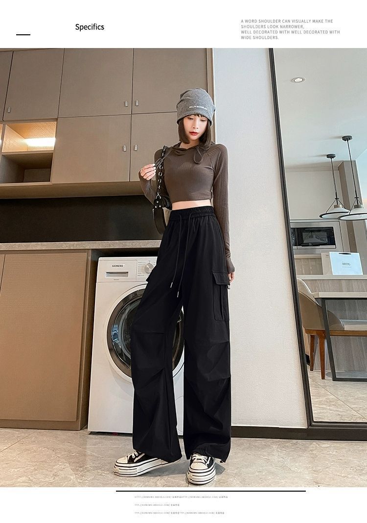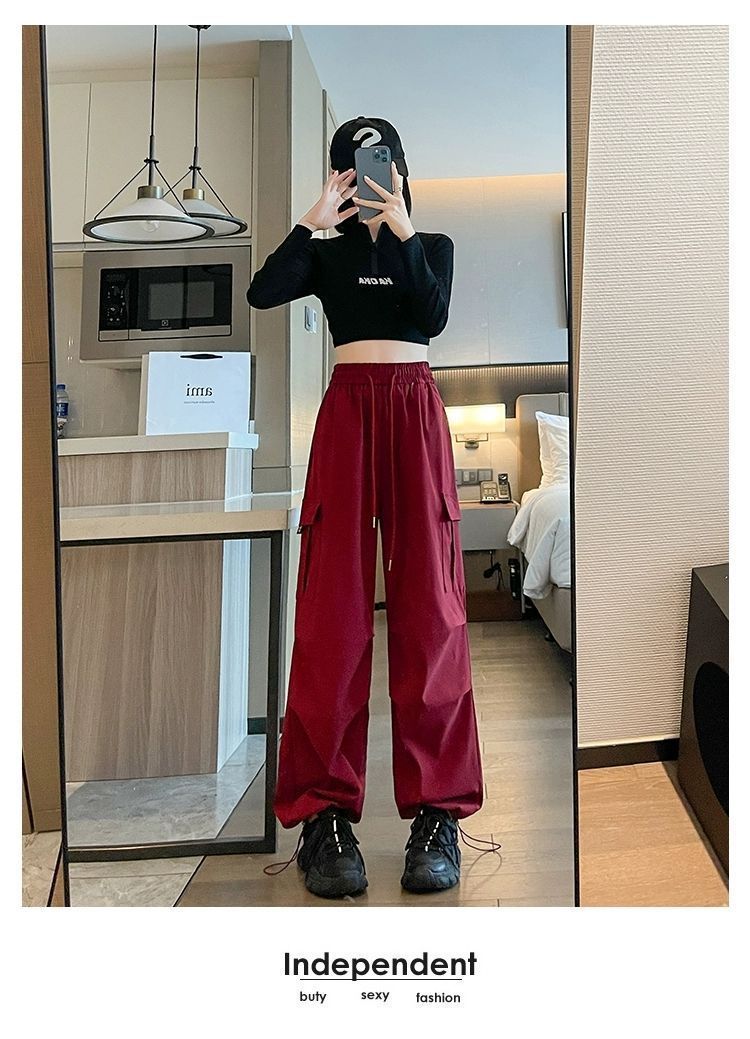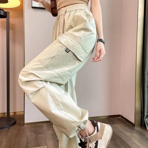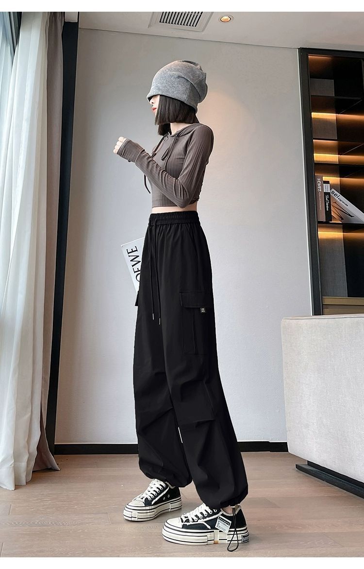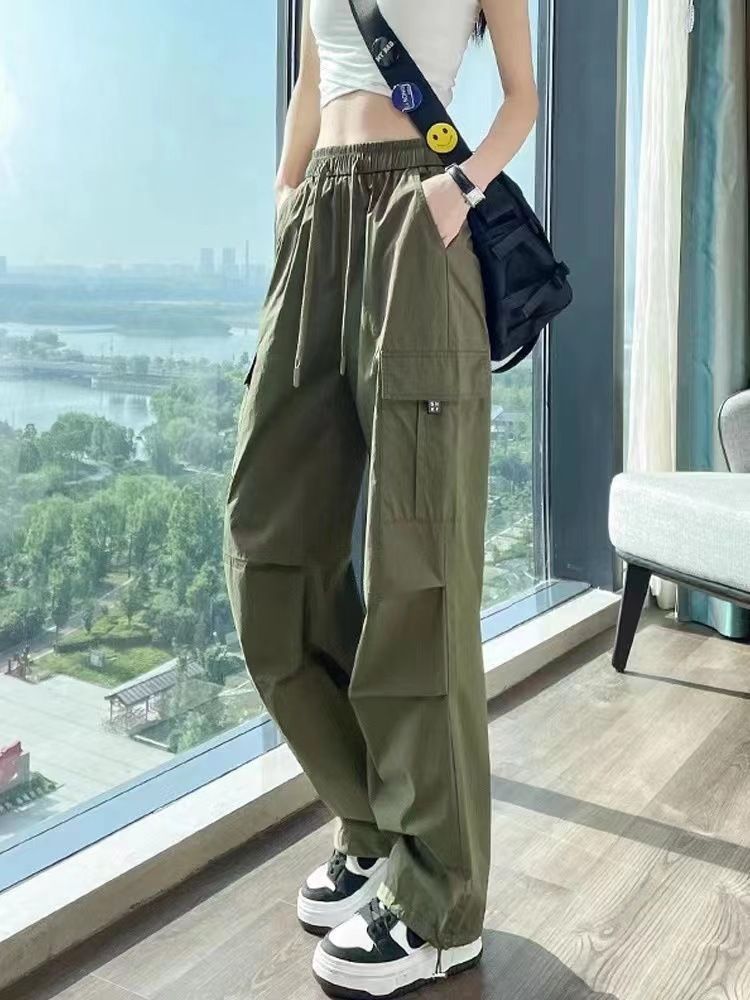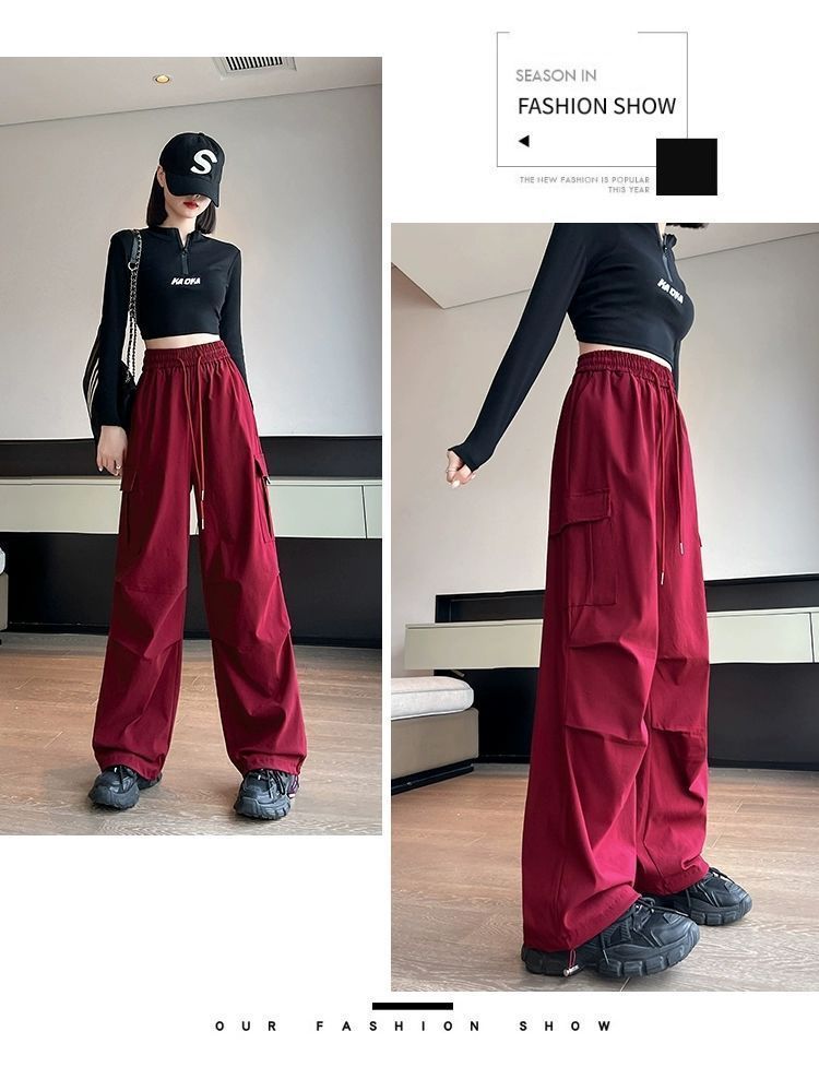高腰直筒工装裤BF宽松休闲运动显瘦黑色阔腿薄荷曼波男女新款裤子