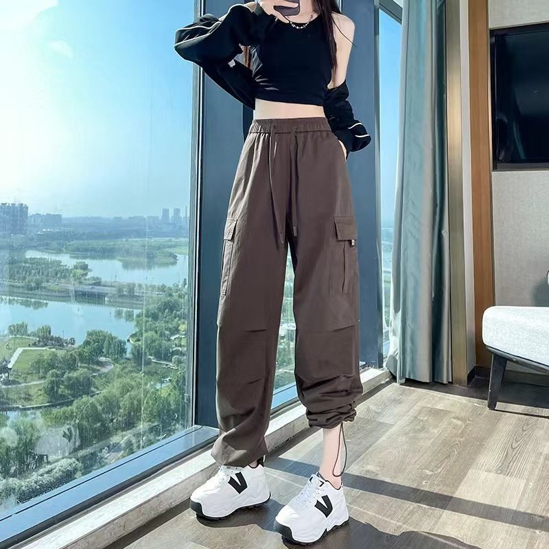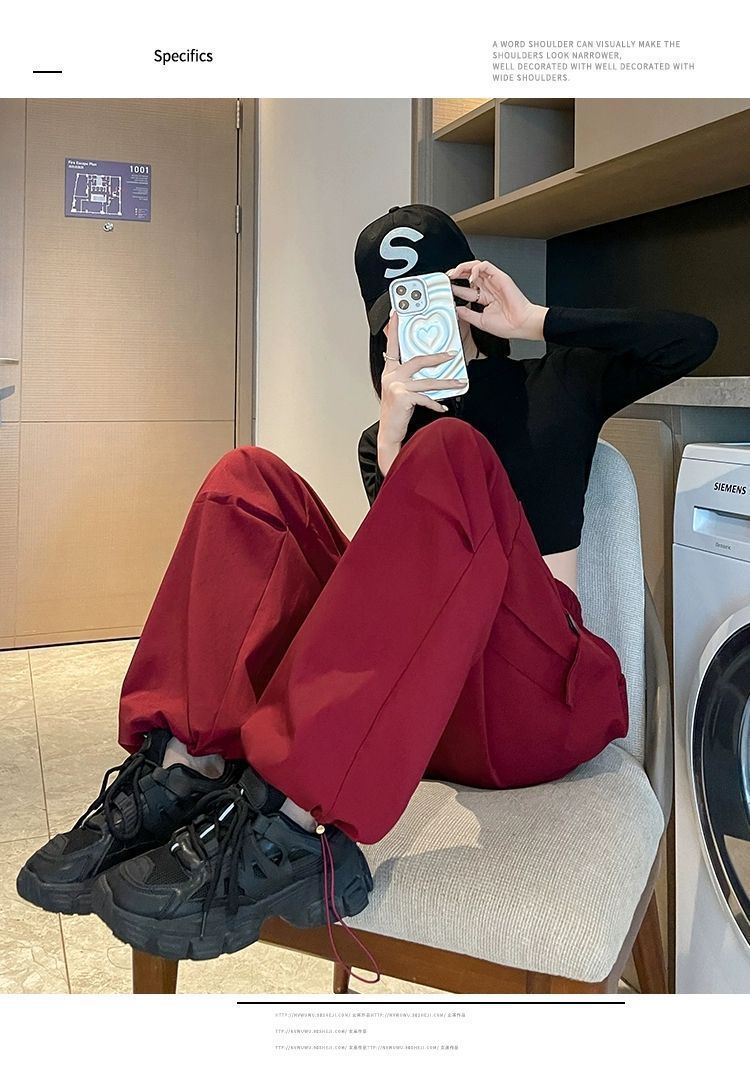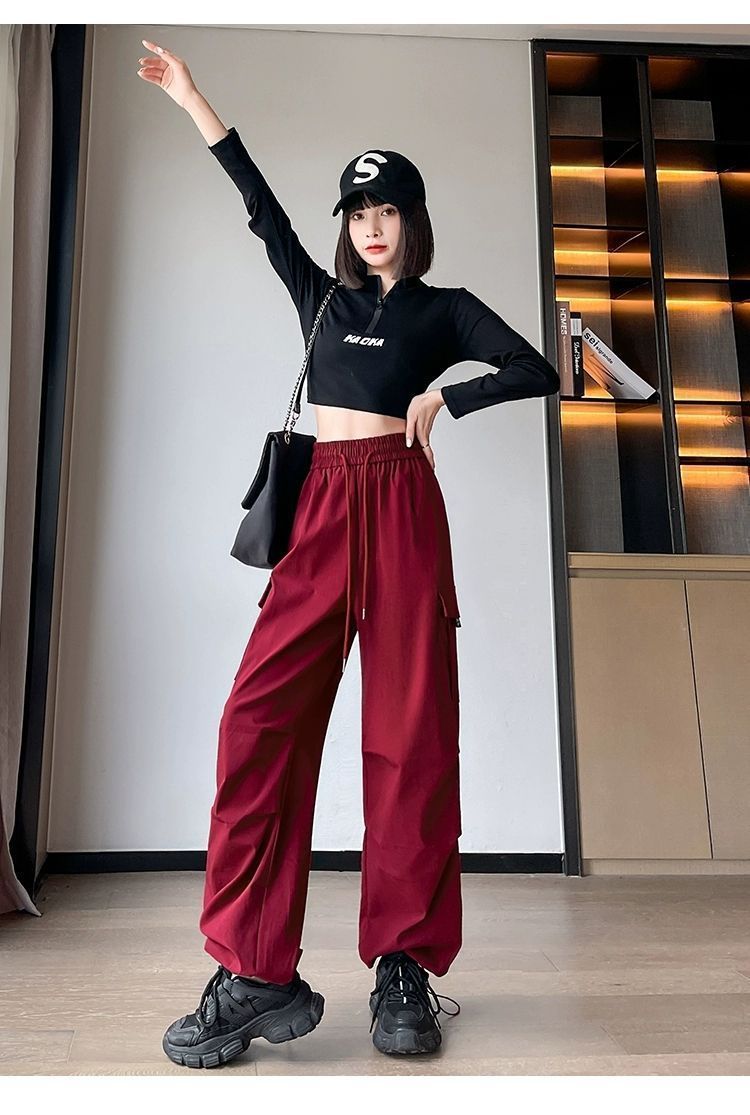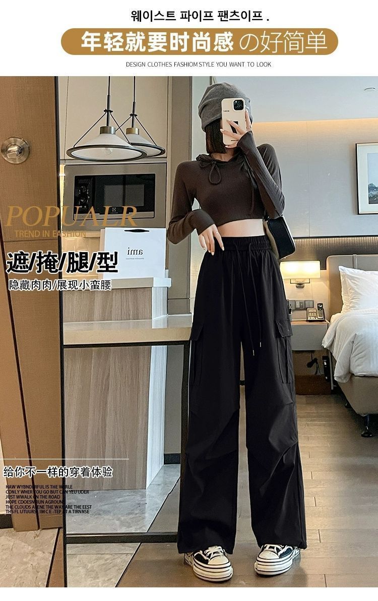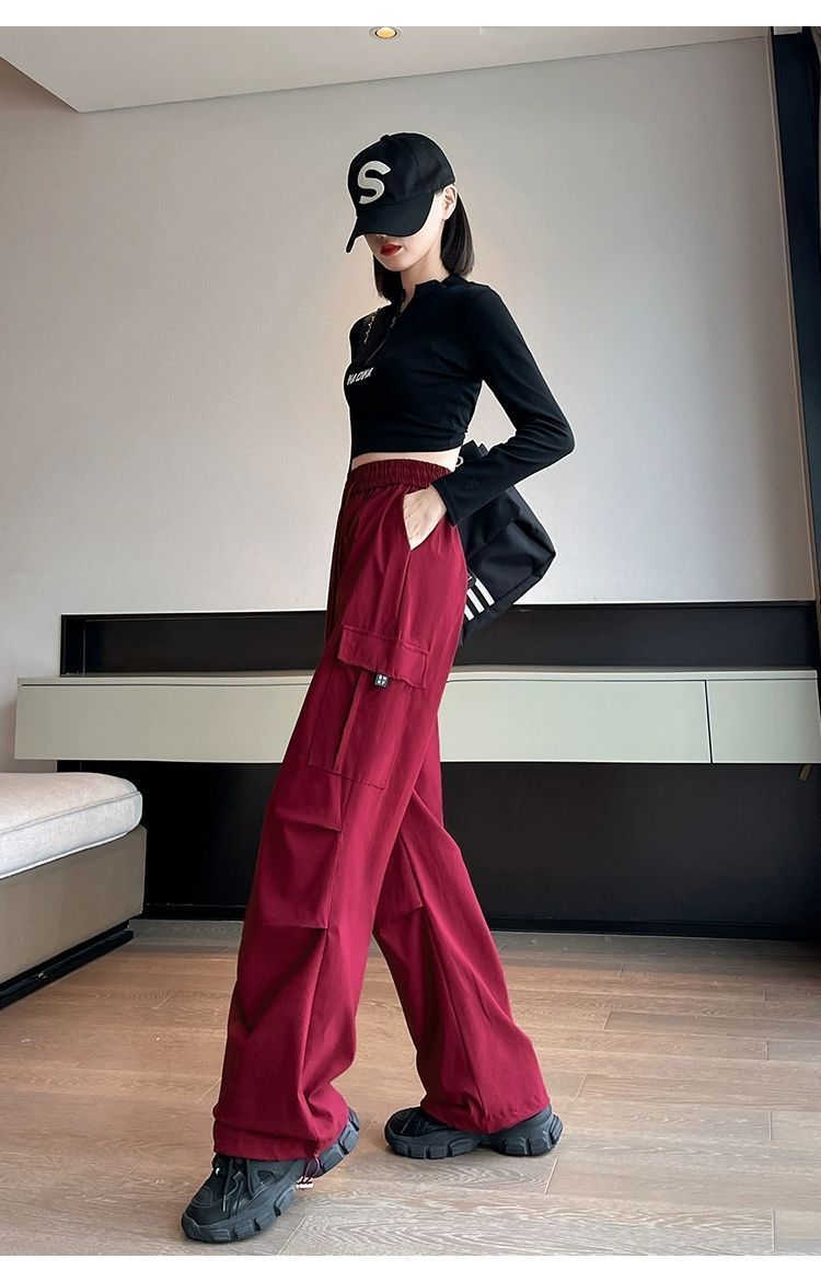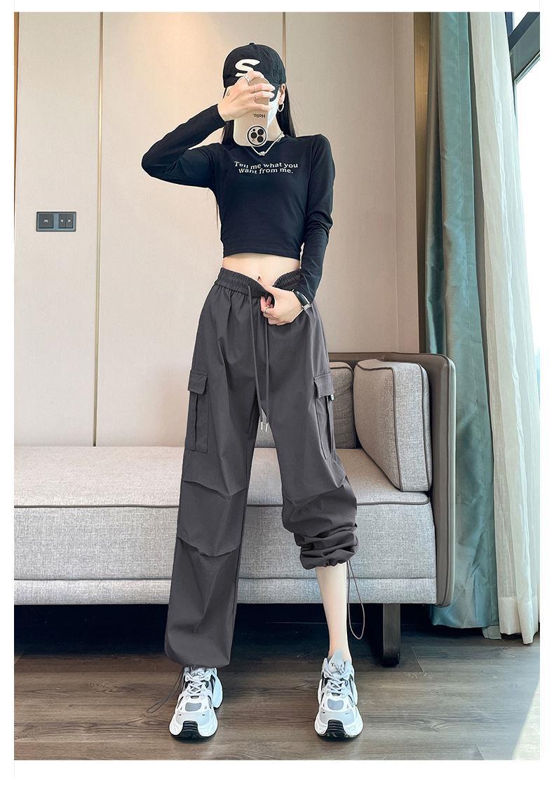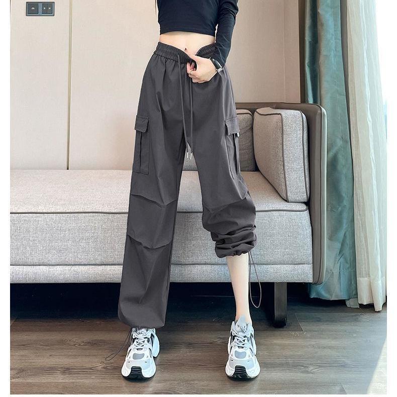 高腰直筒工装裤BF宽松休闲运动显瘦黑色阔腿薄荷曼波男女新款裤子