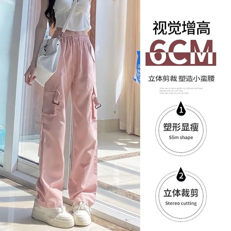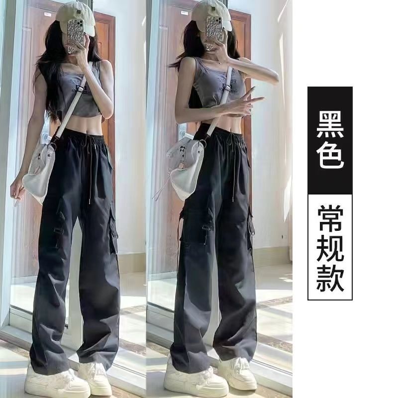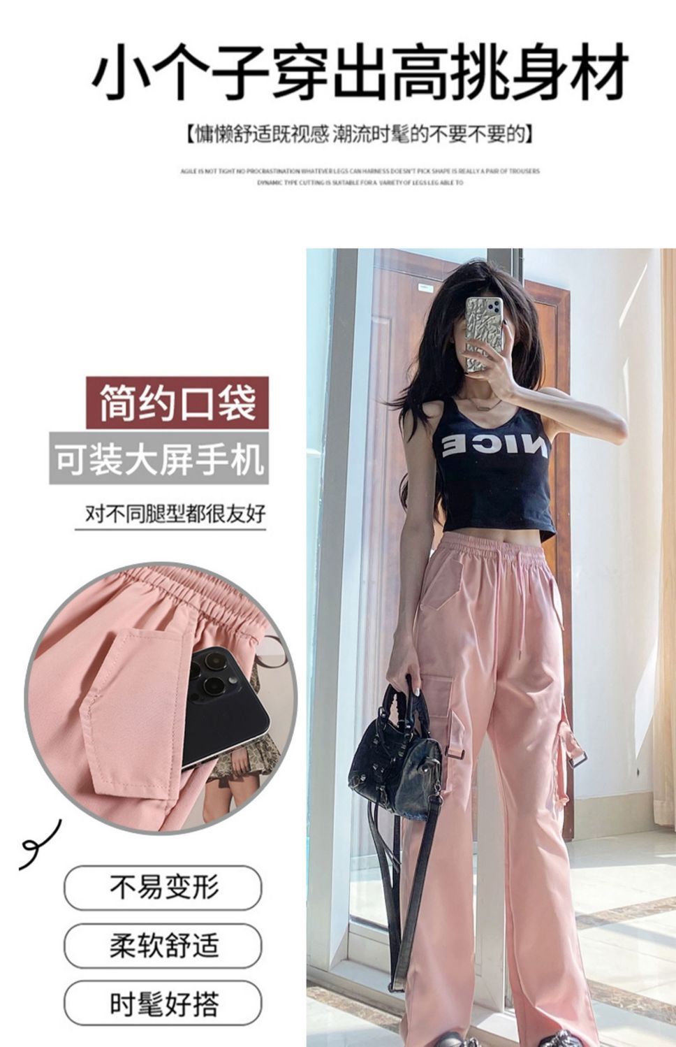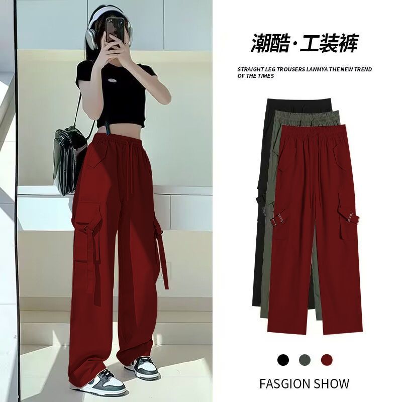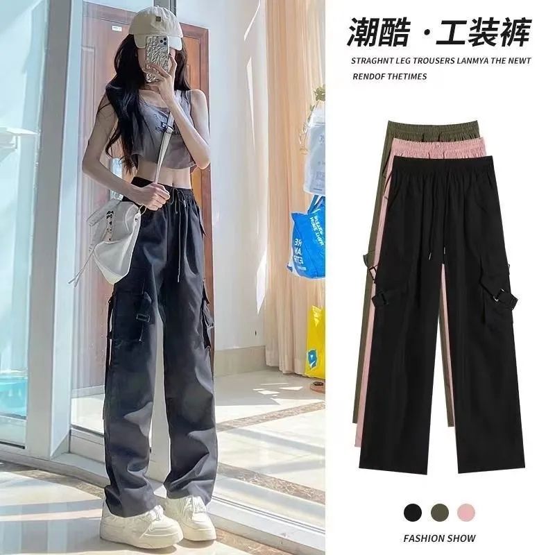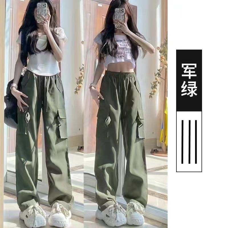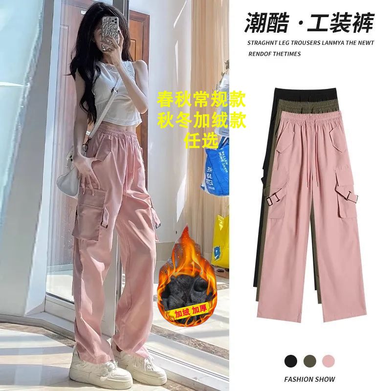 美式复古多巴胺女孩潮酷工装裤女春秋高腰阔腿裤ins潮休闲直筒裤