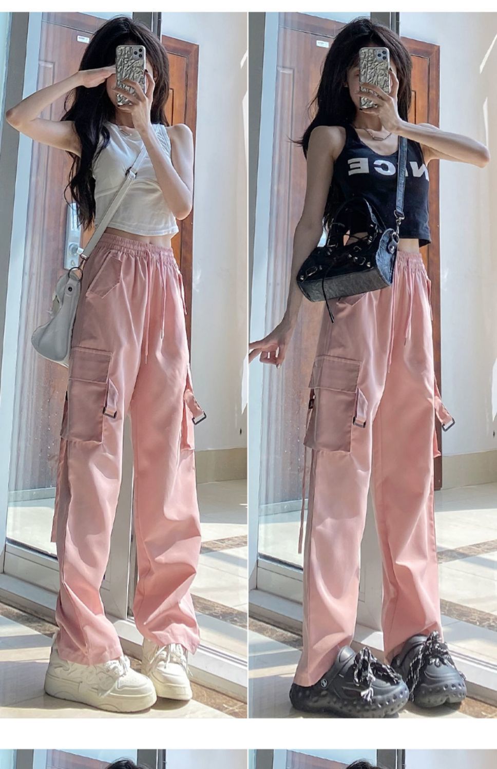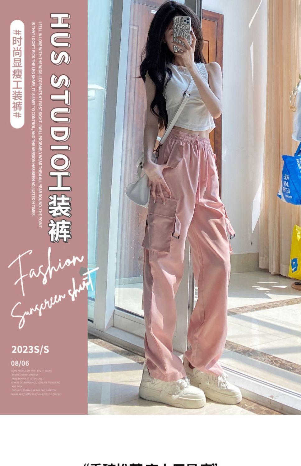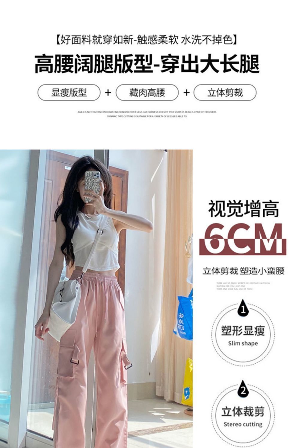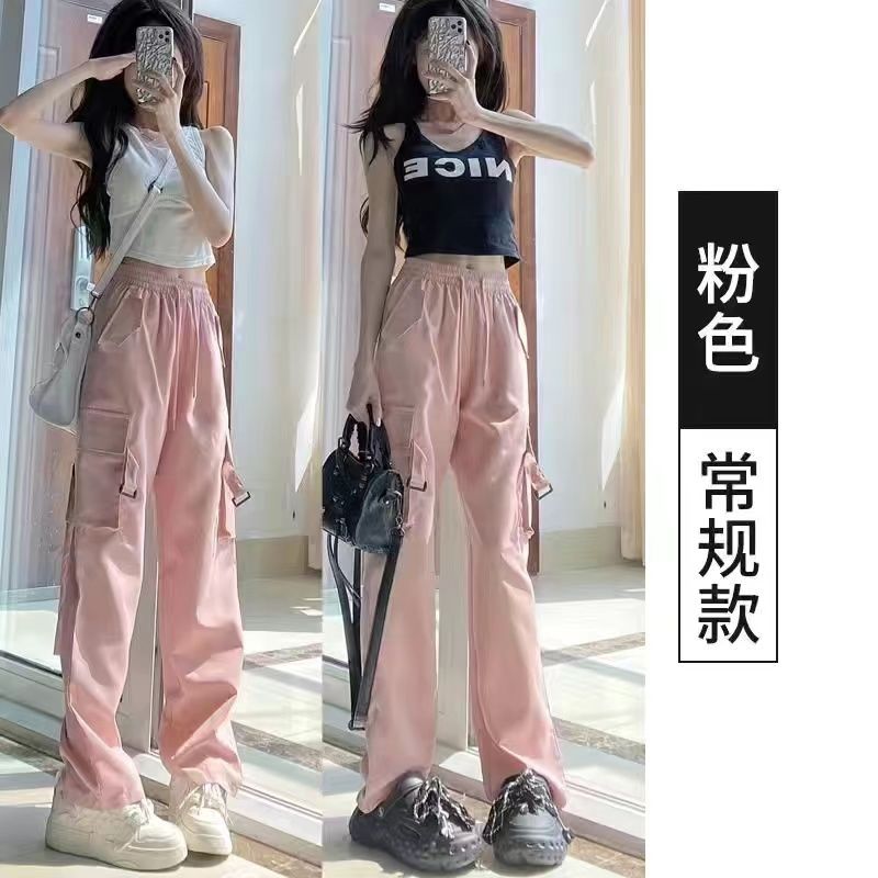 美式复古多巴胺女孩潮酷工装裤女春秋高腰阔腿裤ins潮休闲直筒裤