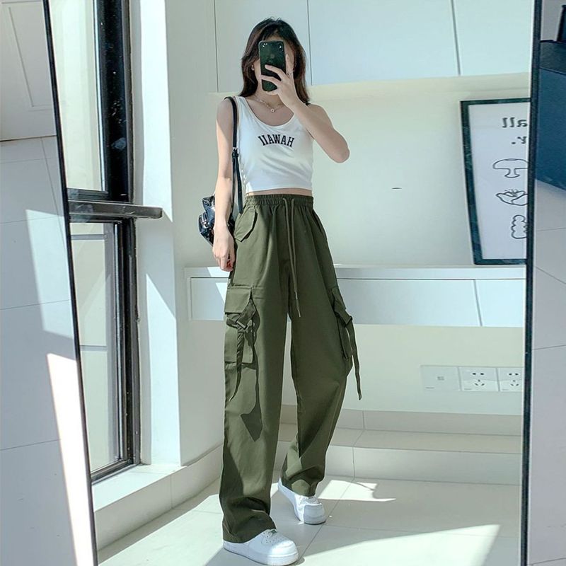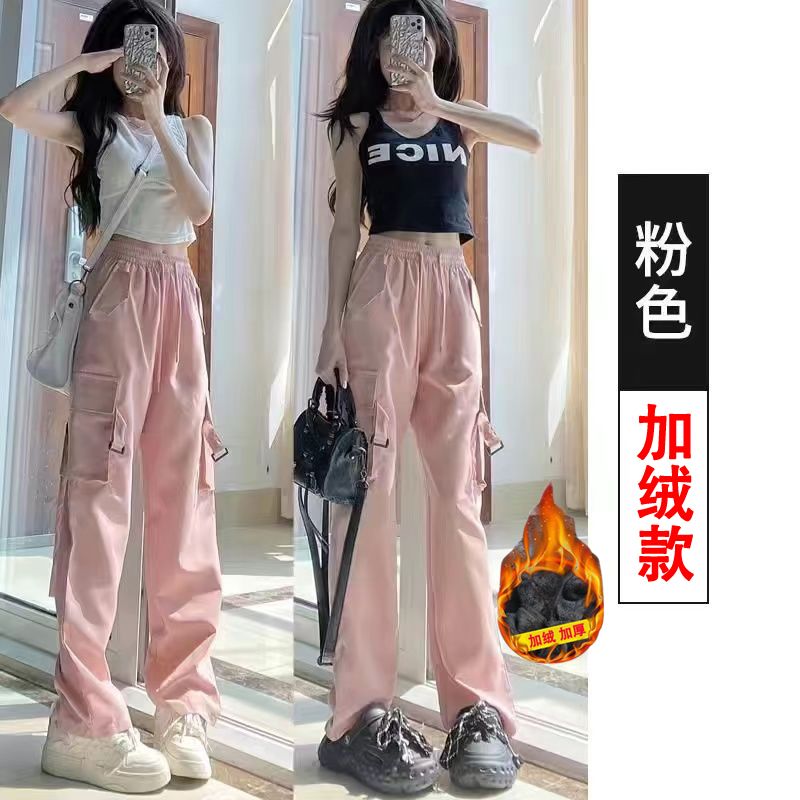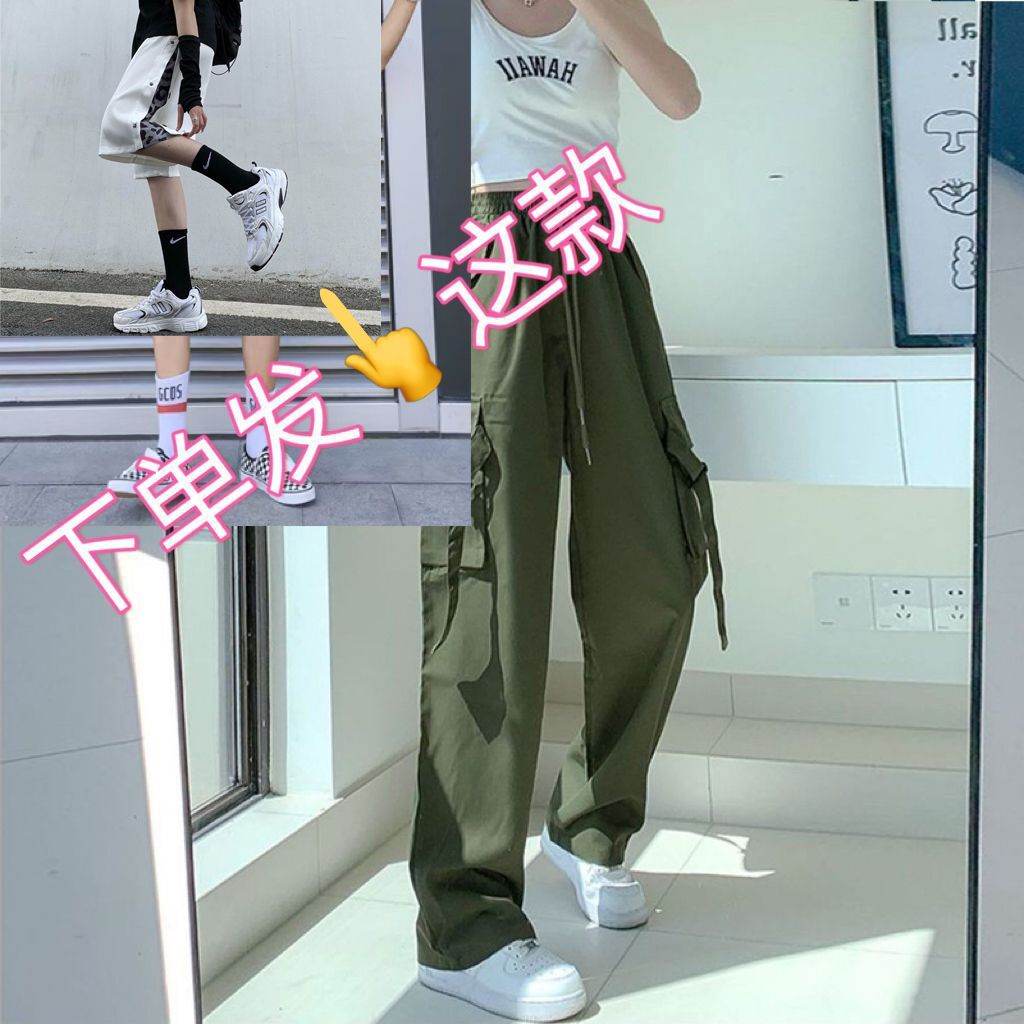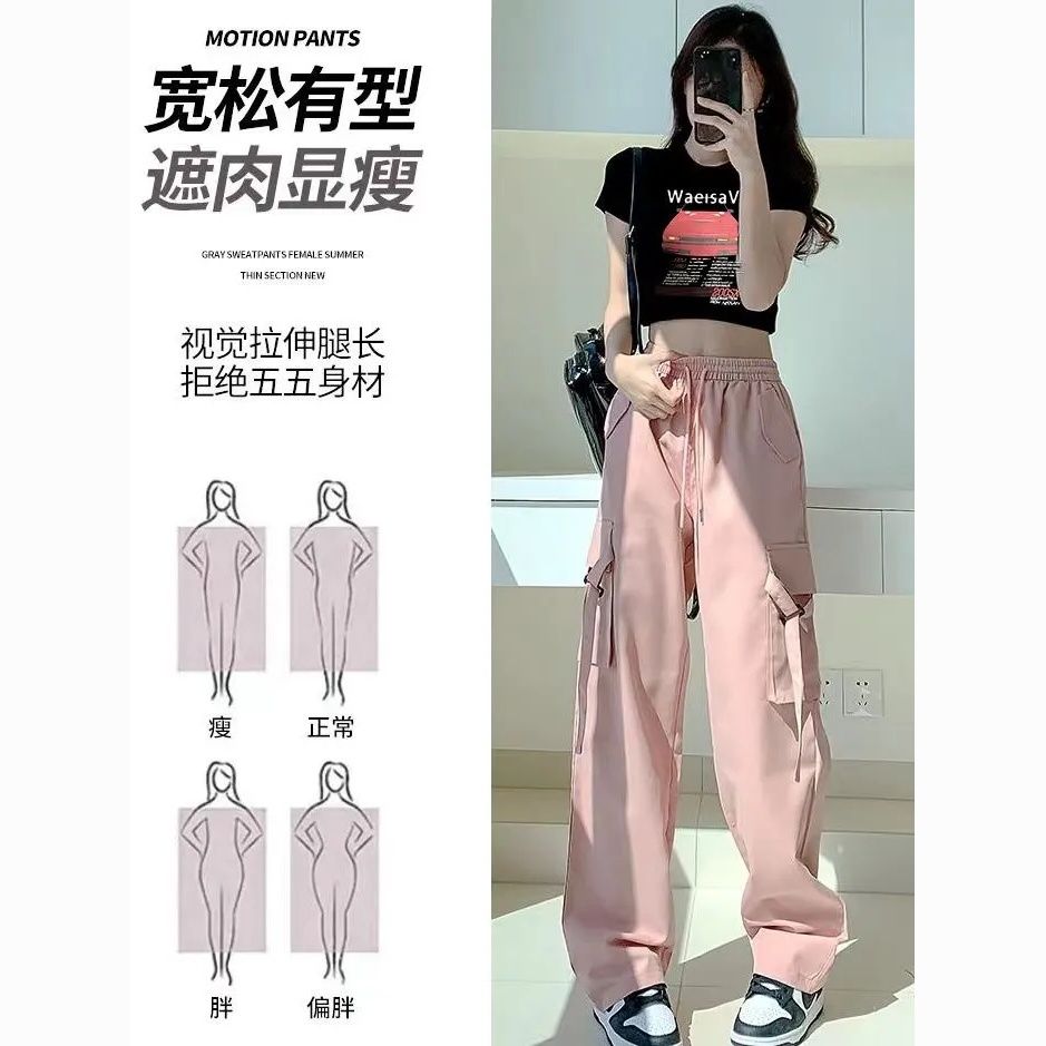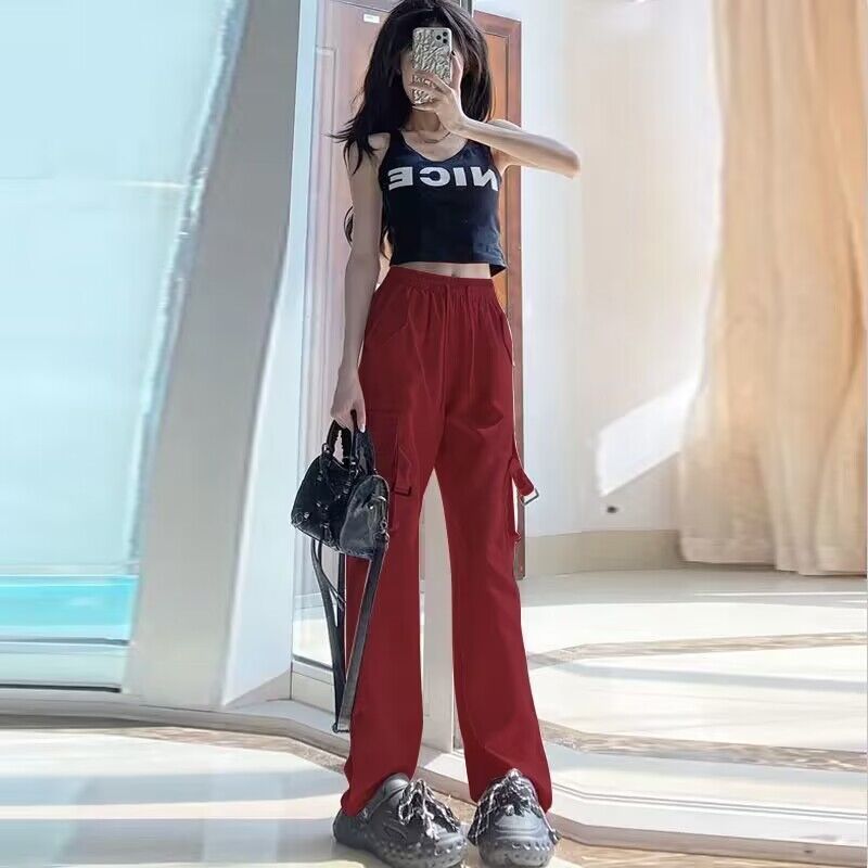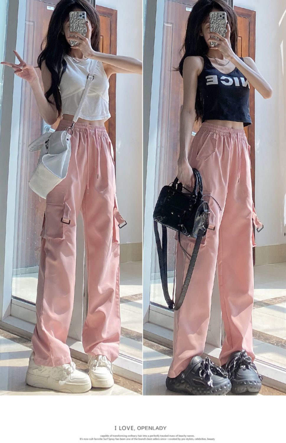 美式复古多巴胺女孩潮酷工装裤女春秋高腰阔腿裤ins潮休闲直筒裤