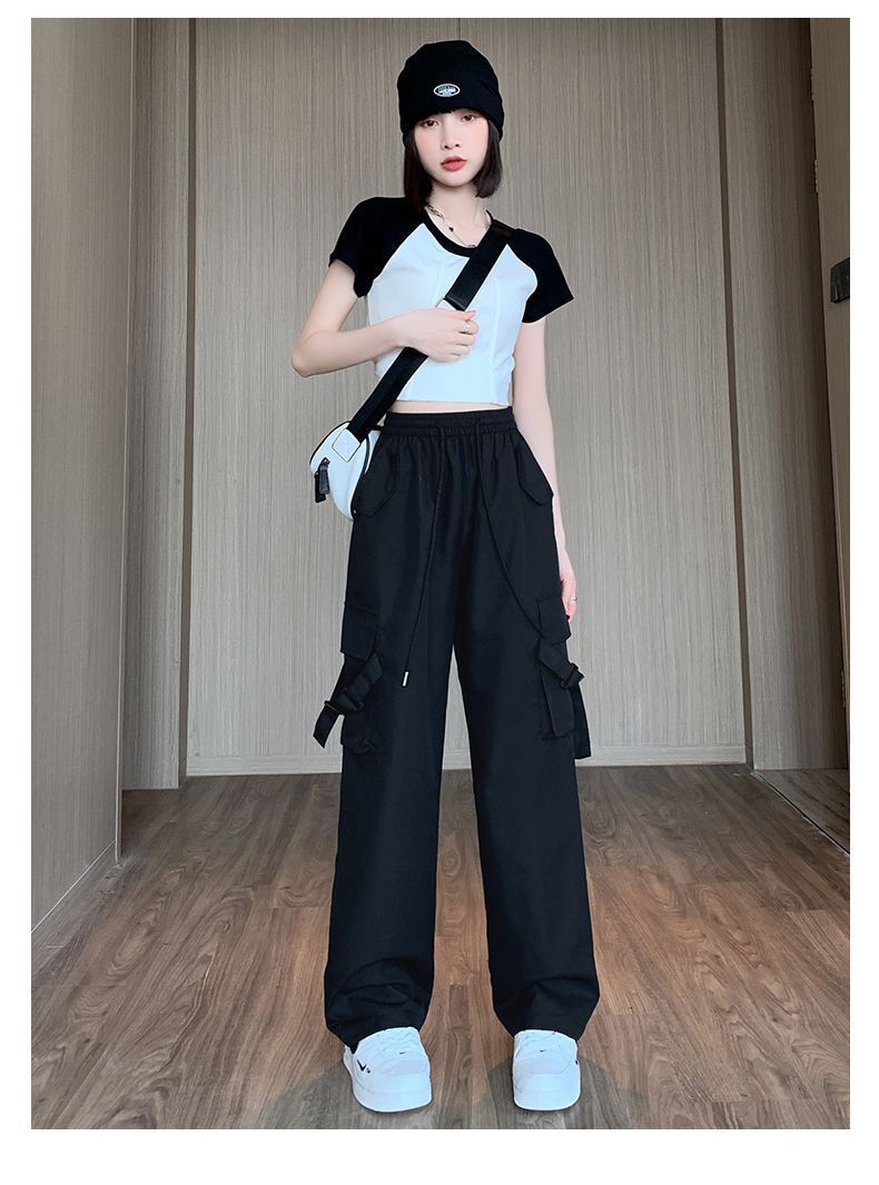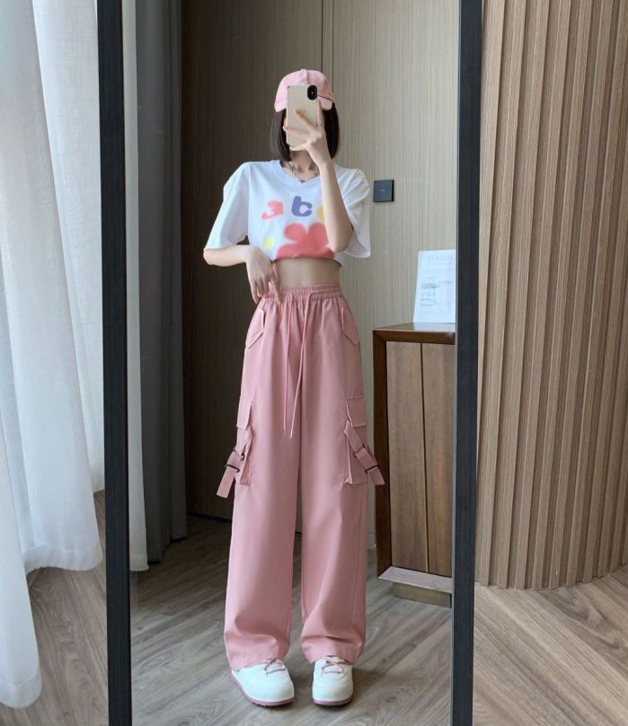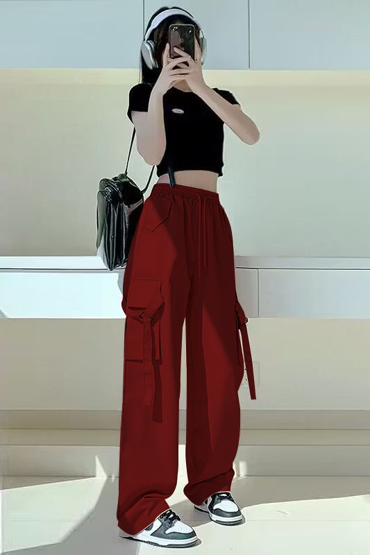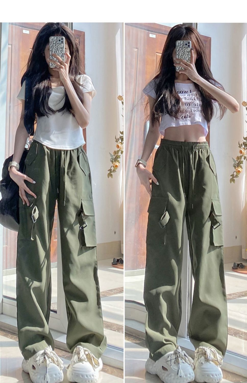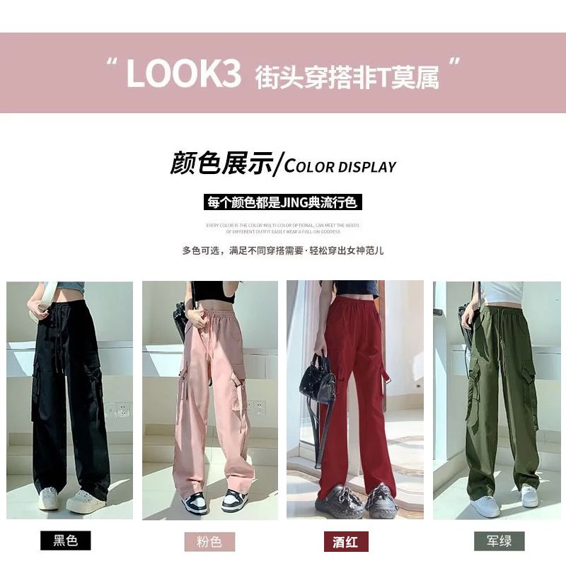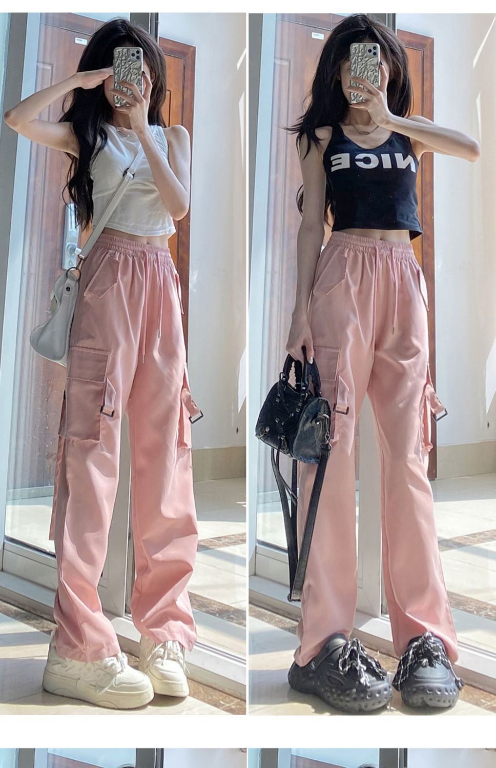 美式复古多巴胺女孩潮酷工装裤女春秋高腰阔腿裤ins潮休闲直筒裤