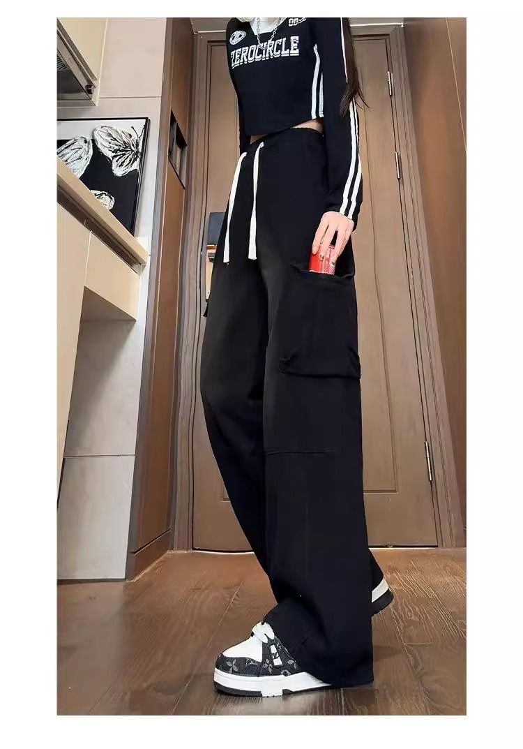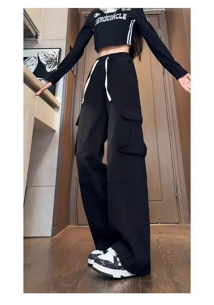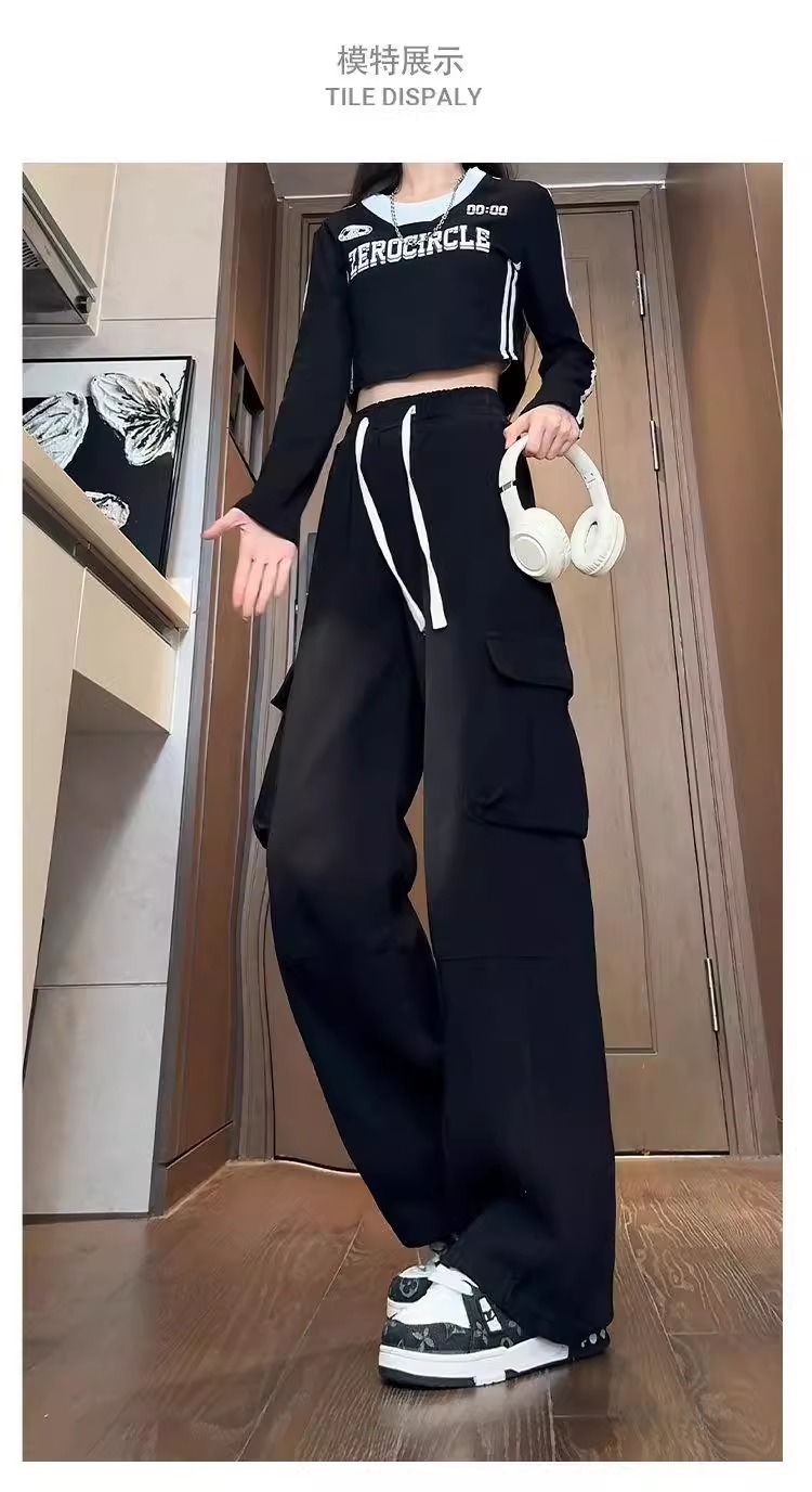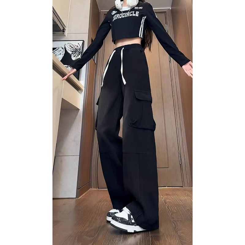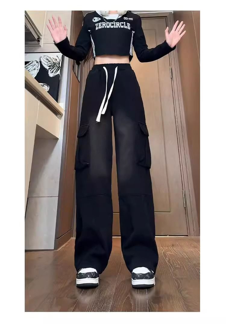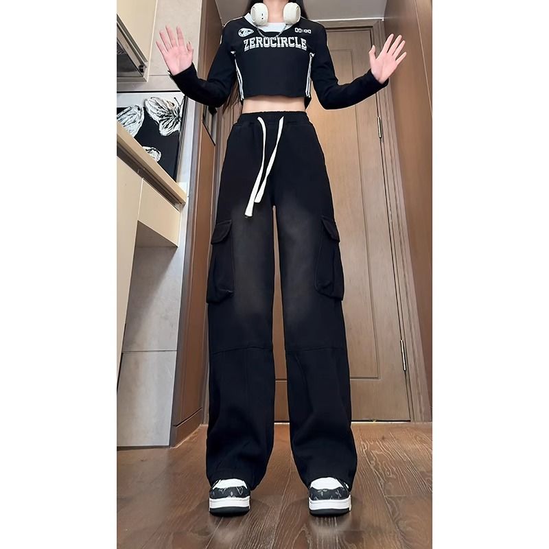 美式复古工装牛仔裤女2024新款春秋胖mm大码显瘦宽松高腰阔腿长裤