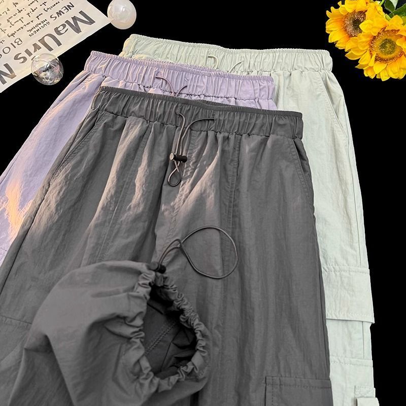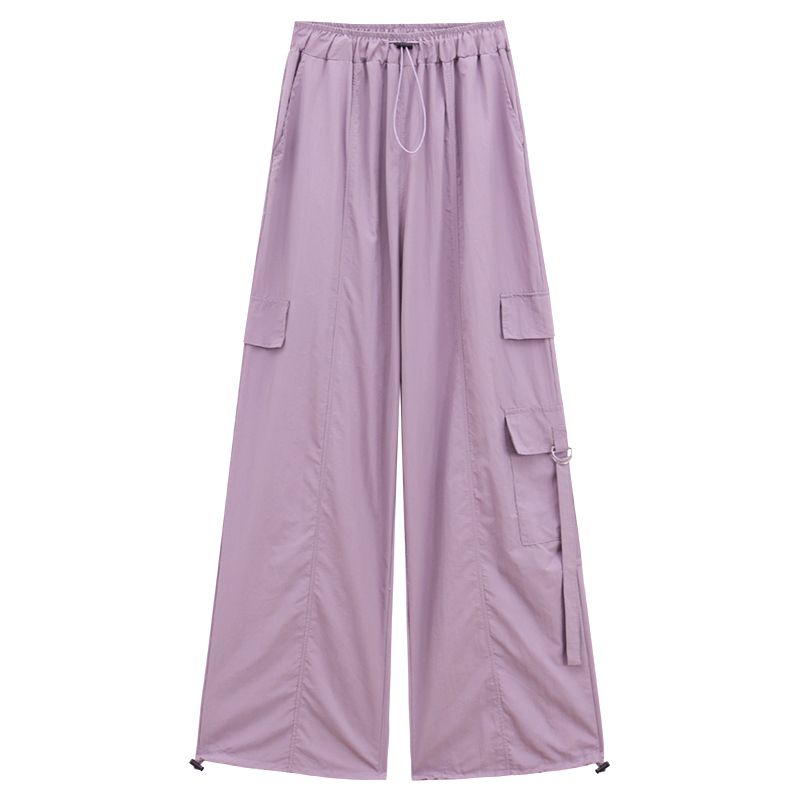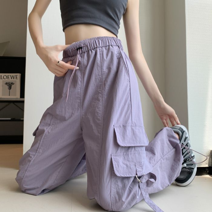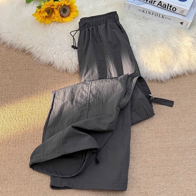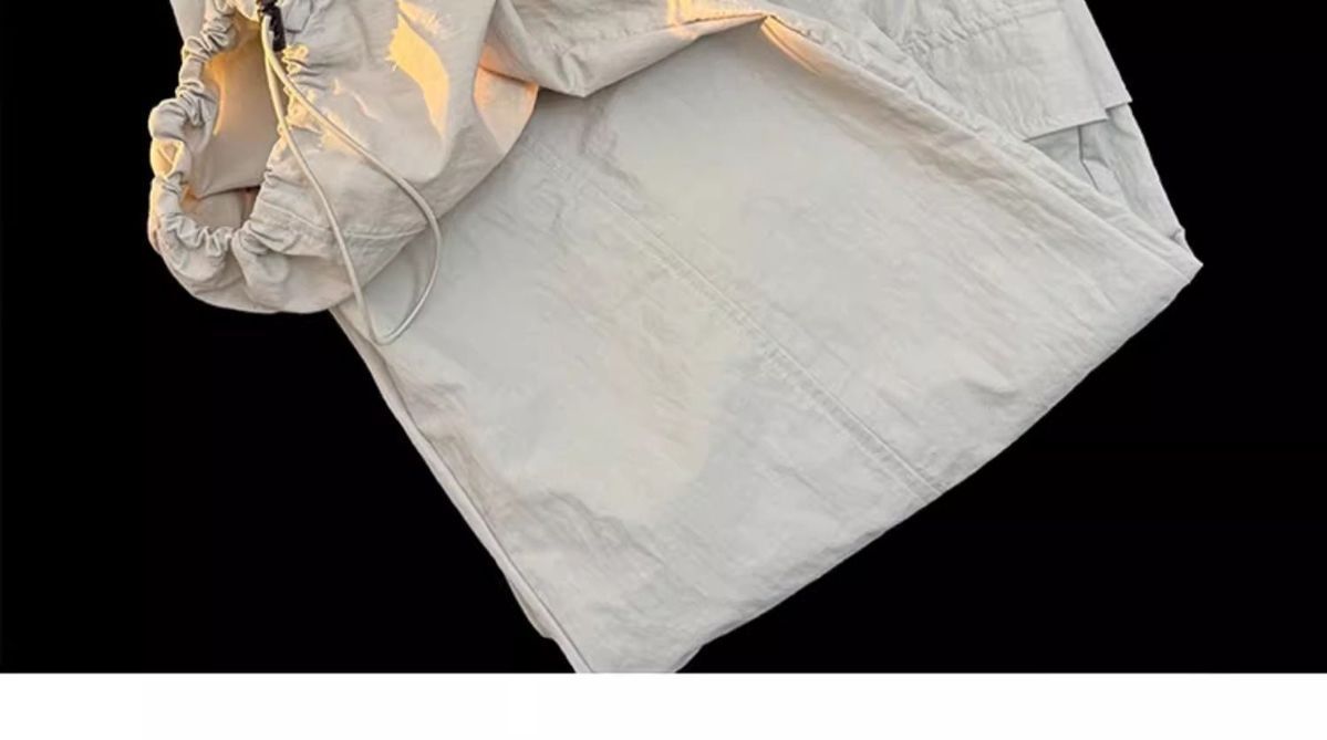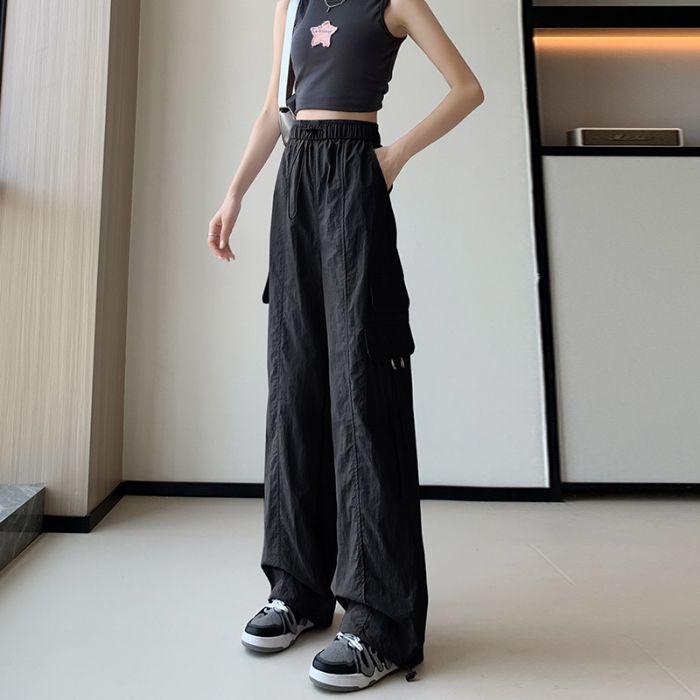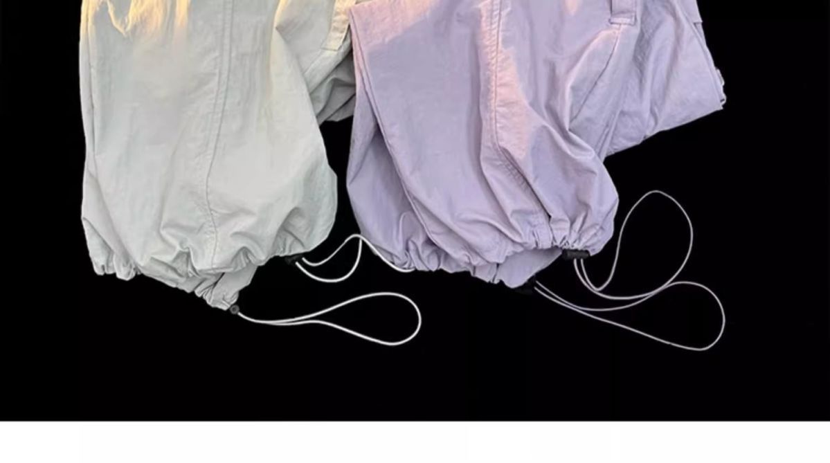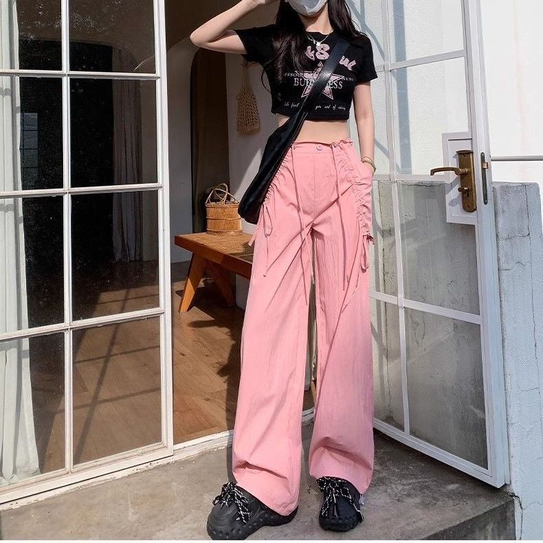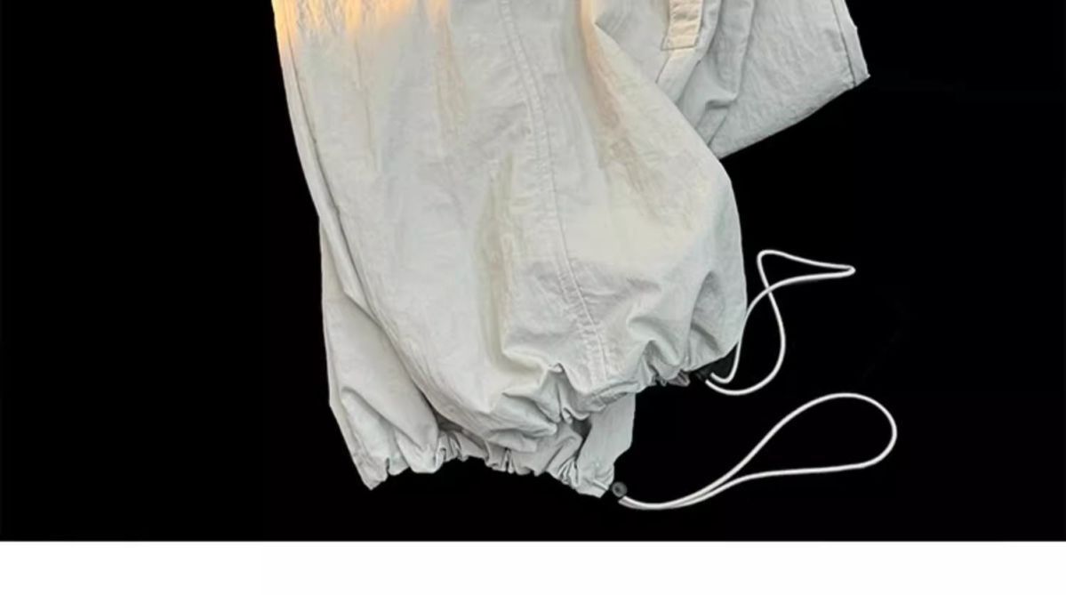 废土风高腰抽绳束脚美式通勤工装裤休闲阔腿宽松小个子运动裤子