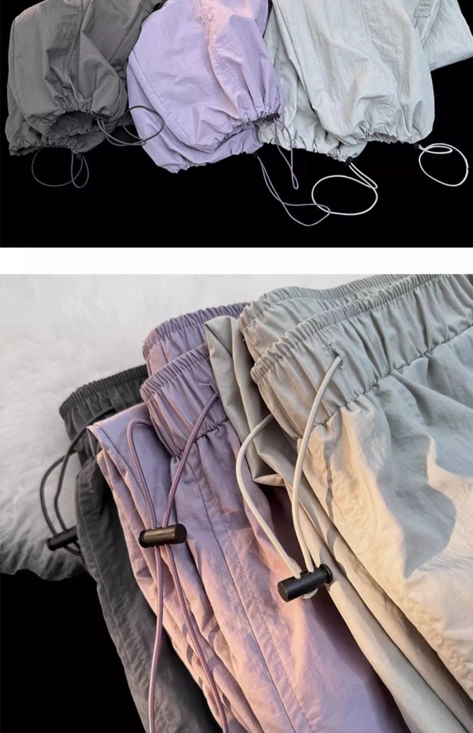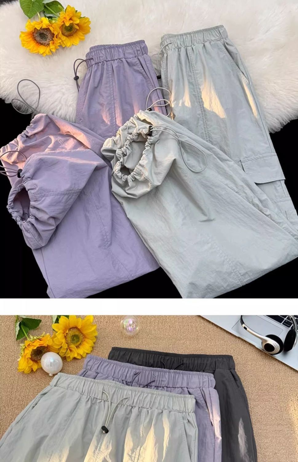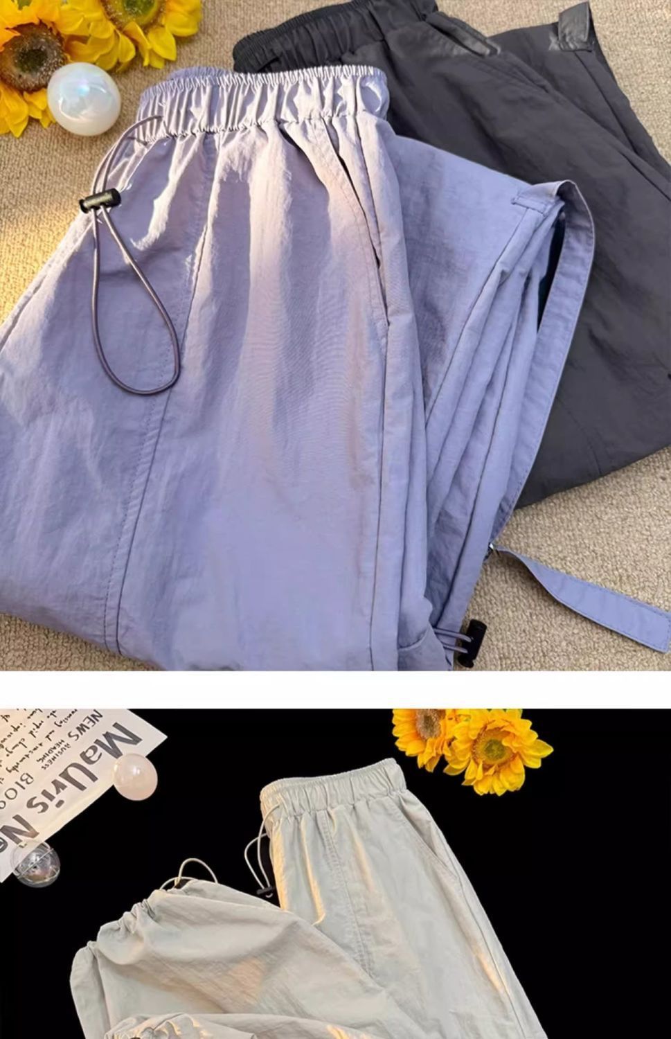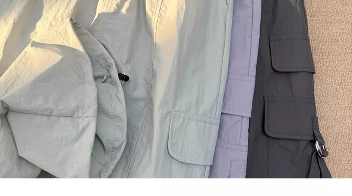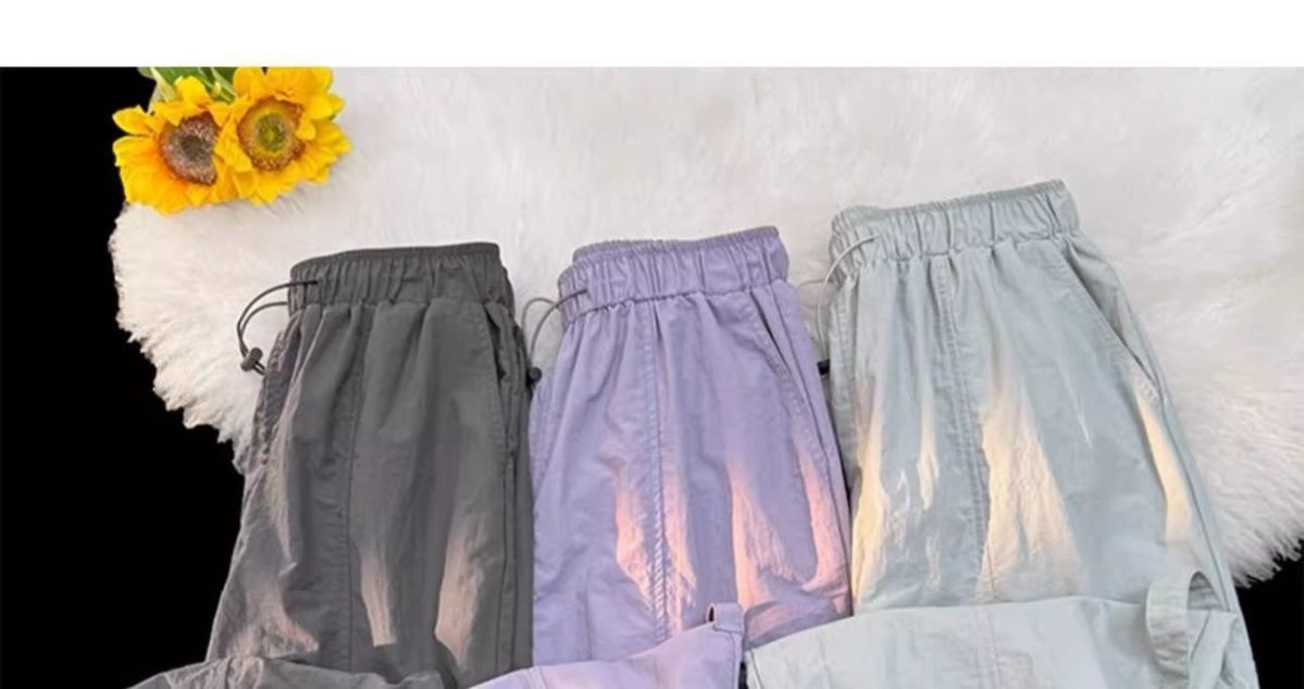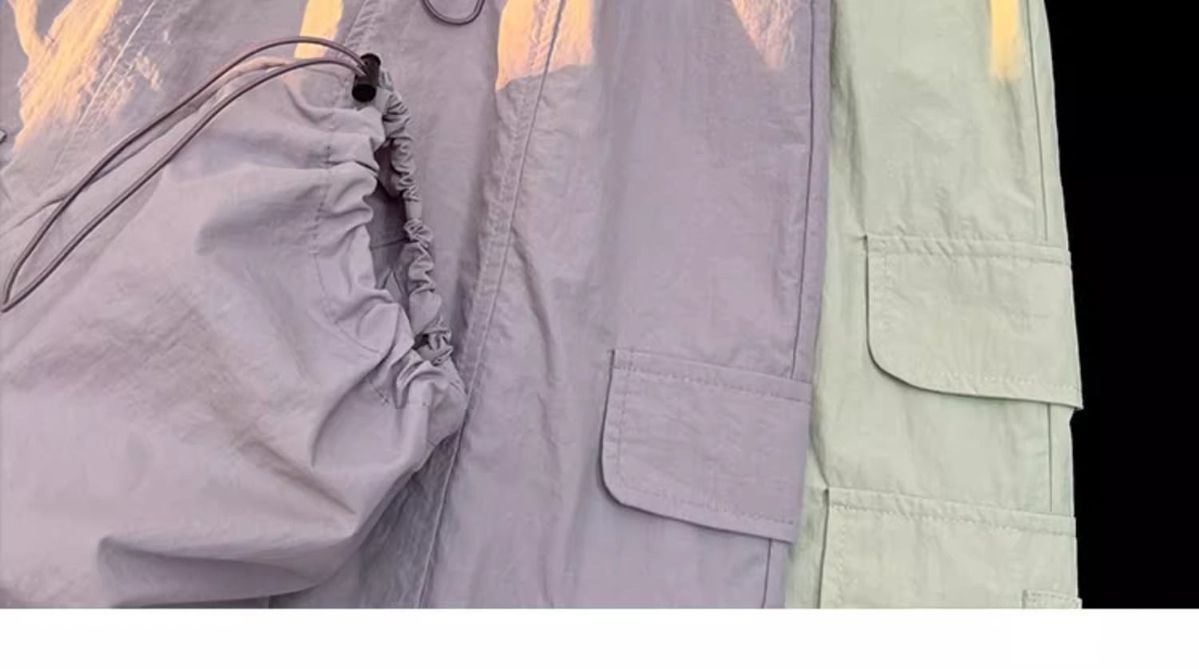 废土风高腰抽绳束脚美式通勤工装裤休闲阔腿宽松小个子运动裤子