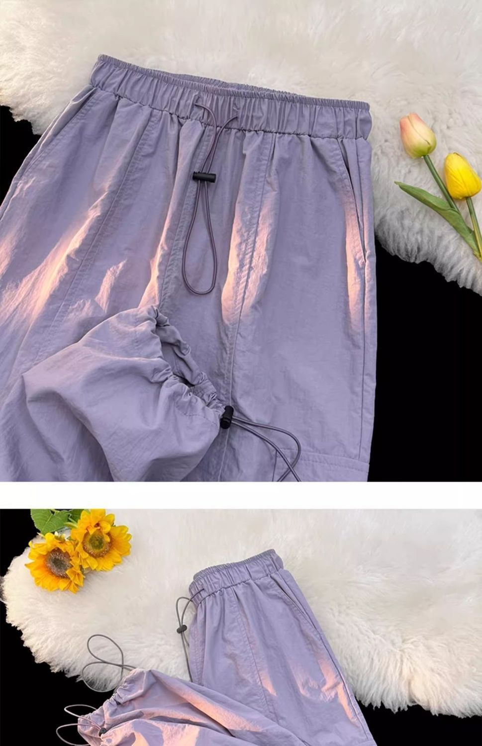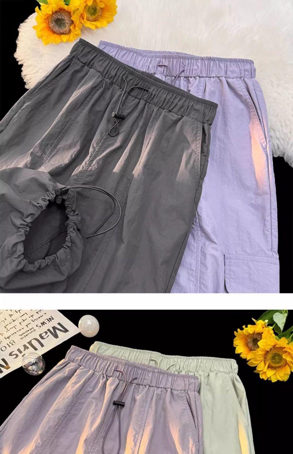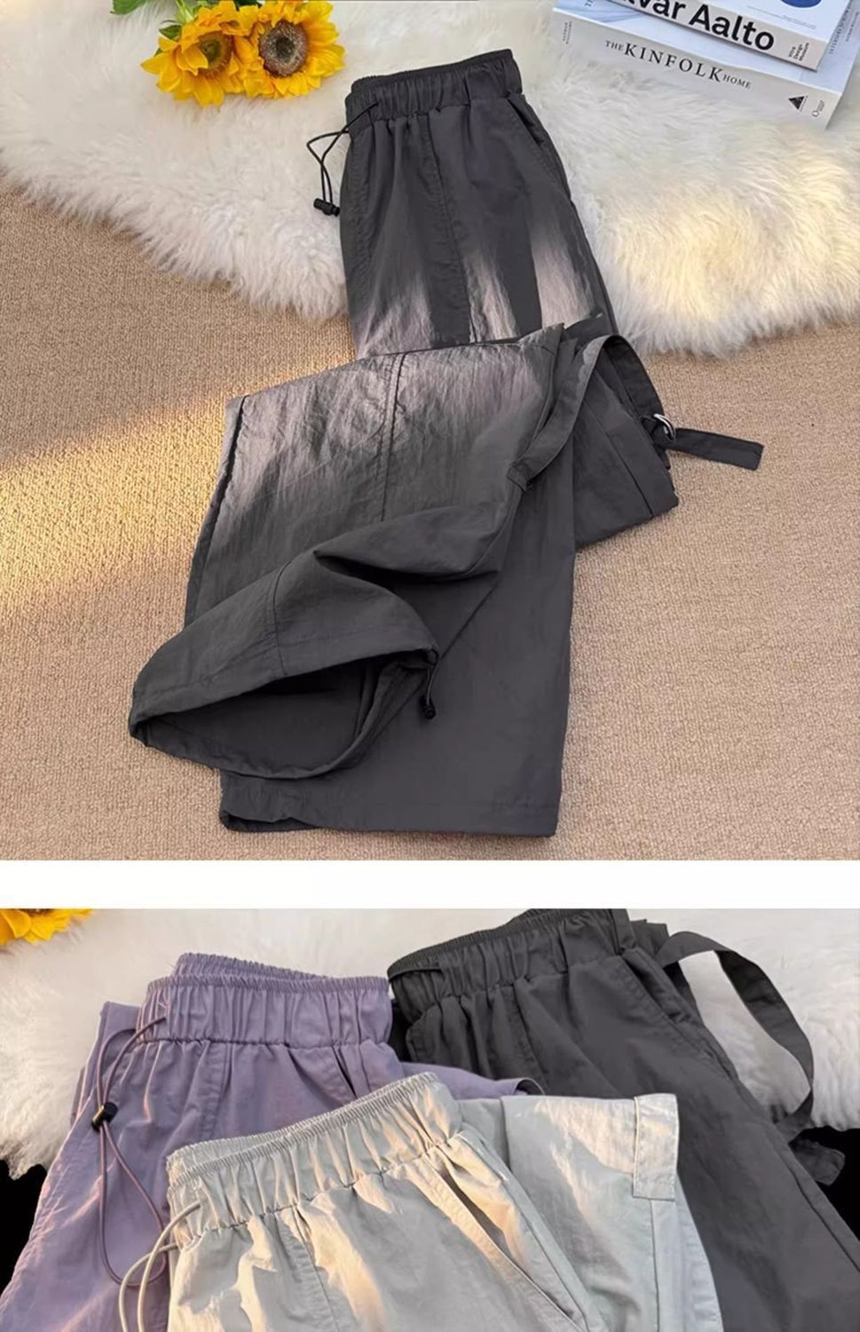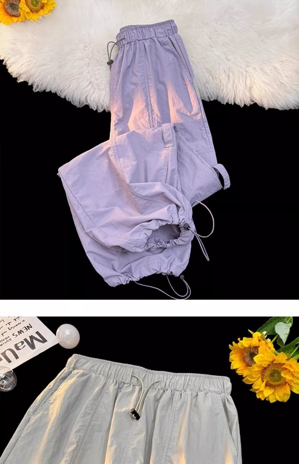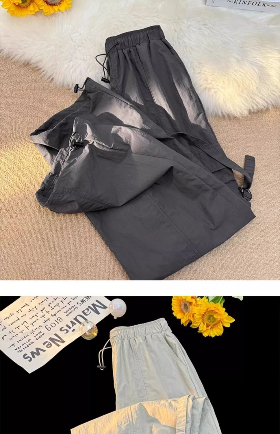 废土风高腰抽绳束脚美式通勤工装裤休闲阔腿宽松小个子运动裤子