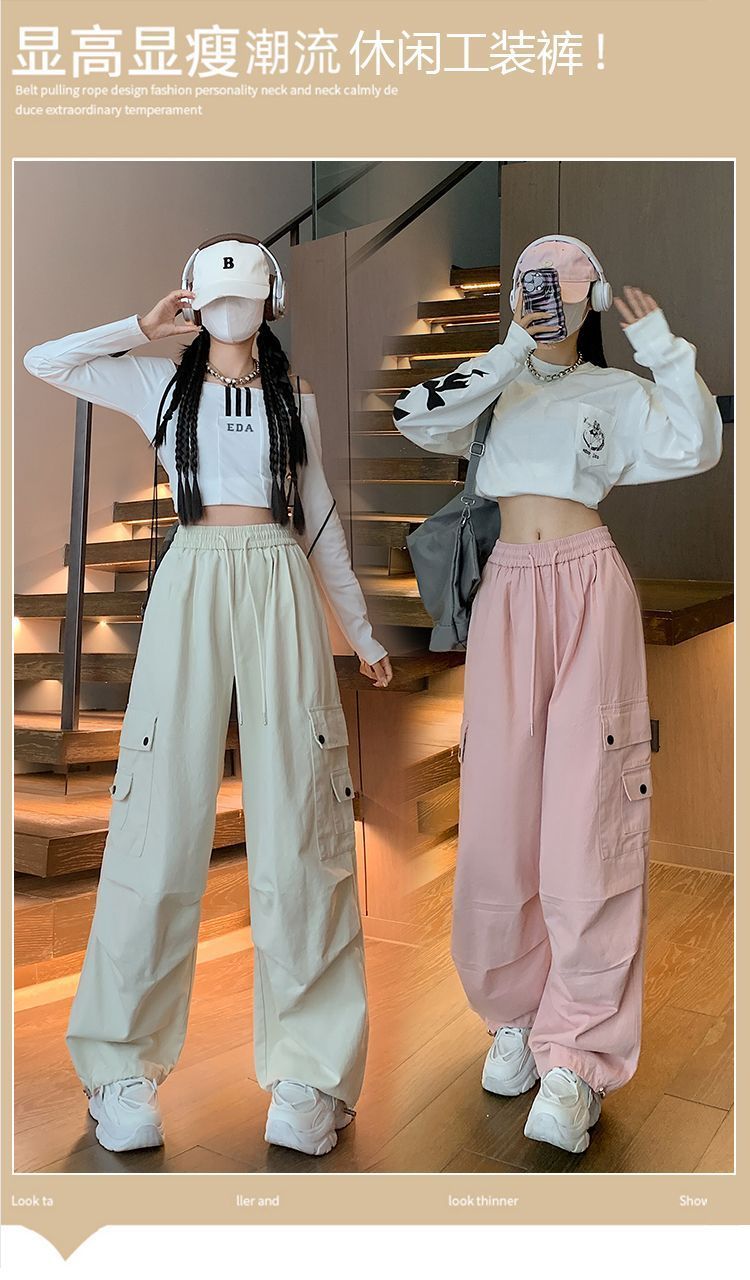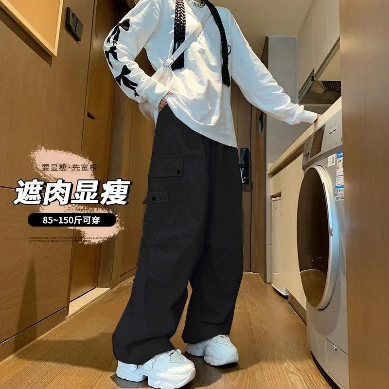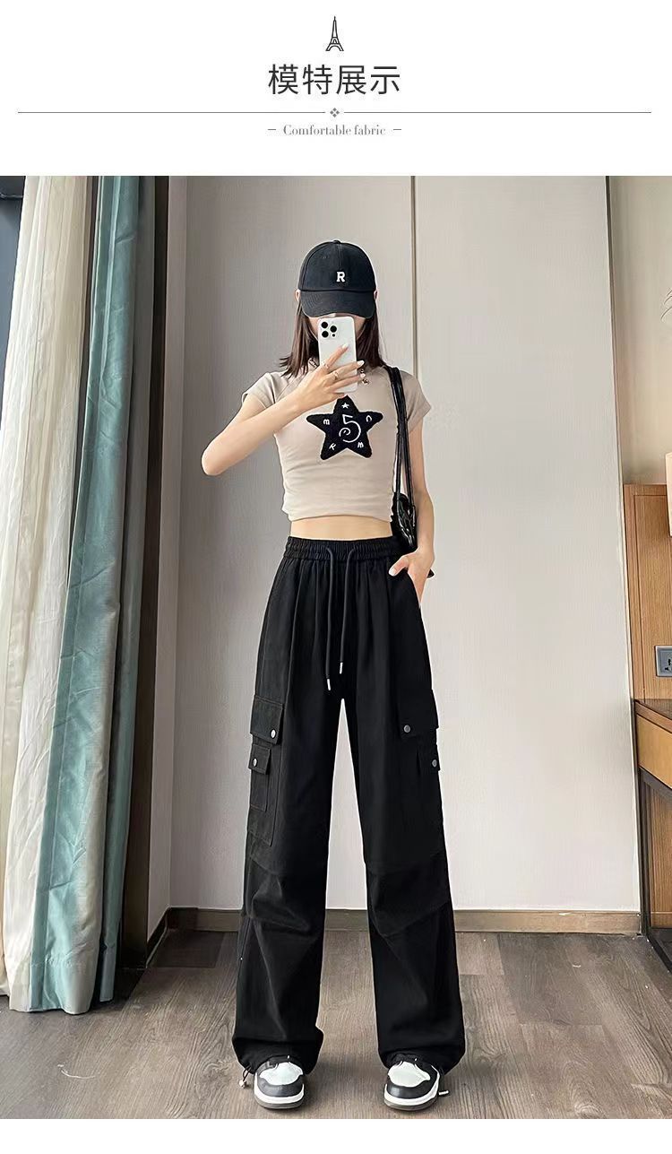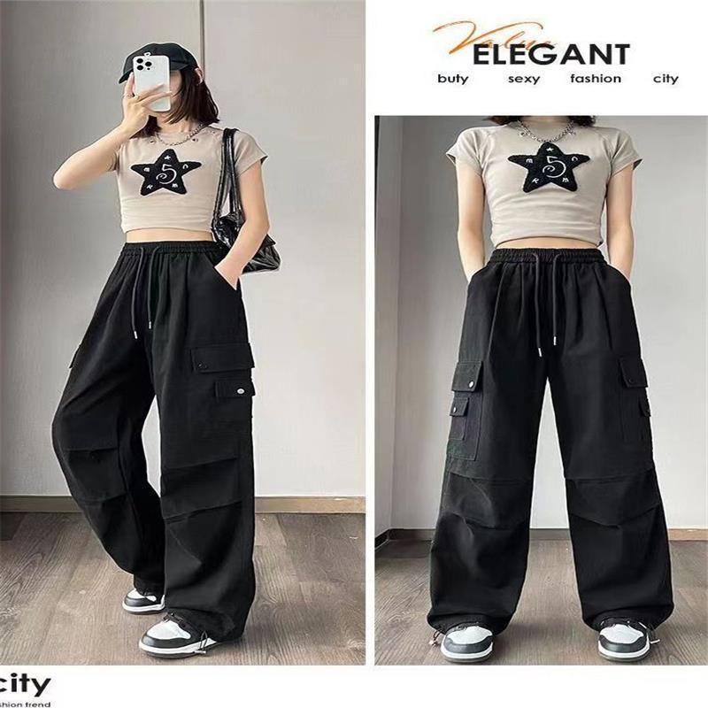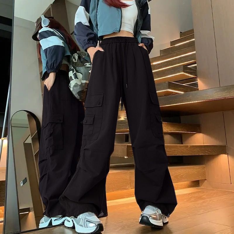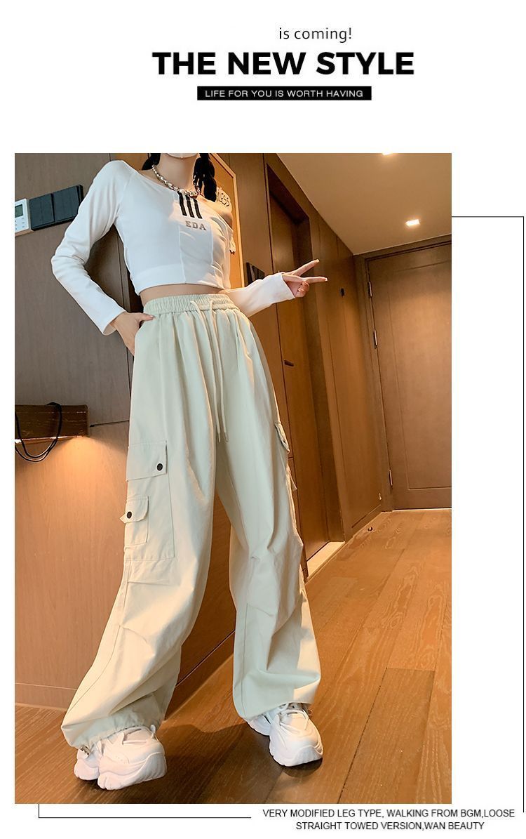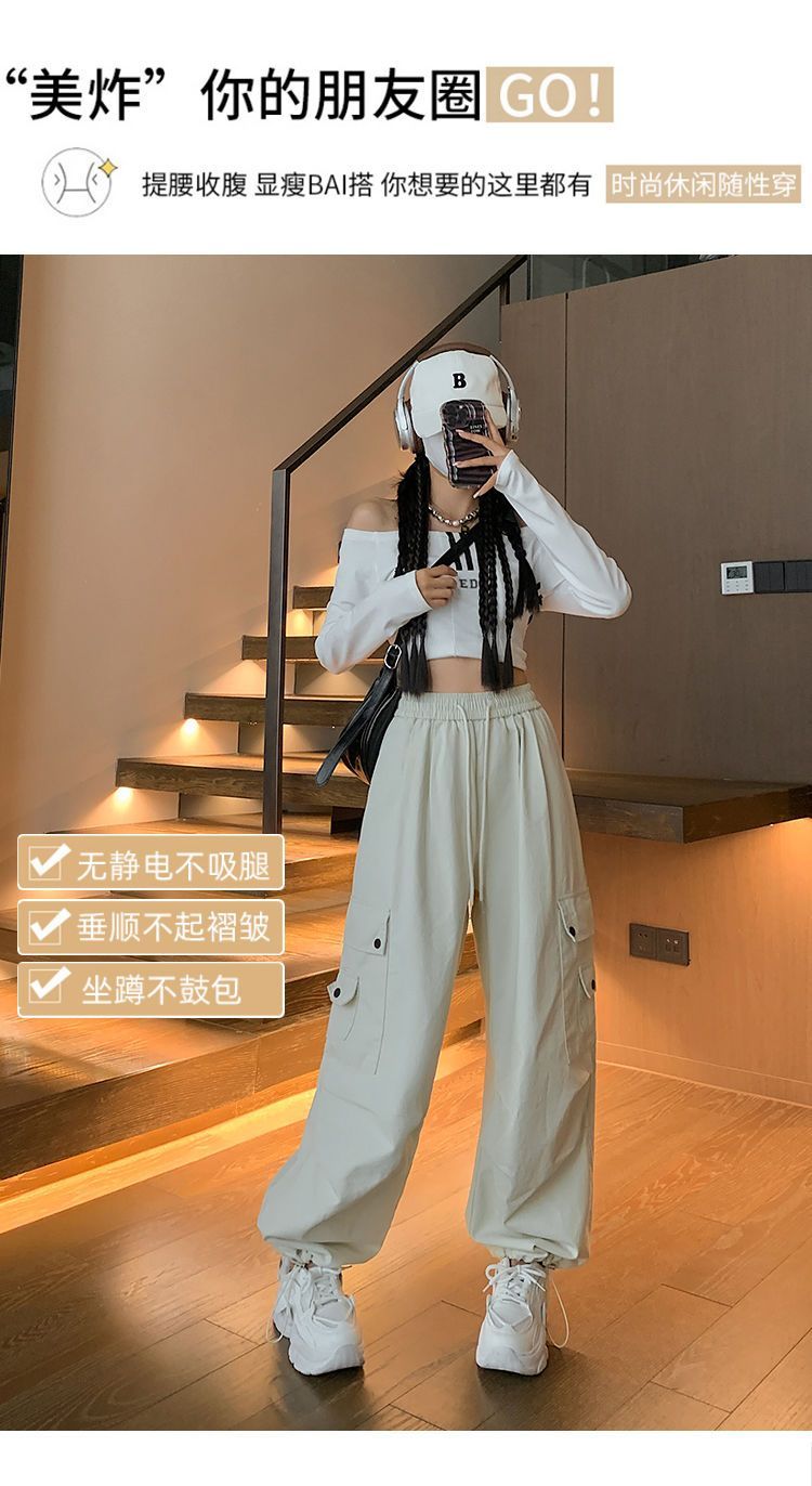 美式帅气街舞工装裤女夏季薄款潮流宽松显瘦多口袋休闲运动阔腿裤