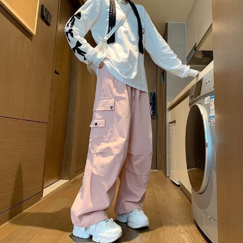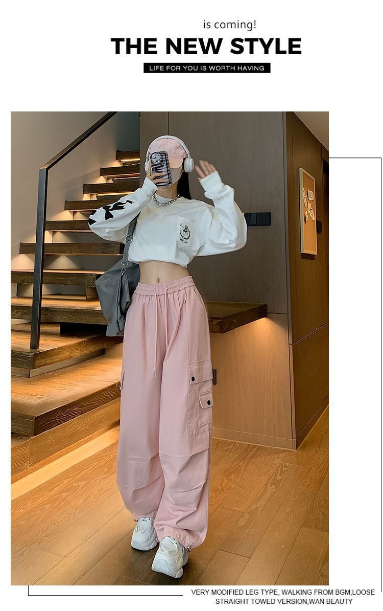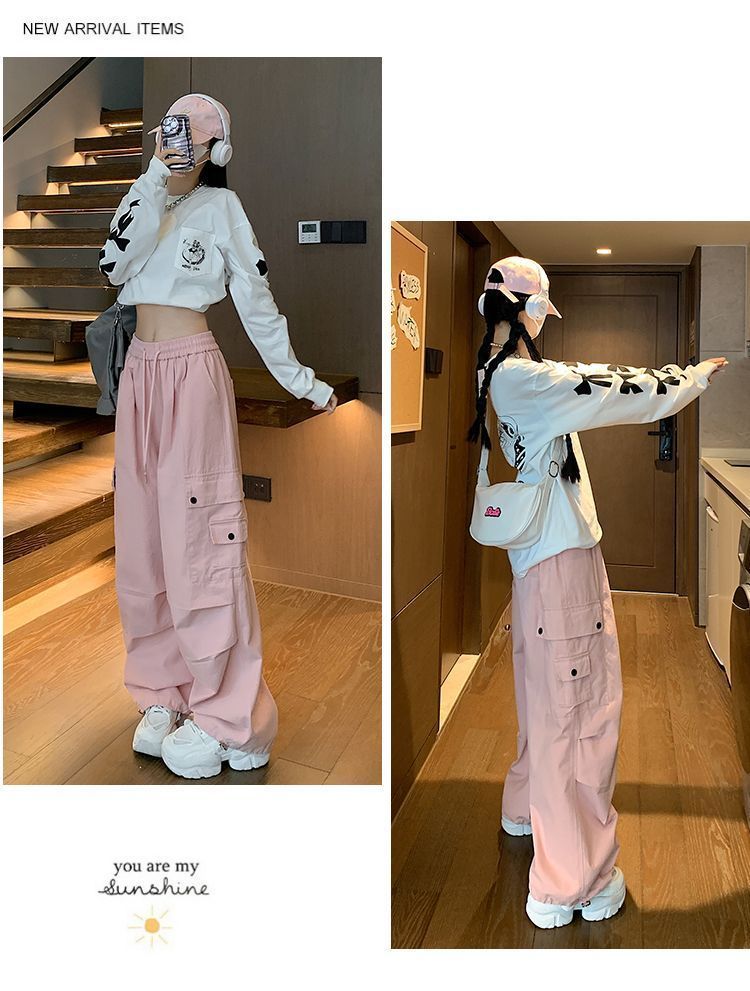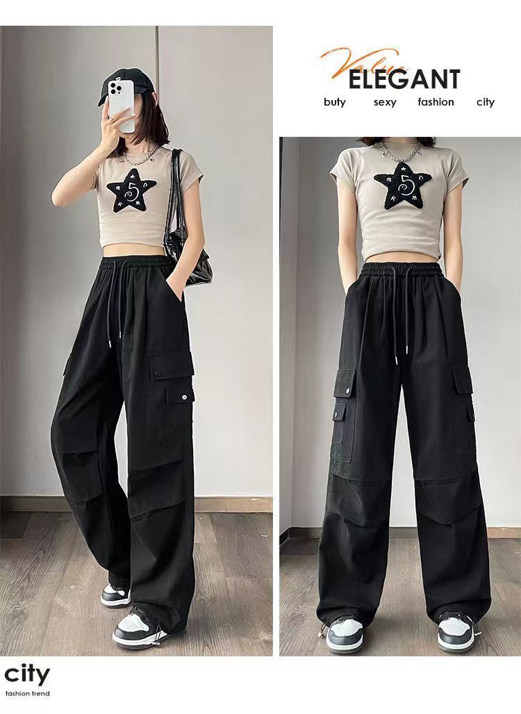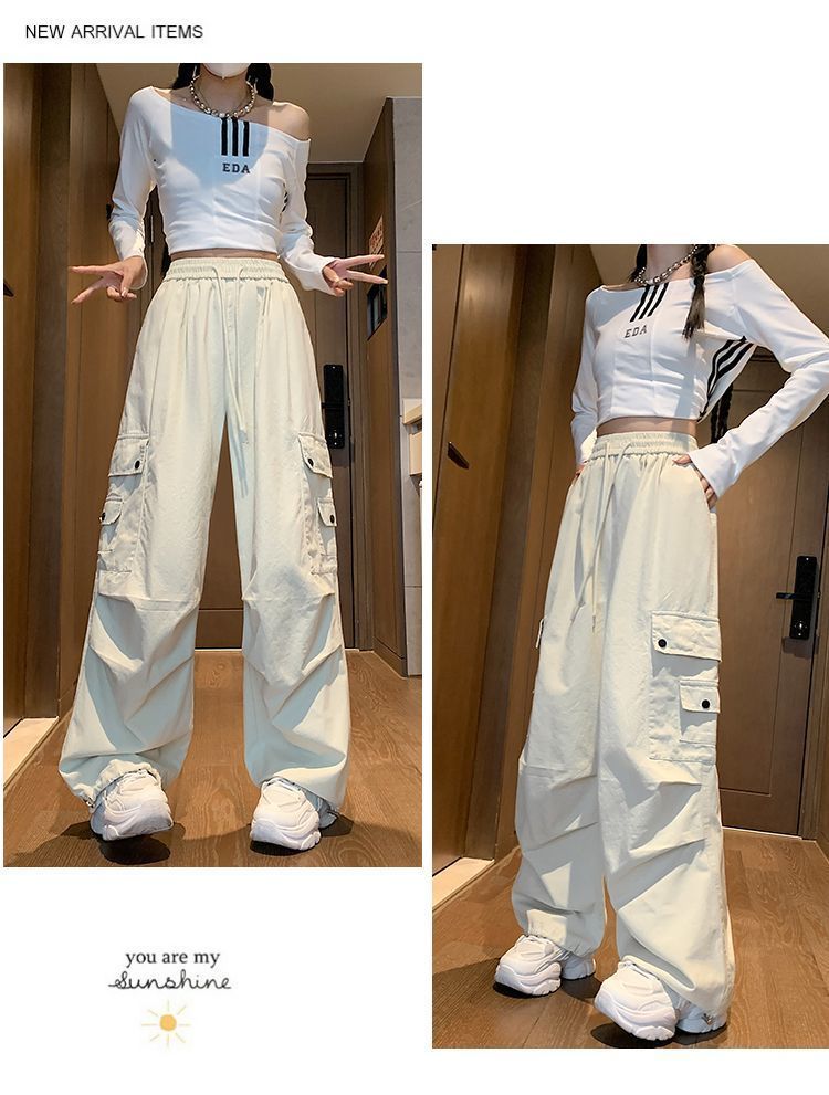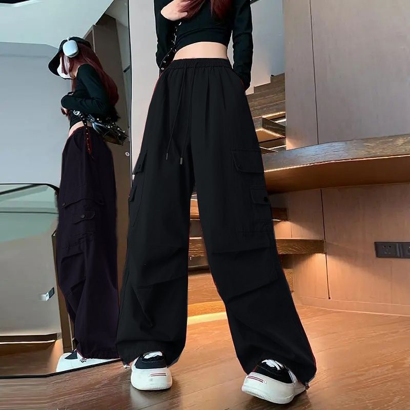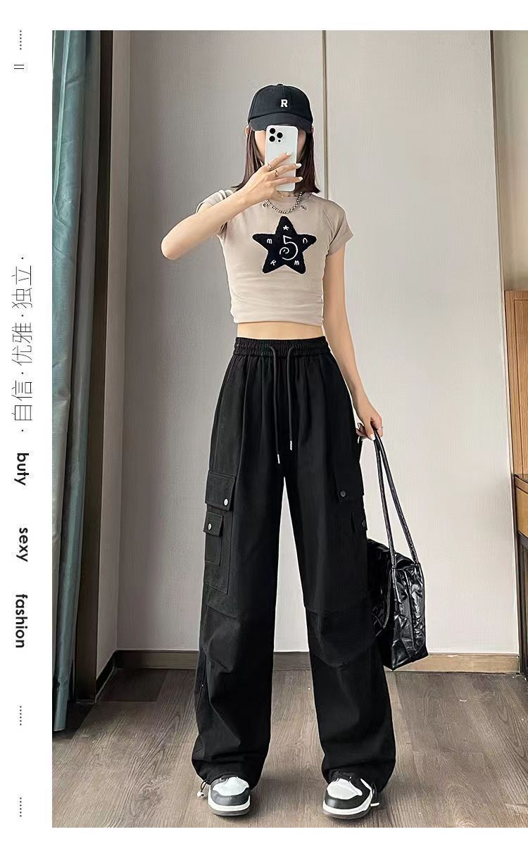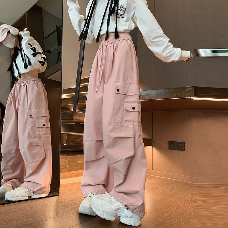 美式帅气街舞工装裤女夏季薄款潮流宽松显瘦多口袋休闲运动阔腿裤