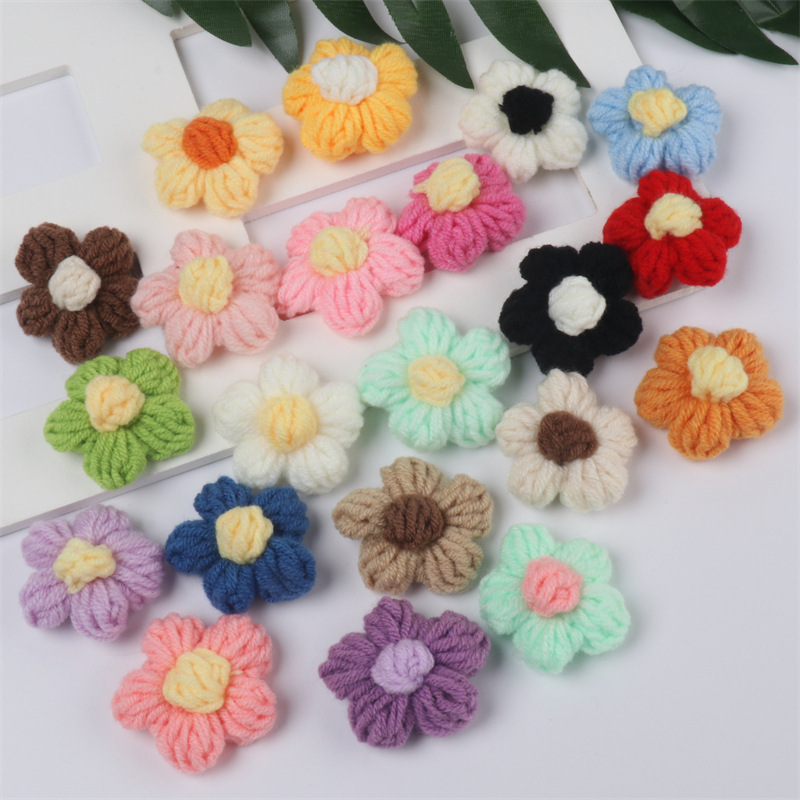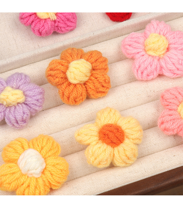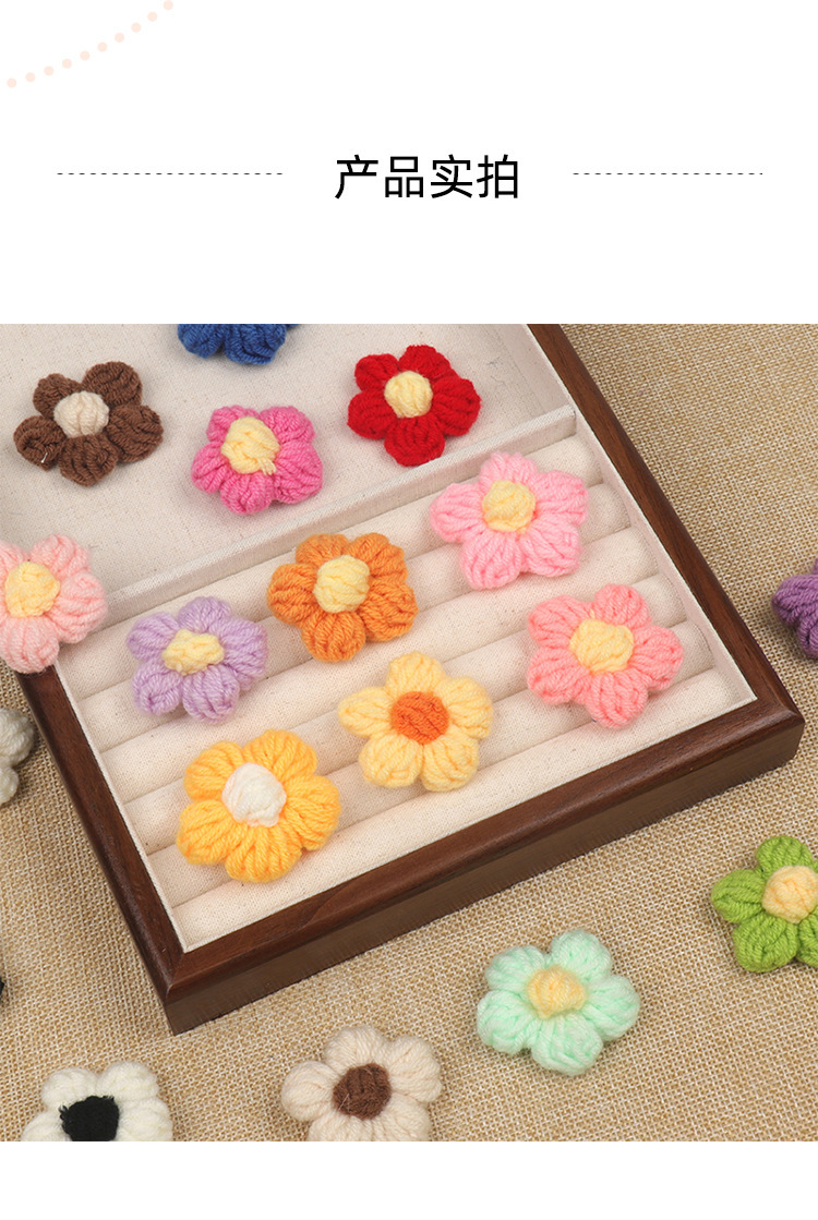 秋冬毛线泡芙花 diy花朵饰品配件韩版可爱小花糖果色服装发夹配件