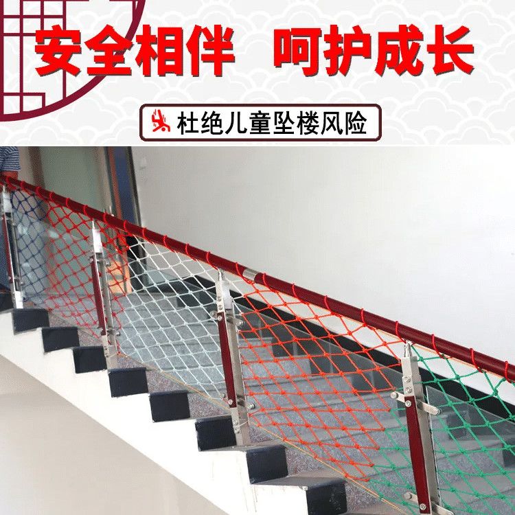 儿童楼梯护栏网高空坠物加密防护网阳台加粗尼龙安全防护网网格