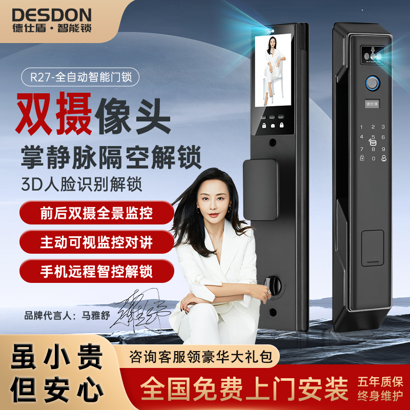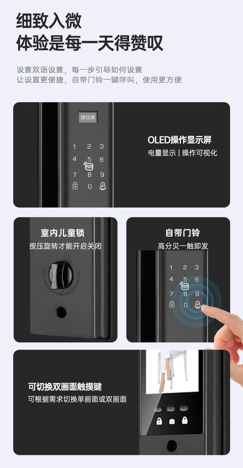 德仕盾人脸全自动指纹锁家用防盗门智能锁密码门锁入户门电子门锁