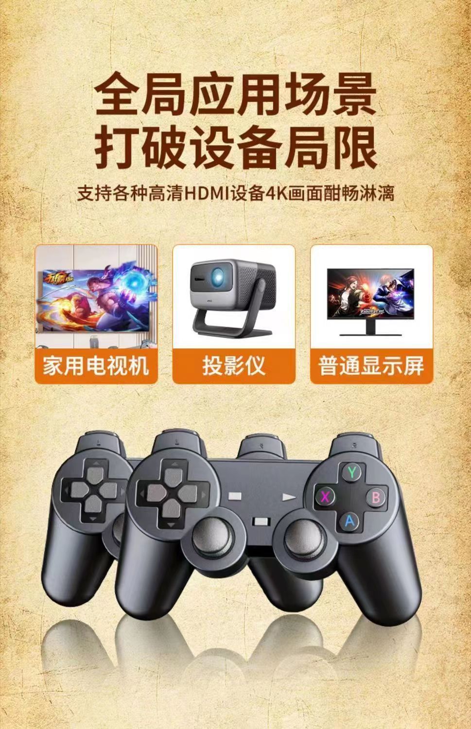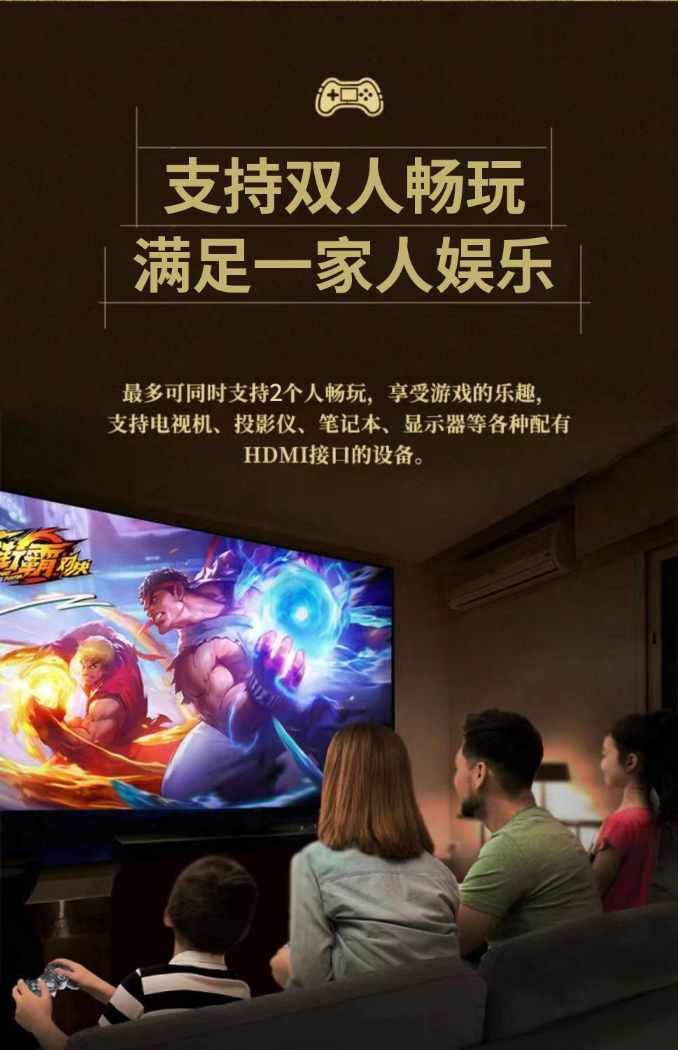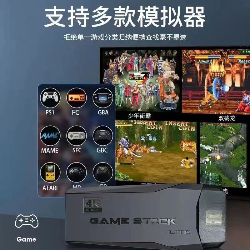 4K高清家用连电视游戏机双人无线手柄摇杆经典FC街机超级玛丽拳皇