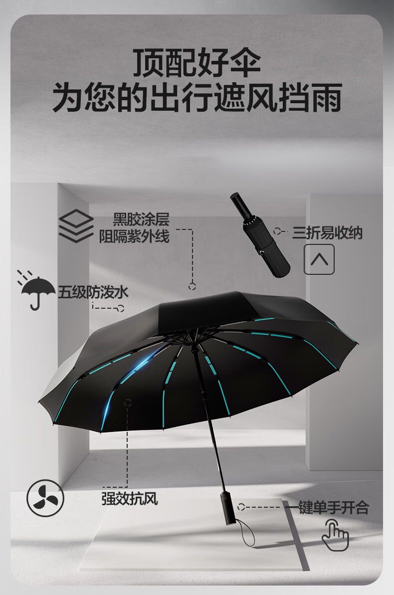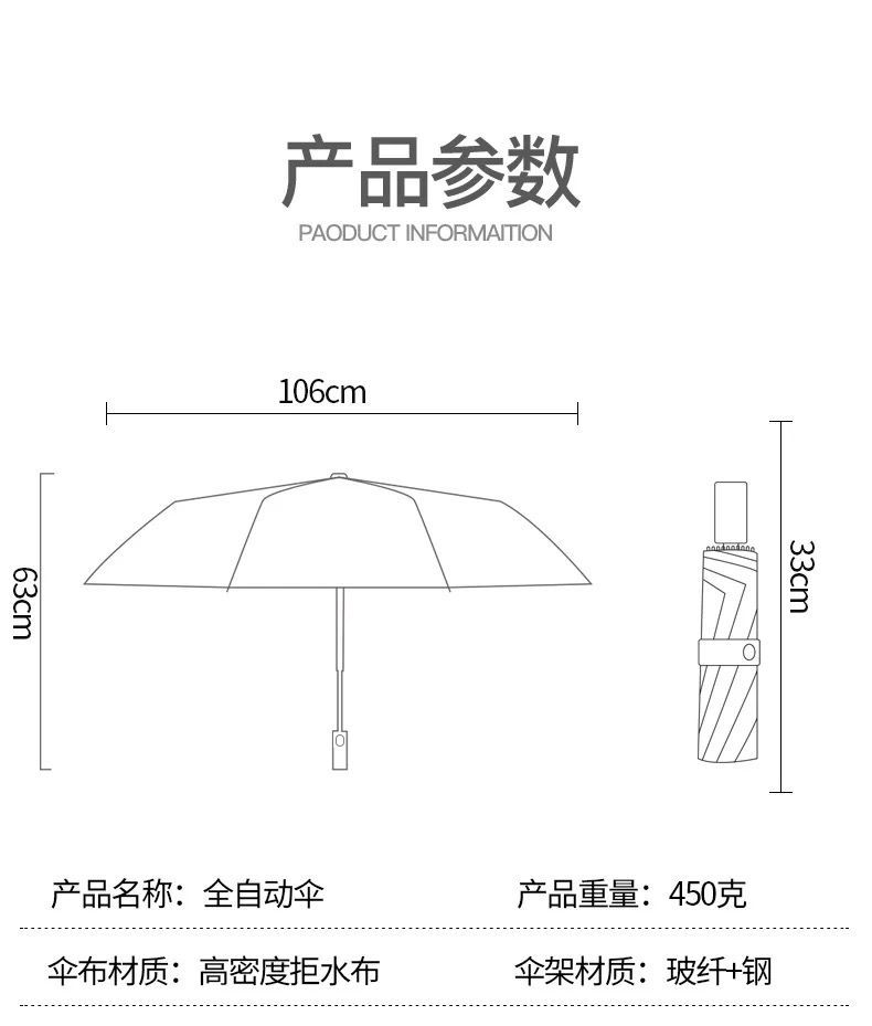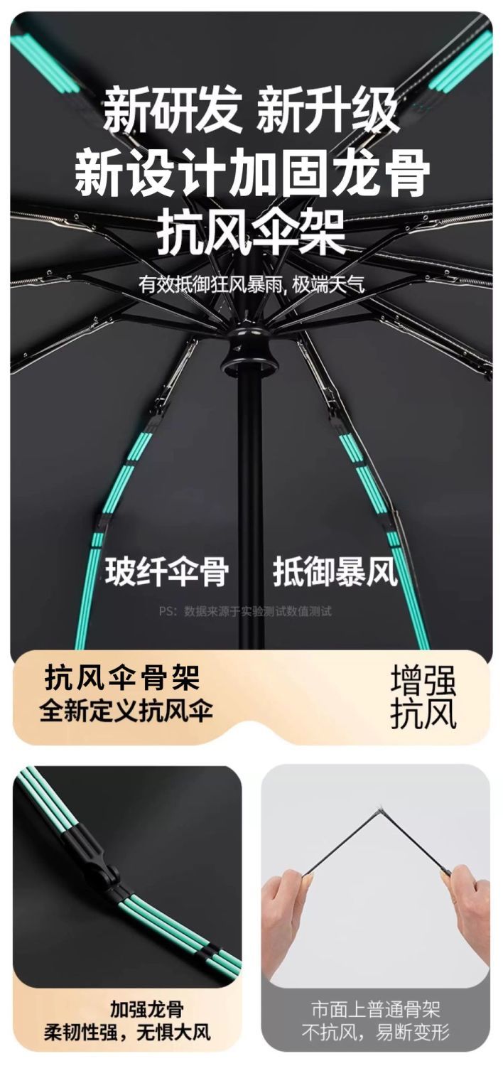 自动雨伞男女折叠太阳伞加大加固晴雨两用防晒防紫外线加厚遮阳伞