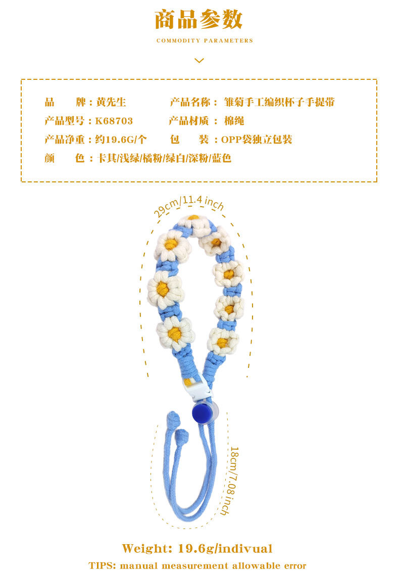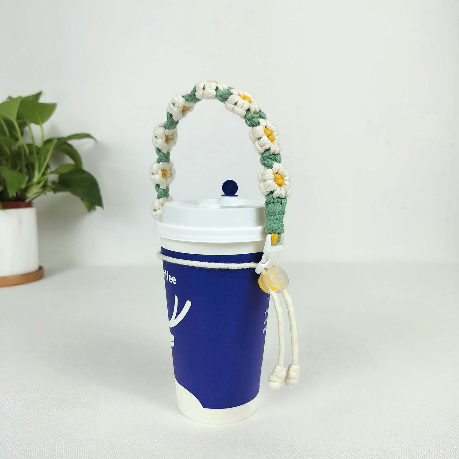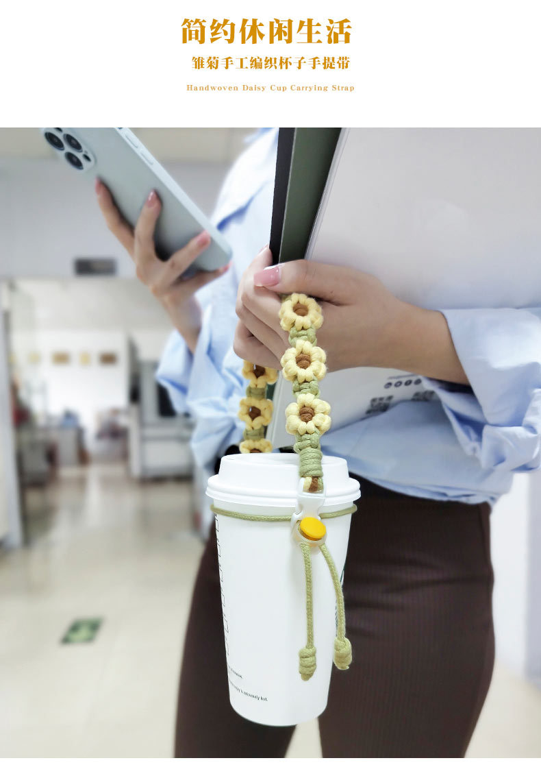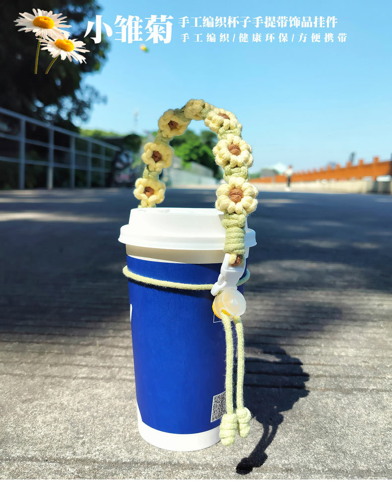 非遗便携运动杯套水杯带手工编织花朵可爱小雏菊奶茶咖啡杯水杯绳