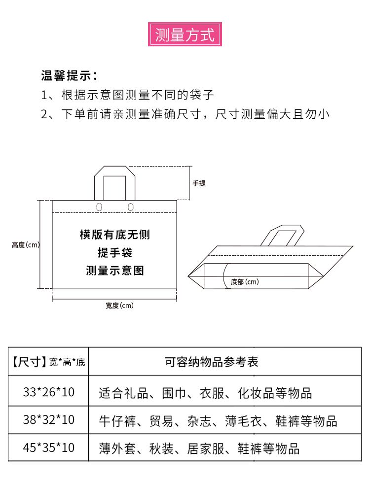 | horizontal section 40 width * 30 height * bottom side 10(横款40宽*30高*底侧10) | USD $6.9 | 999999 piece available |
