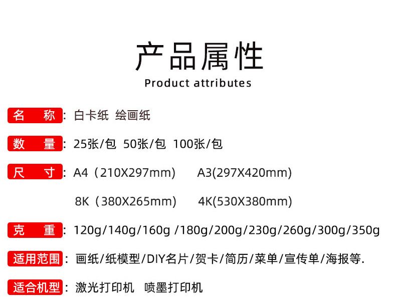 | [4k. white cardboard] 180g * 50 sheets(【4K.白卡纸】180克丨50张) | USD $11.98 | 999999 piece available |
