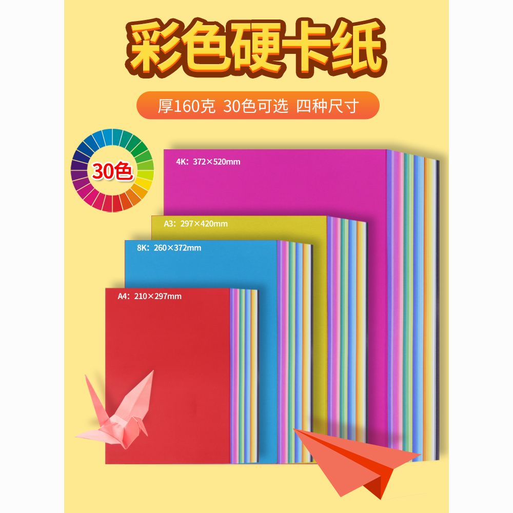 彩色加厚硬卡纸a4混色卡纸8k幼儿园手工硬卡纸4k手工作业折纸a3