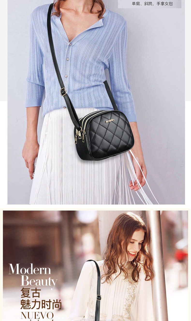 真皮质感正品秋冬新款时尚绣线菱格大容量女包单肩斜挎女式手机包