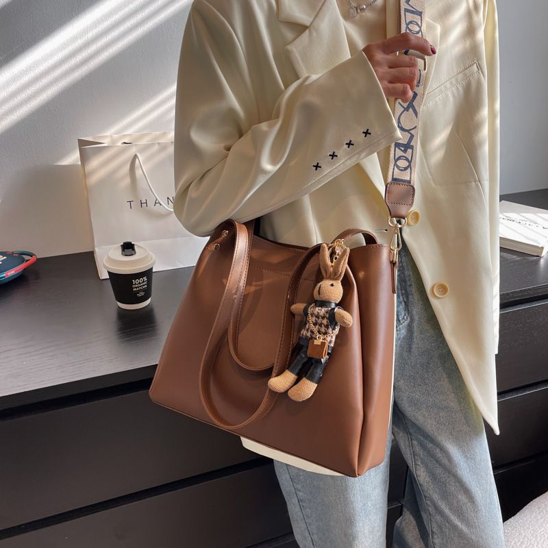 大容量春季通勤单肩包包女包2025新款大学生上课包百搭斜挎托特包