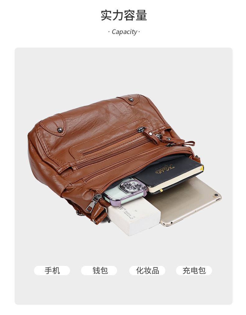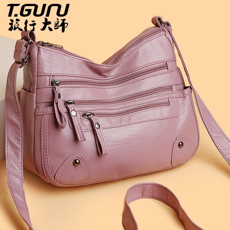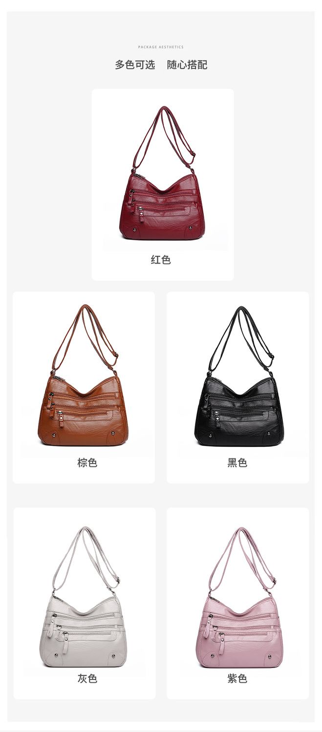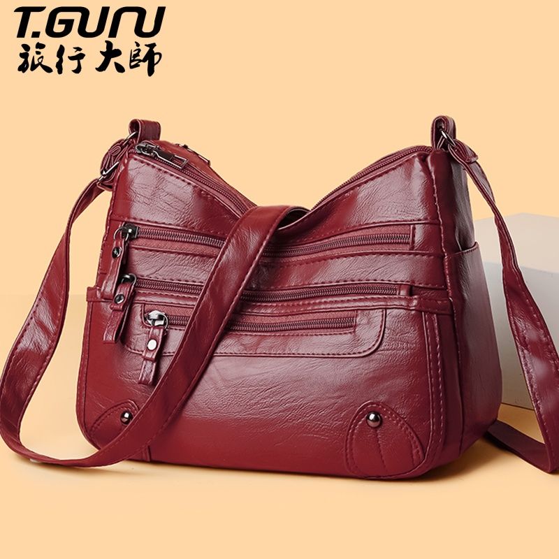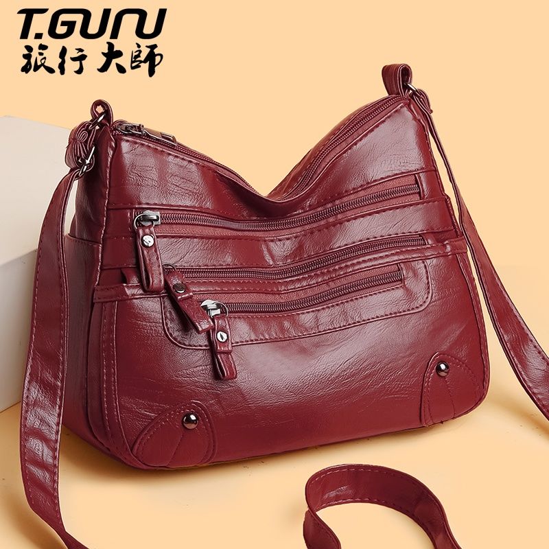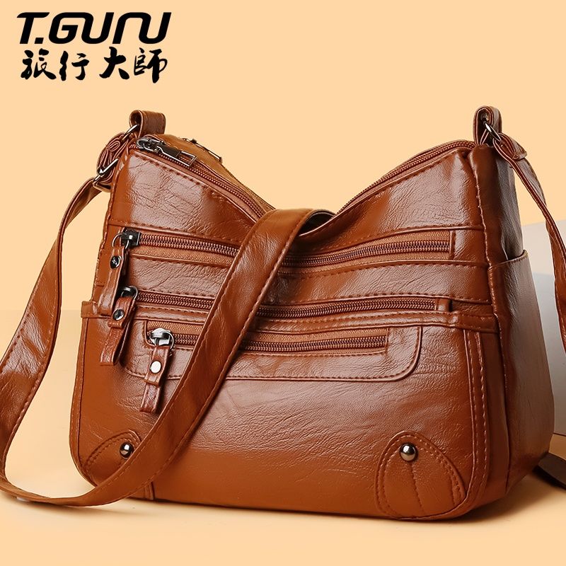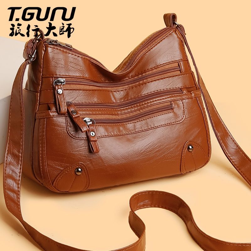 包包女多层大容量妈妈包2024时尚新款软皮女包中年女士单肩斜挎包