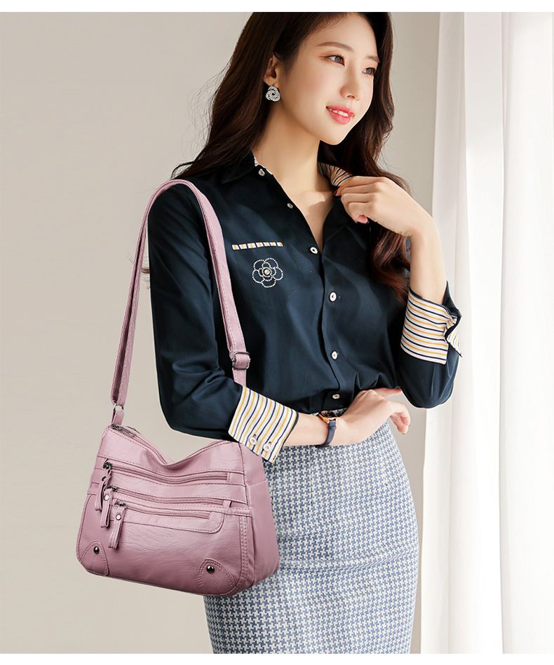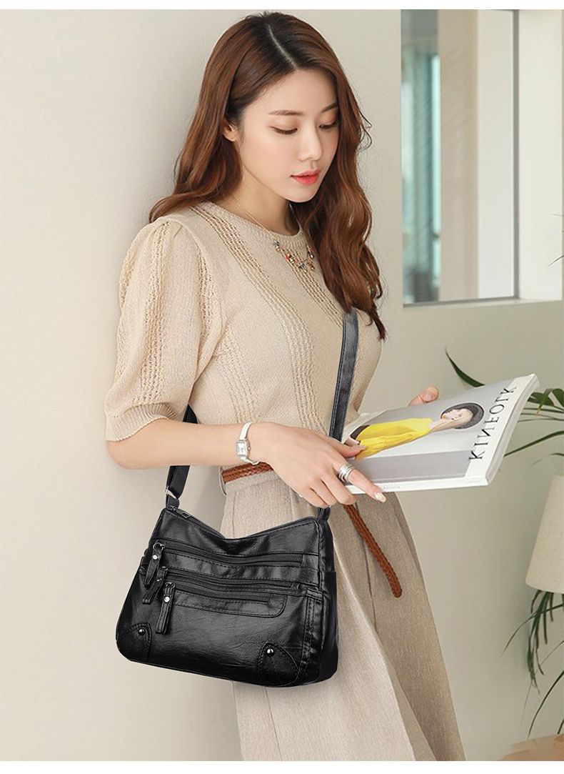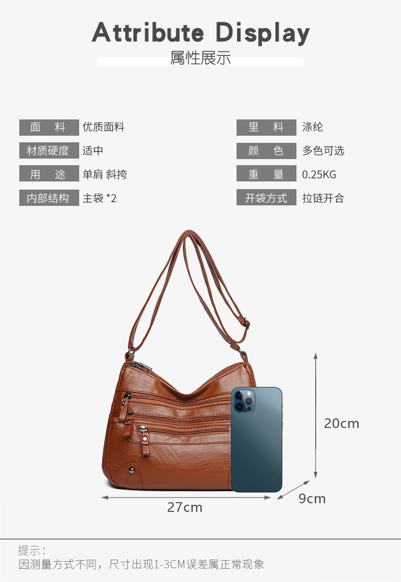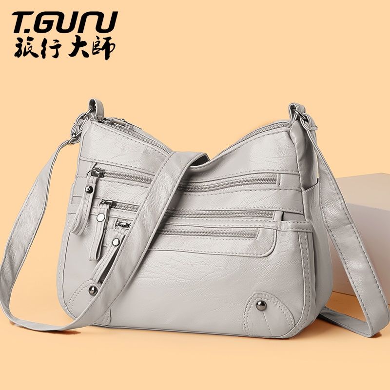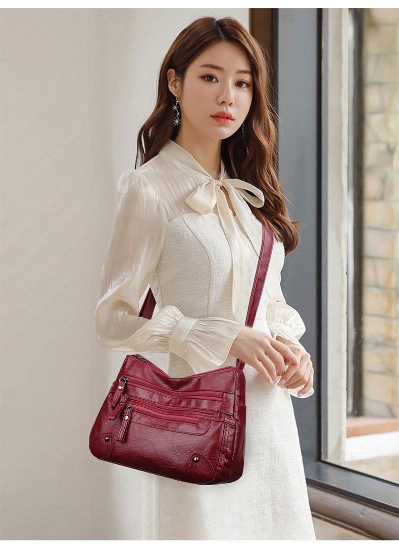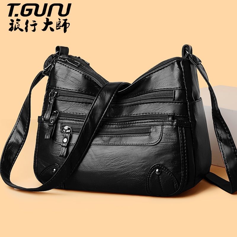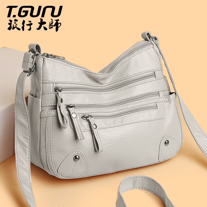 包包女多层大容量妈妈包2024时尚新款软皮女包中年女士单肩斜挎包