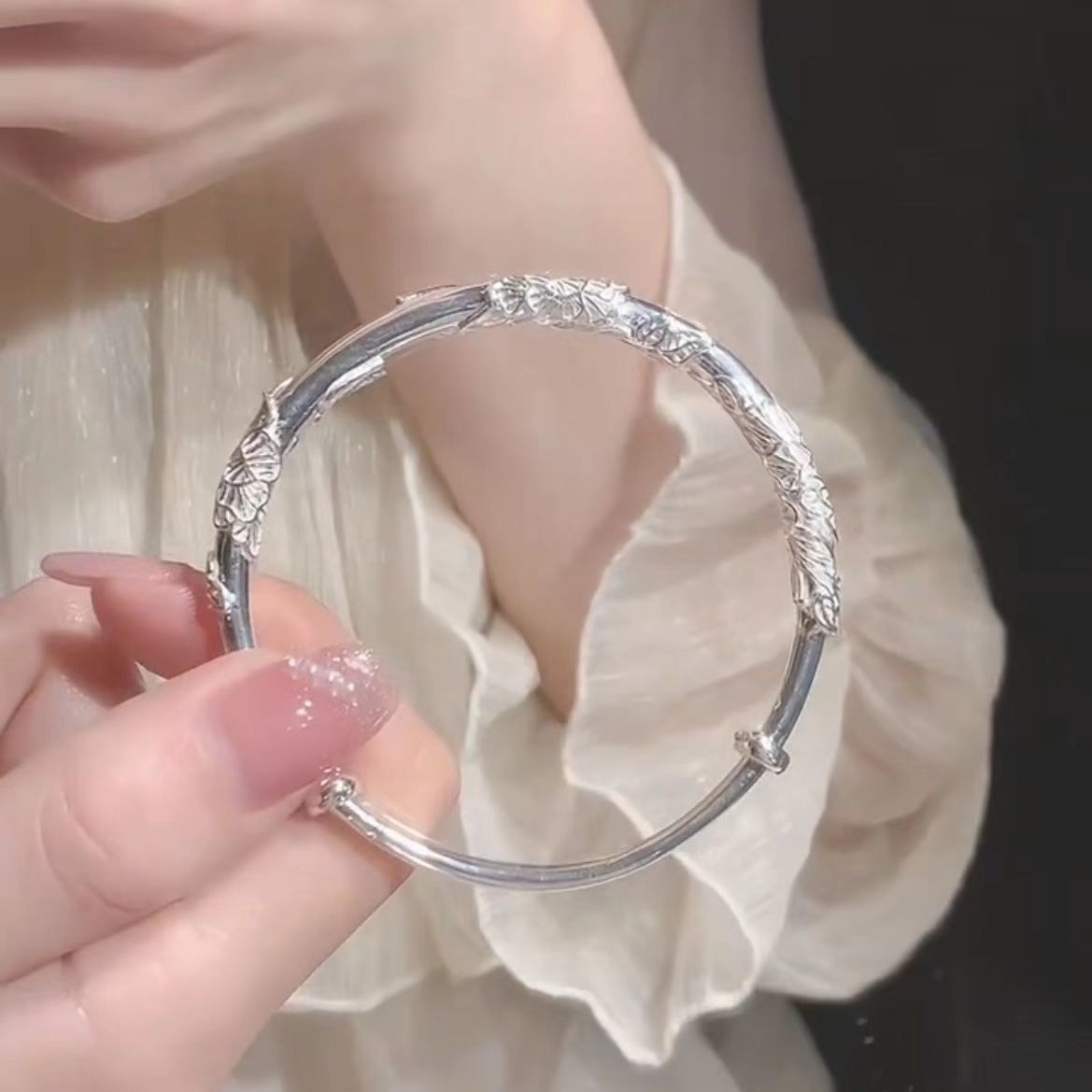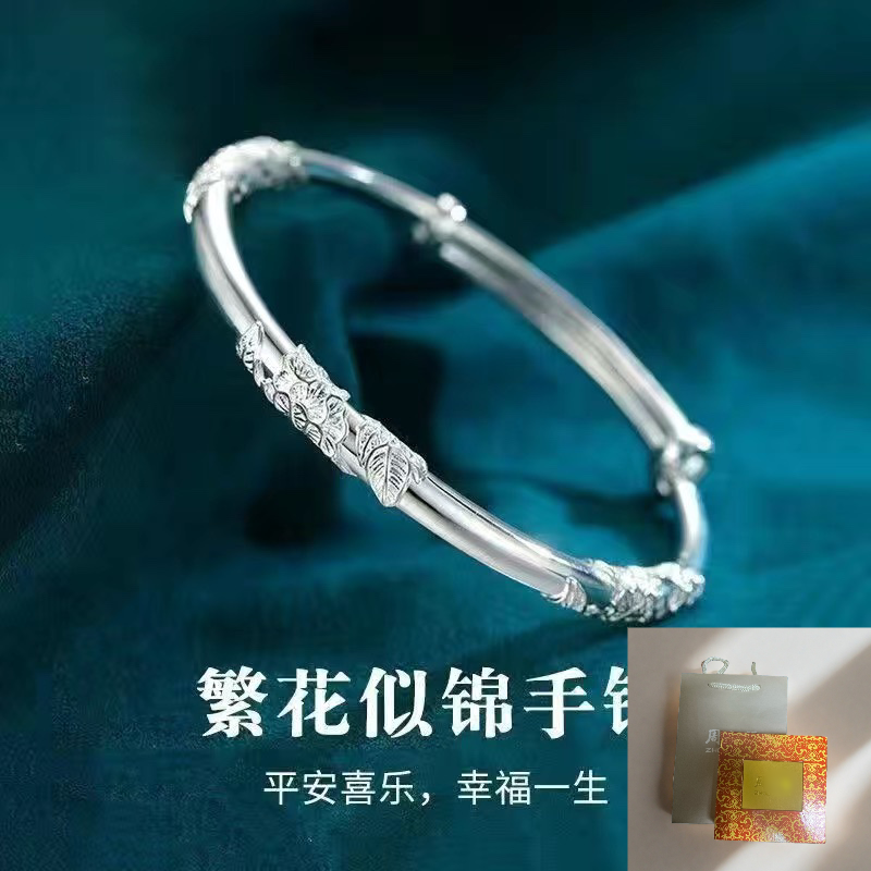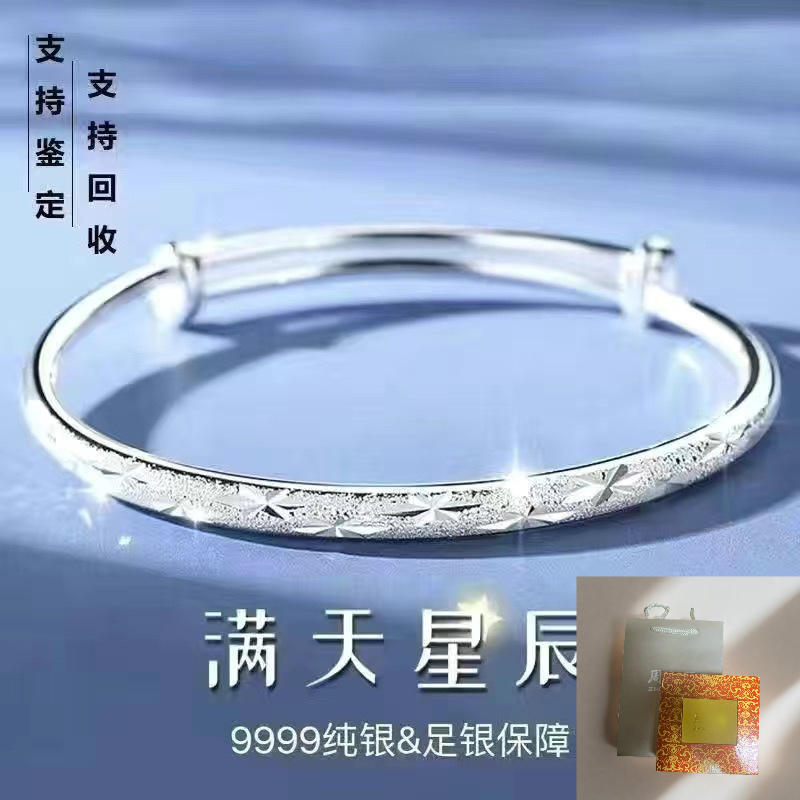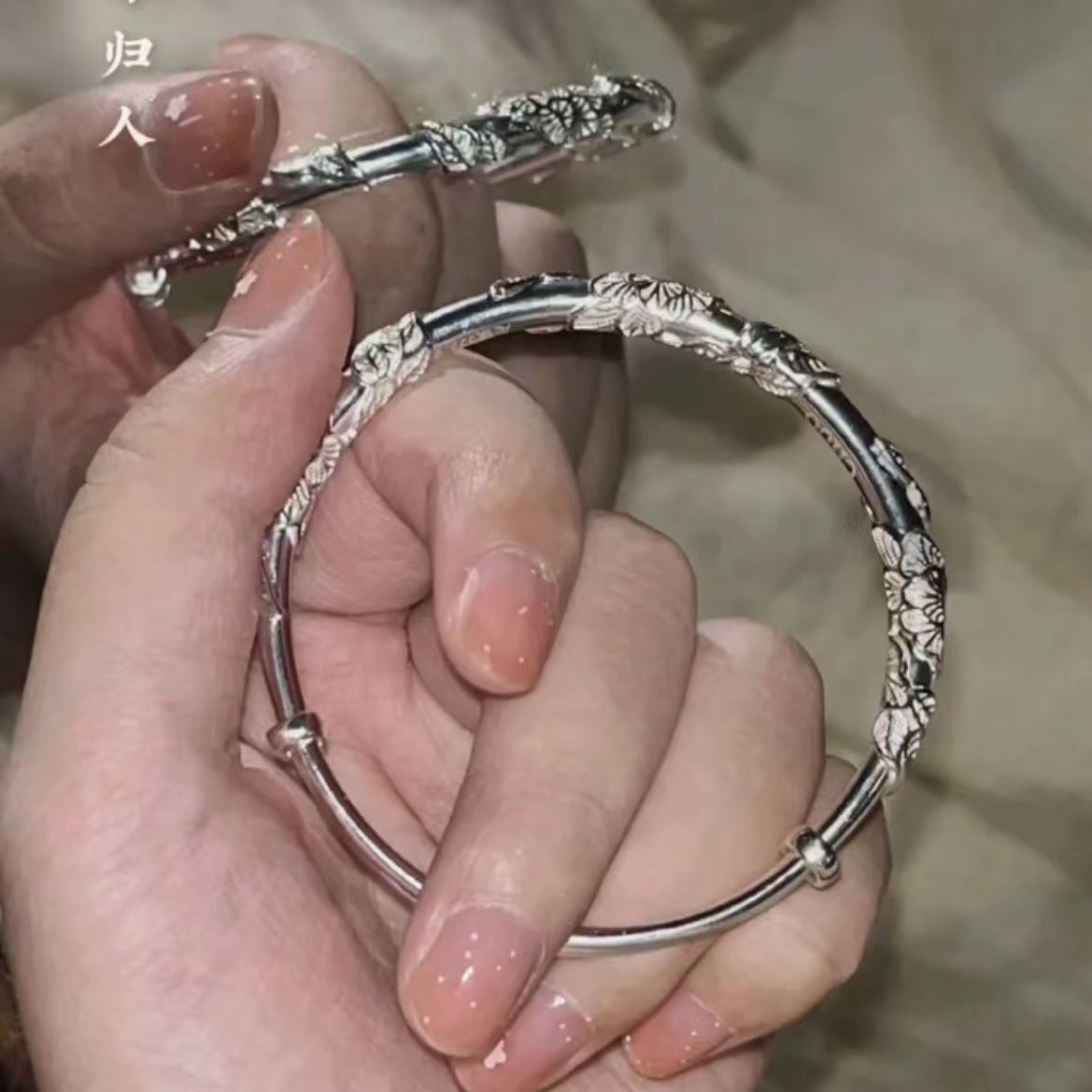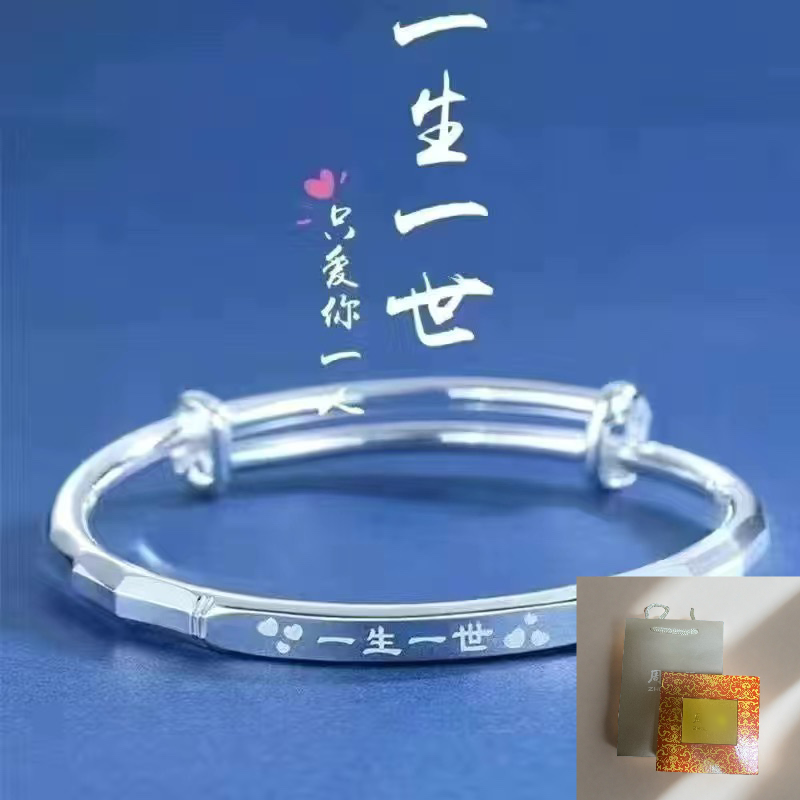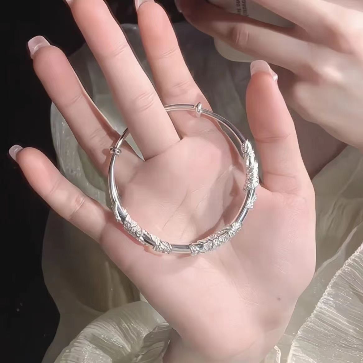繁花似锦999千足银镯子蝴蝶手镯镯子实心推拉气质年轻刻字520礼物