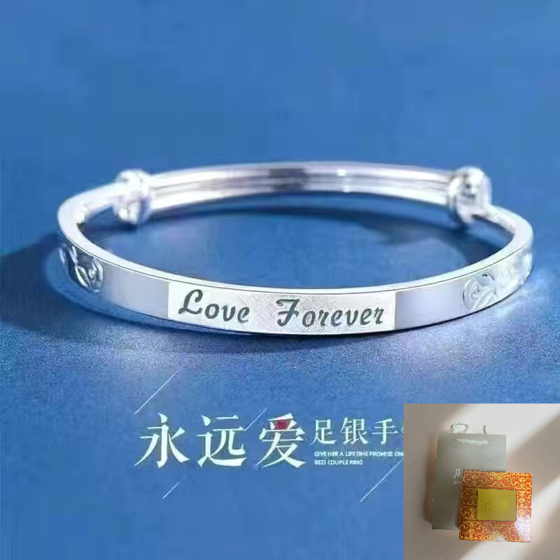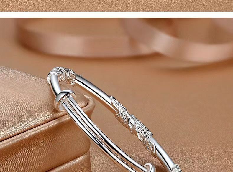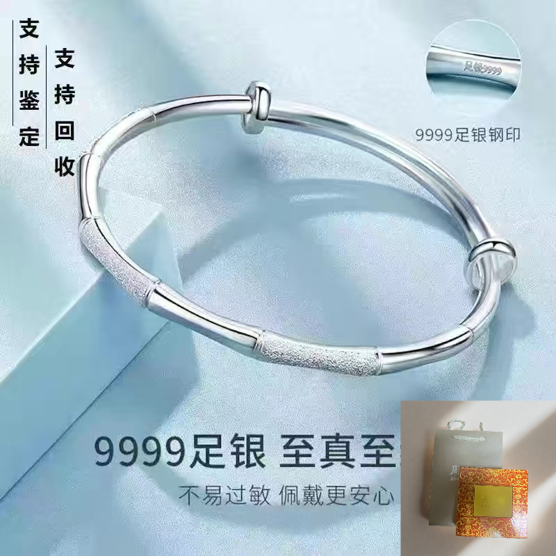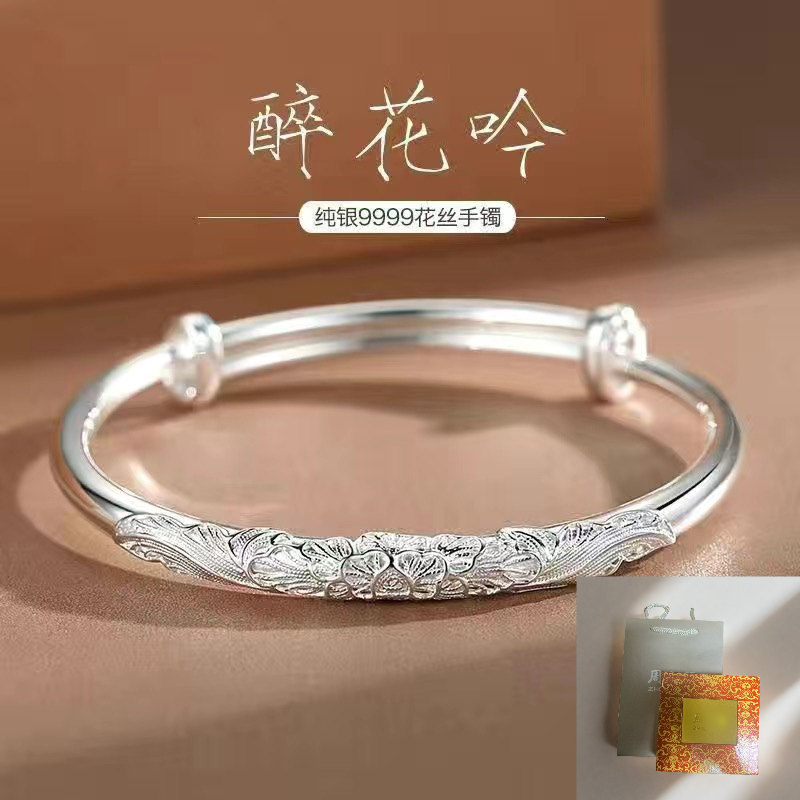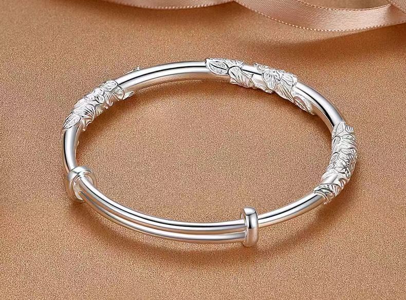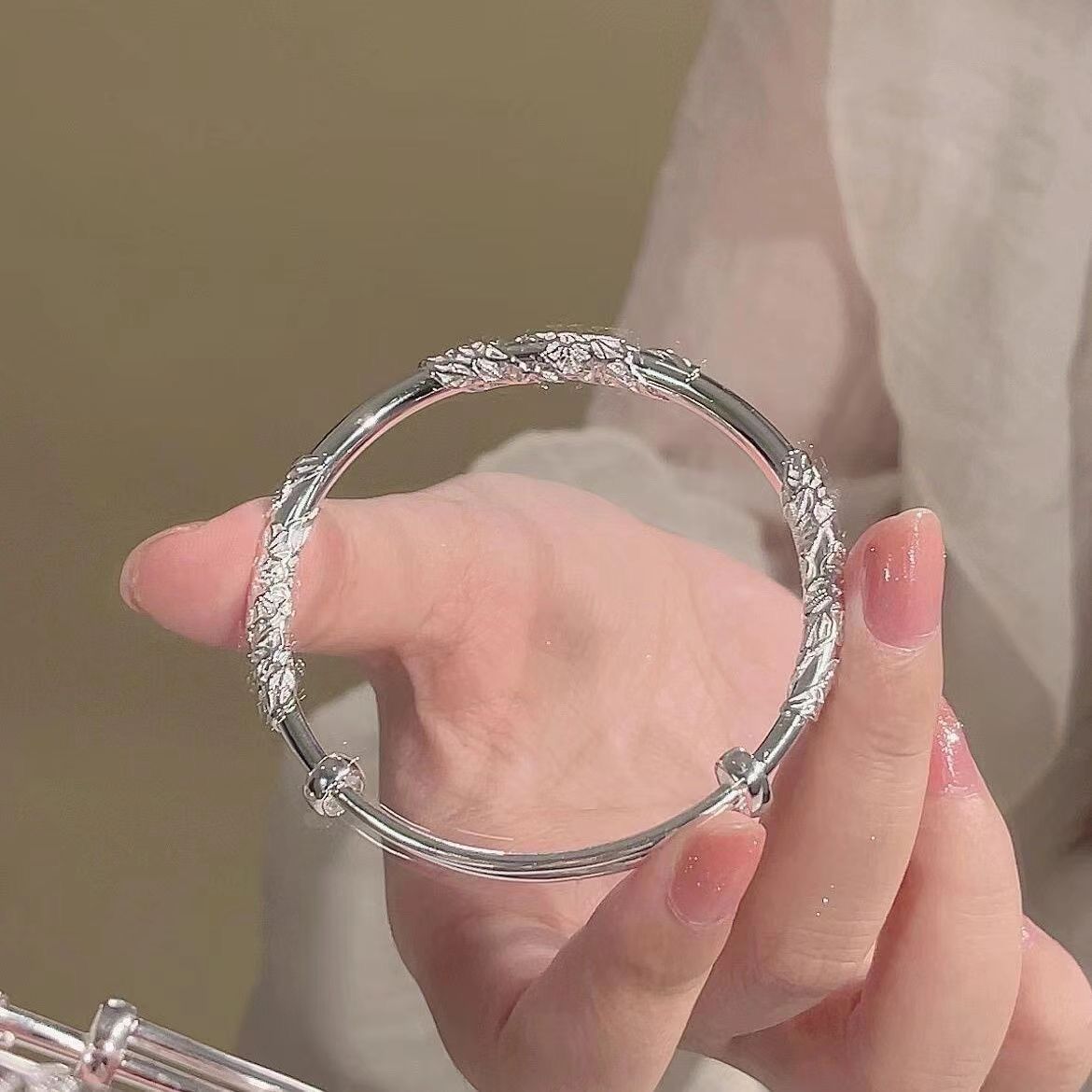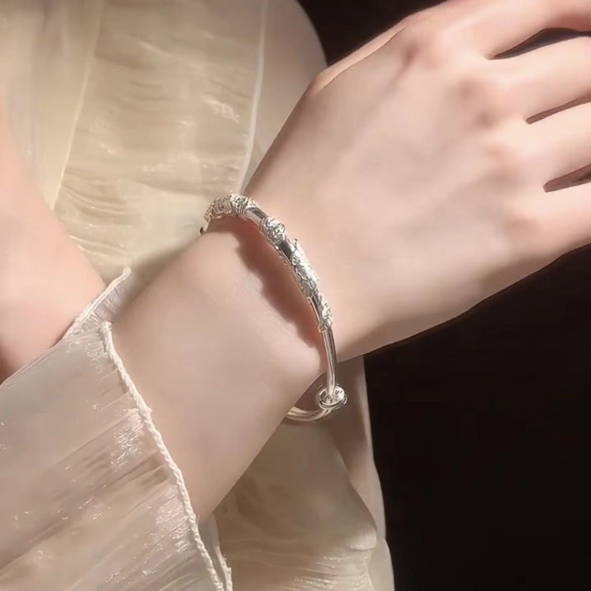 繁花似锦999千足银镯子蝴蝶手镯镯子实心推拉气质年轻刻字520礼物
