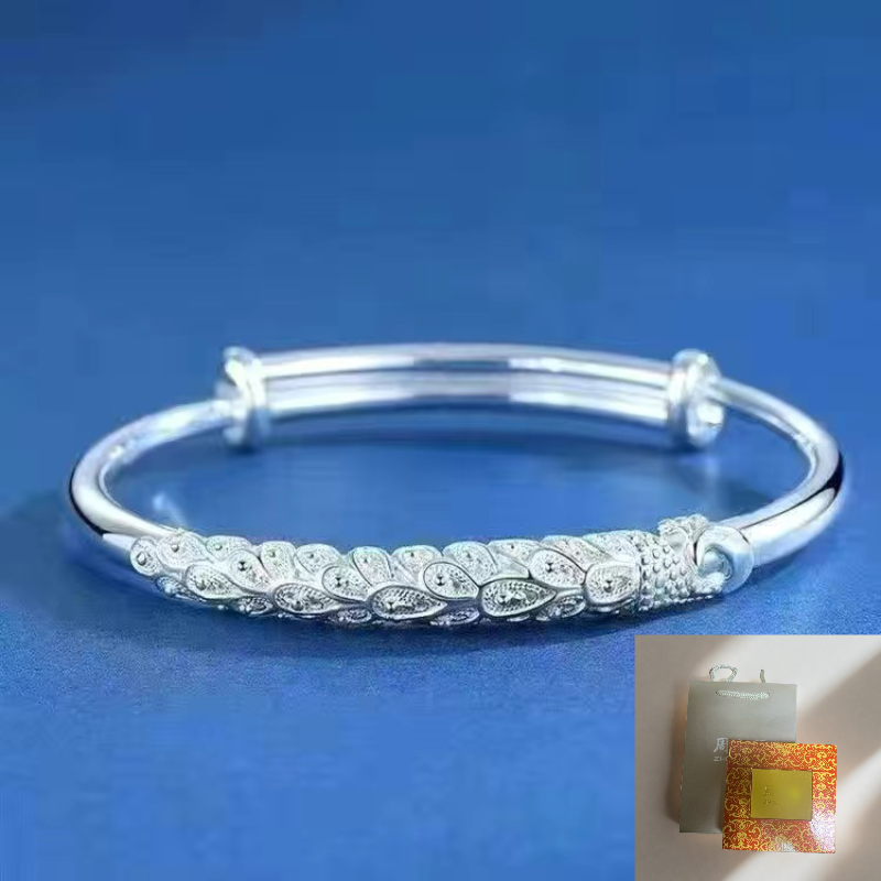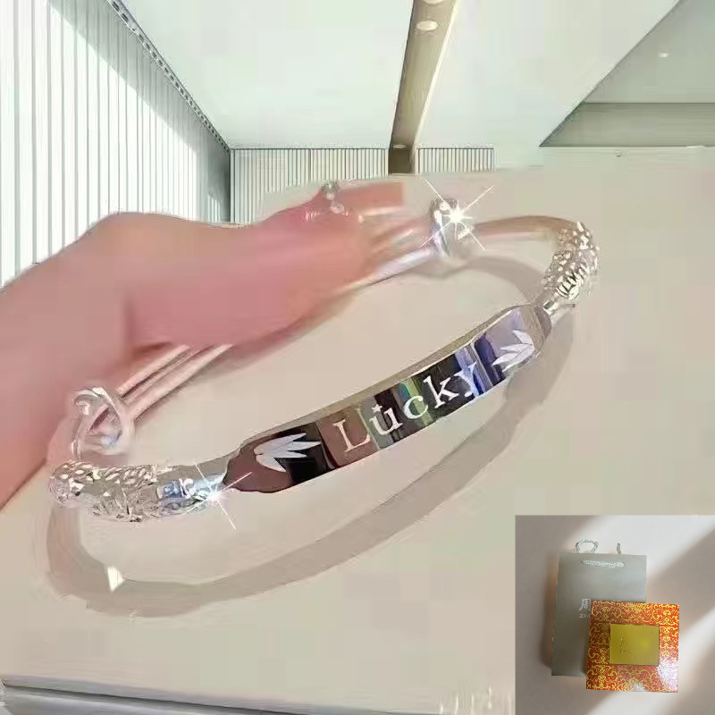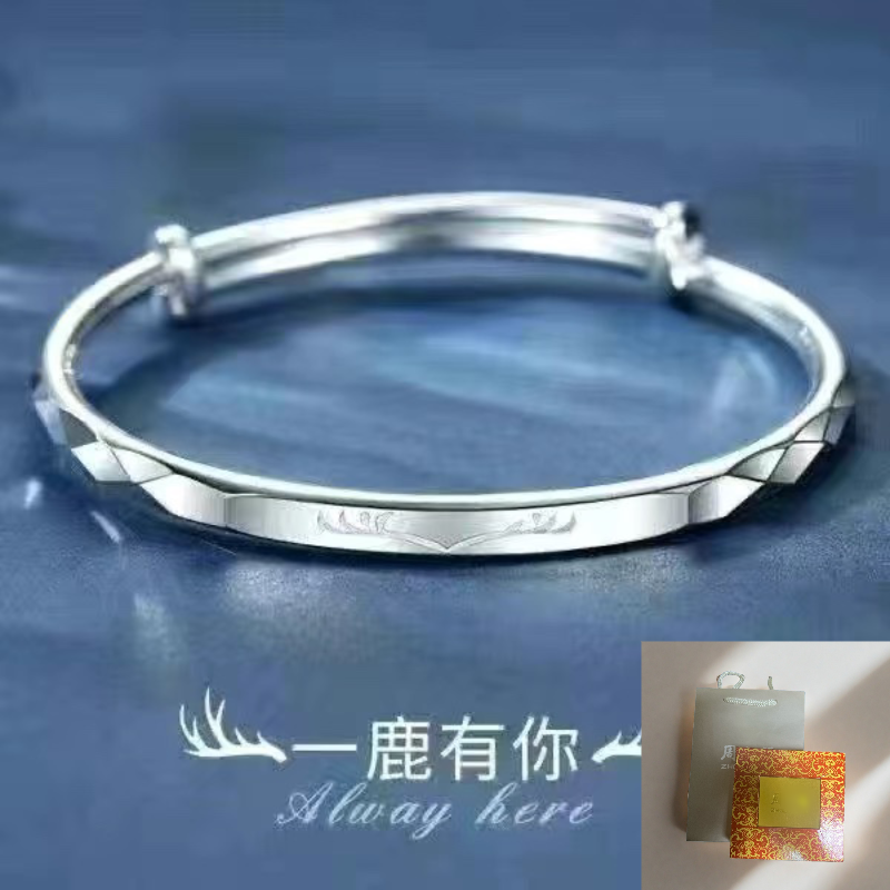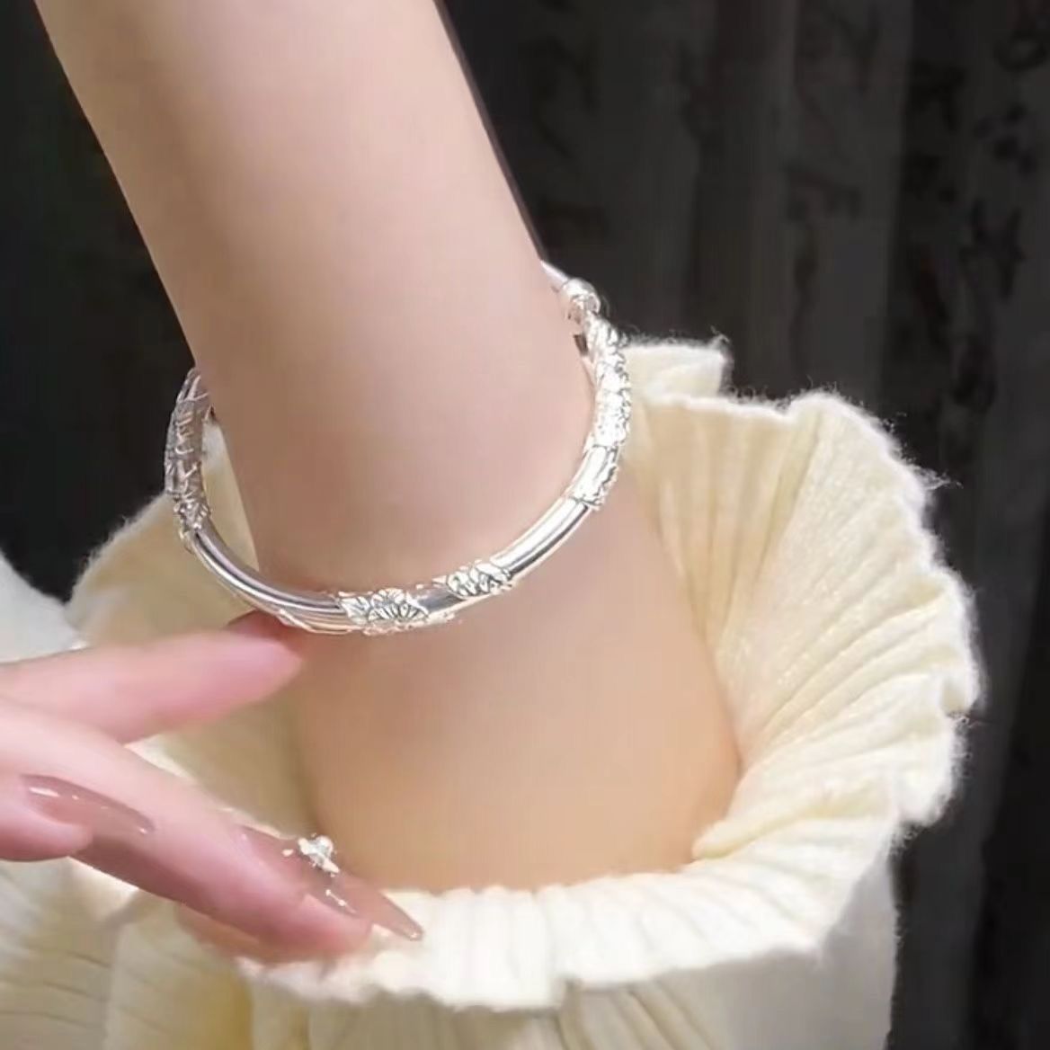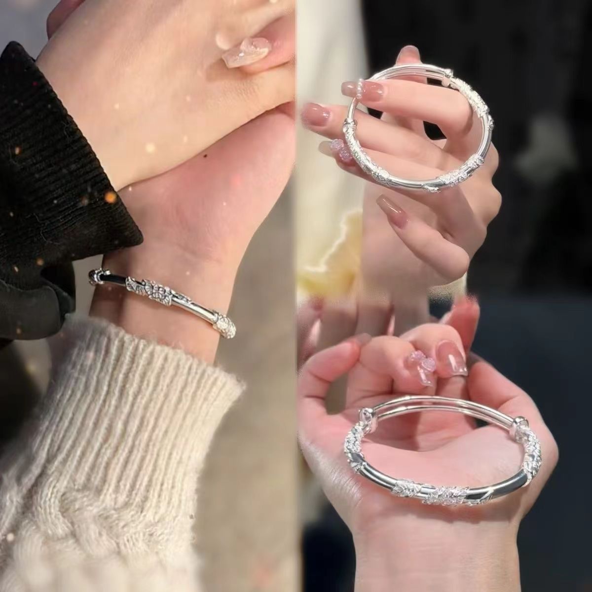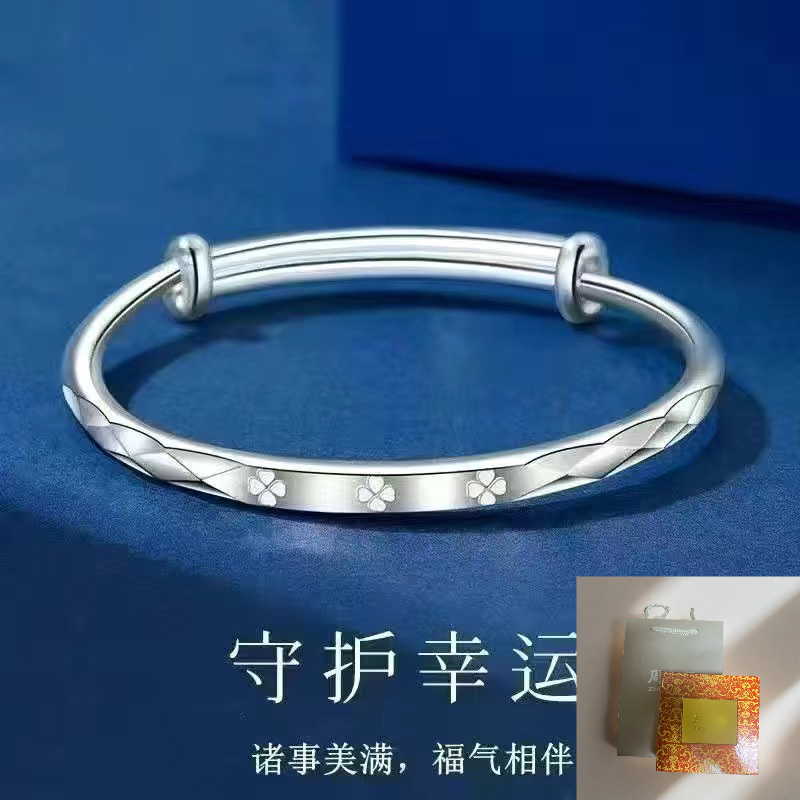 繁花似锦999千足银镯子蝴蝶手镯镯子实心推拉气质年轻刻字520礼物