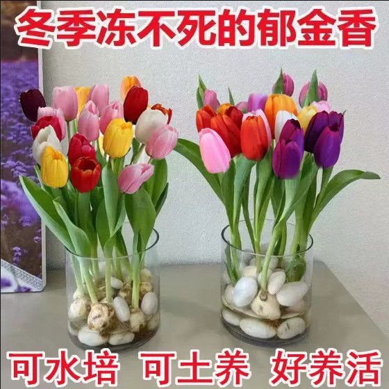 郁金香水培水养荷兰进口重瓣大种球四季开花耐寒新手好活土养花种