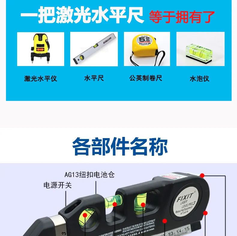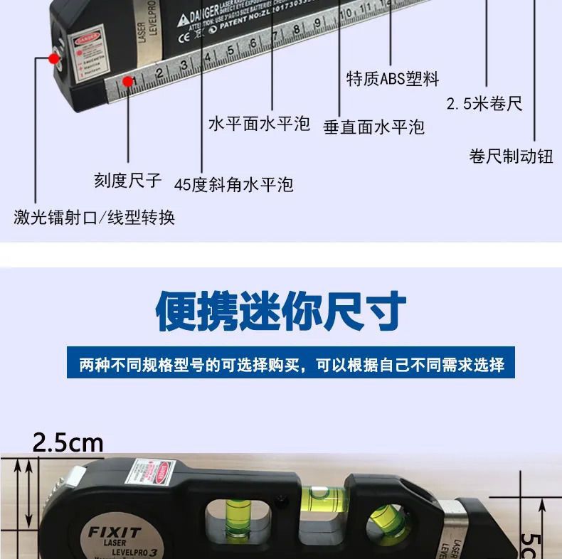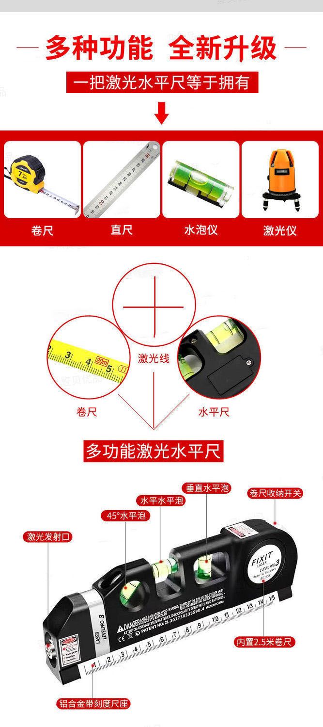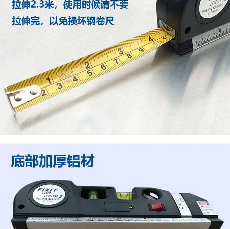 激光红外线水平仪十字线多功能投线器水平尺卷尺高精度测量工具尺