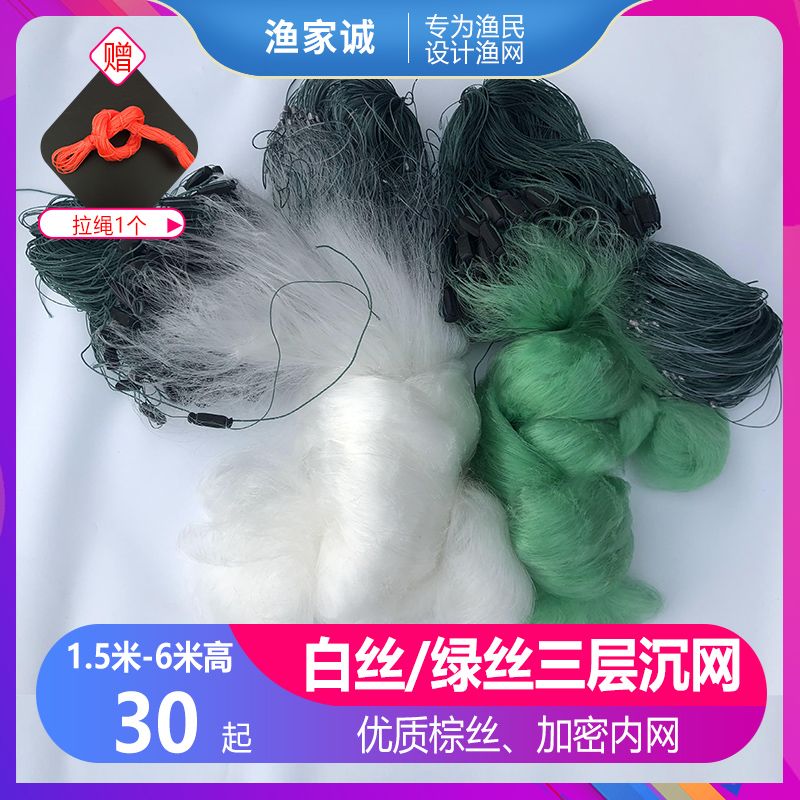 渔网粘网三层1.5米2米3米高100米长加粗沉网挂网捕鱼网鲫鱼网丝网