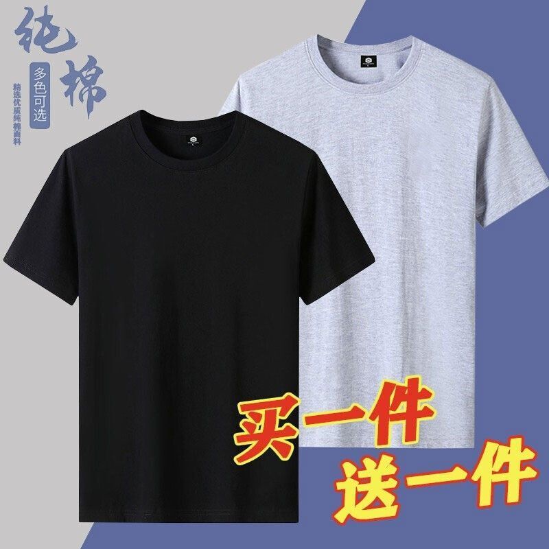 【买一送一】短袖男纯棉夏季T恤男士半袖潮流打底衫男装纯色宽松