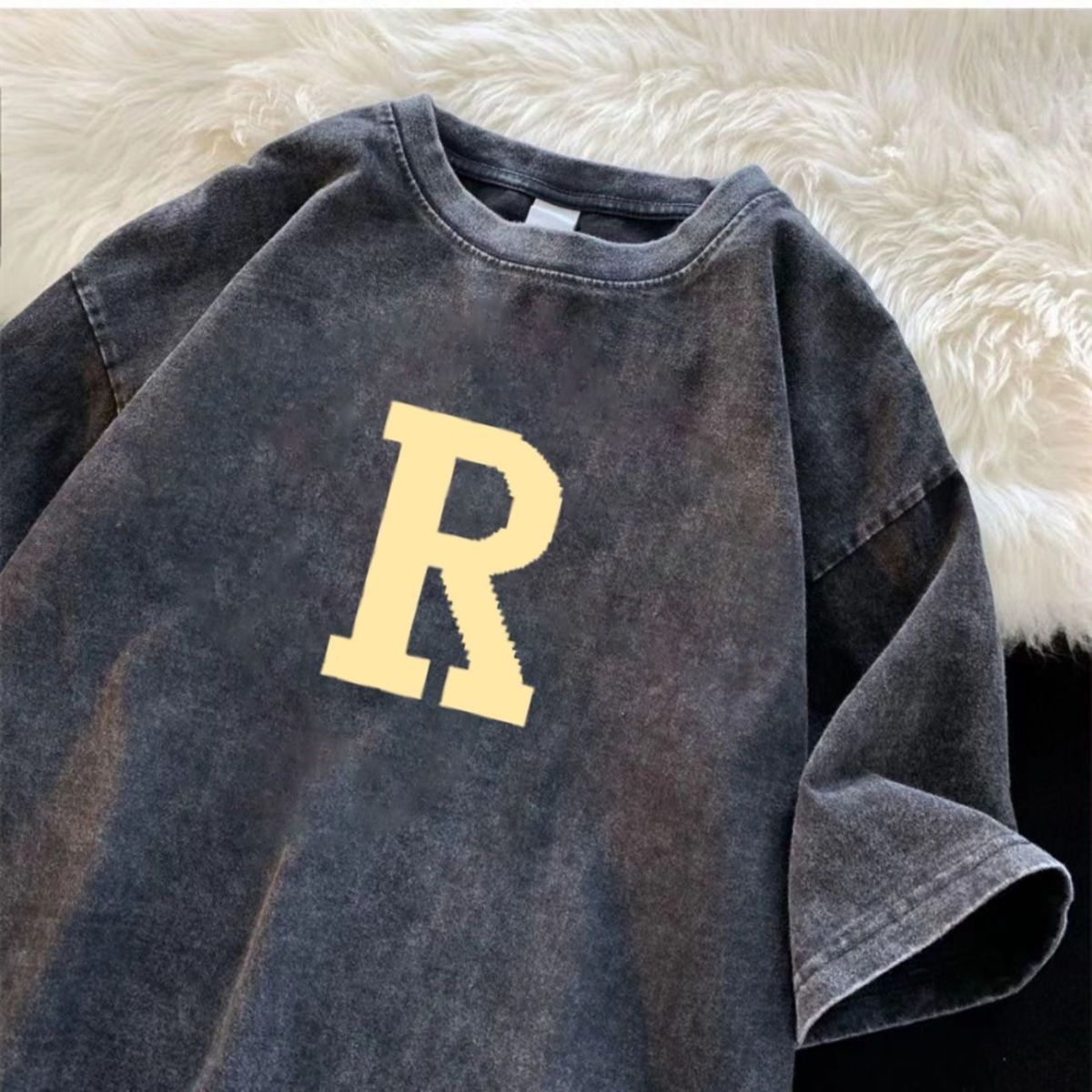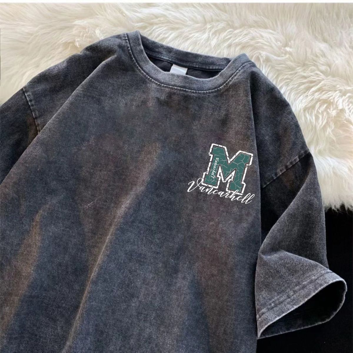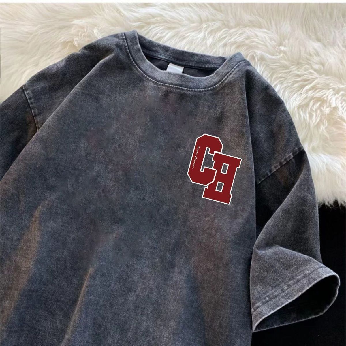 100%不起球美式复古水洗做旧短袖t恤男女夏季潮流ins风宽松上衣服
