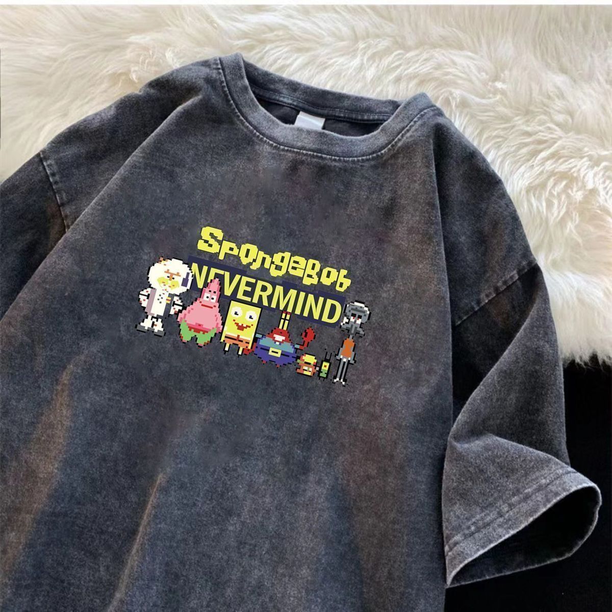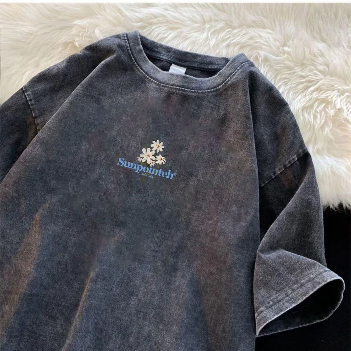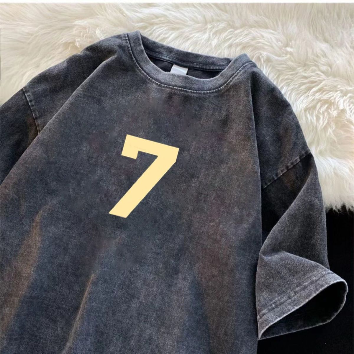 100%不起球美式复古水洗做旧短袖t恤男女夏季潮流ins风宽松上衣服