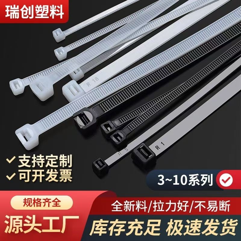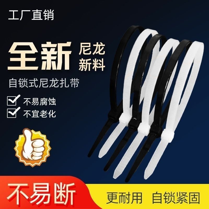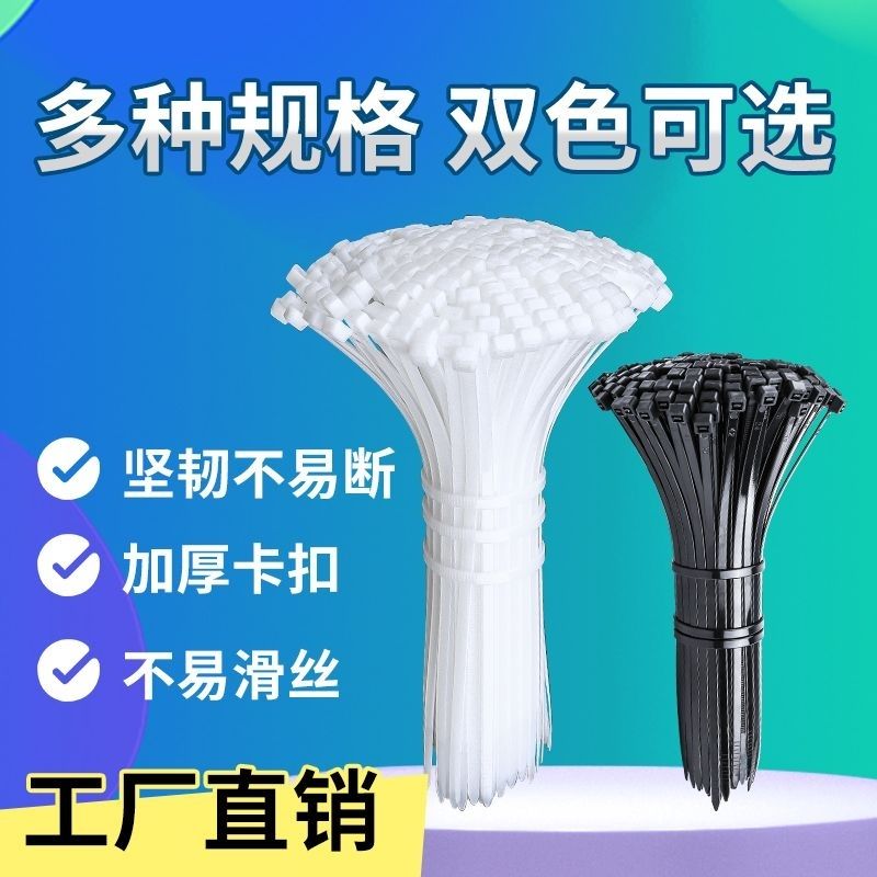 批发尼龙扎带工业级束带环保自锁塑料绑线卡扣白黑色加粗加厚