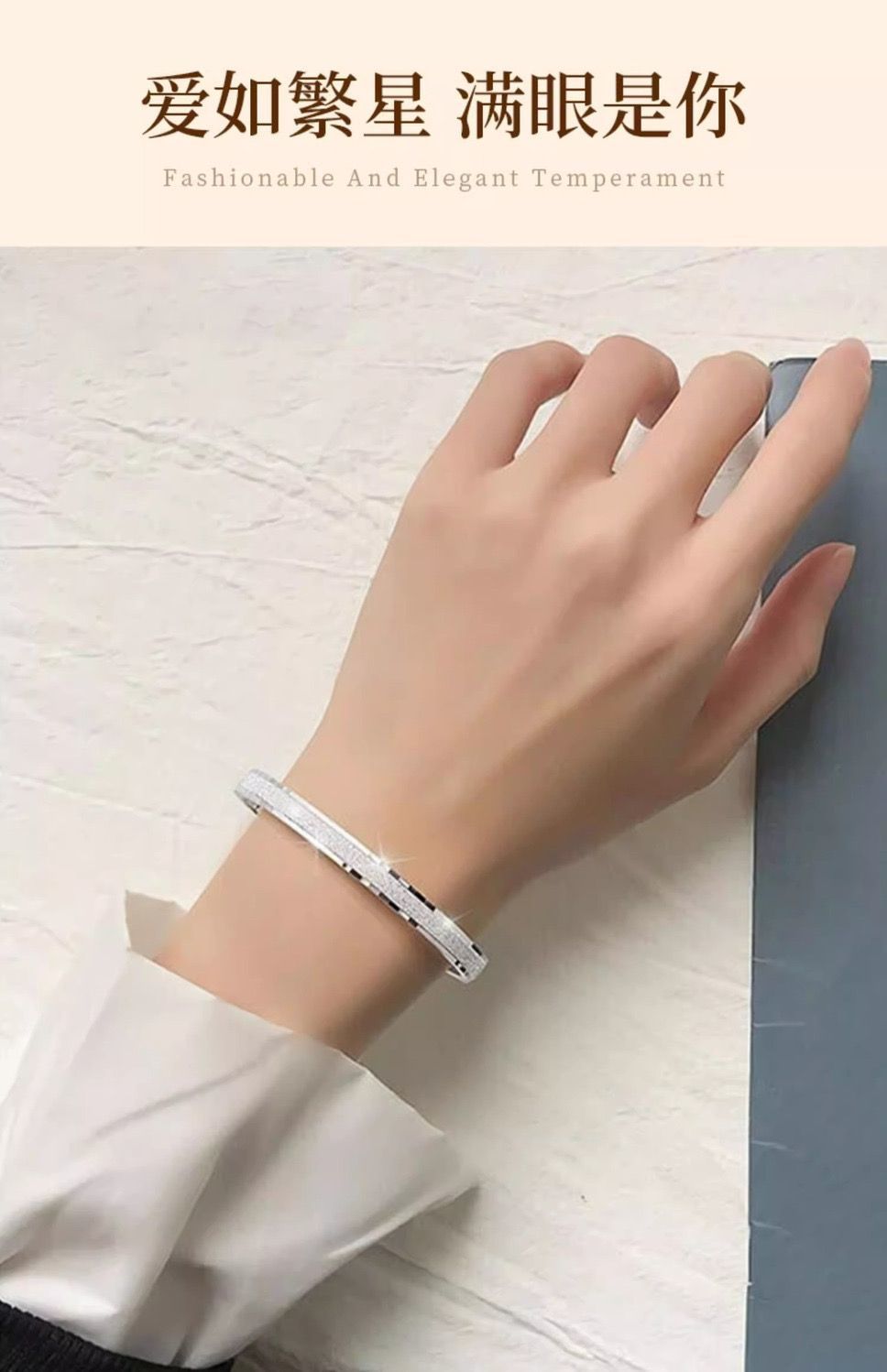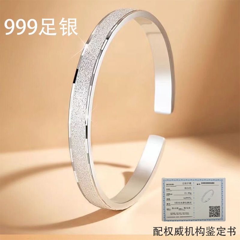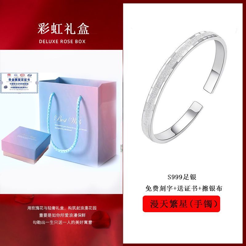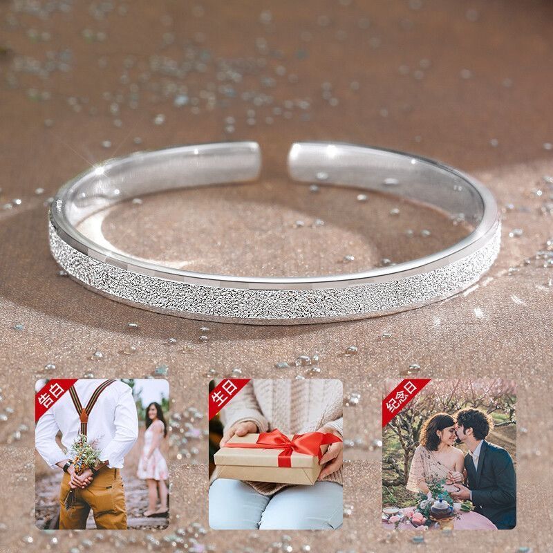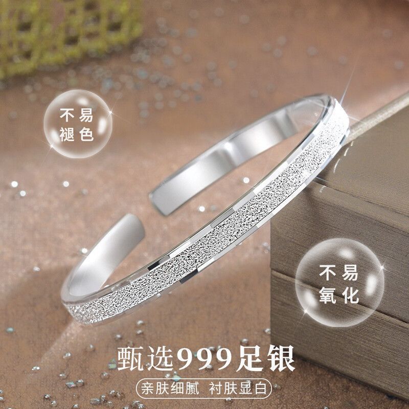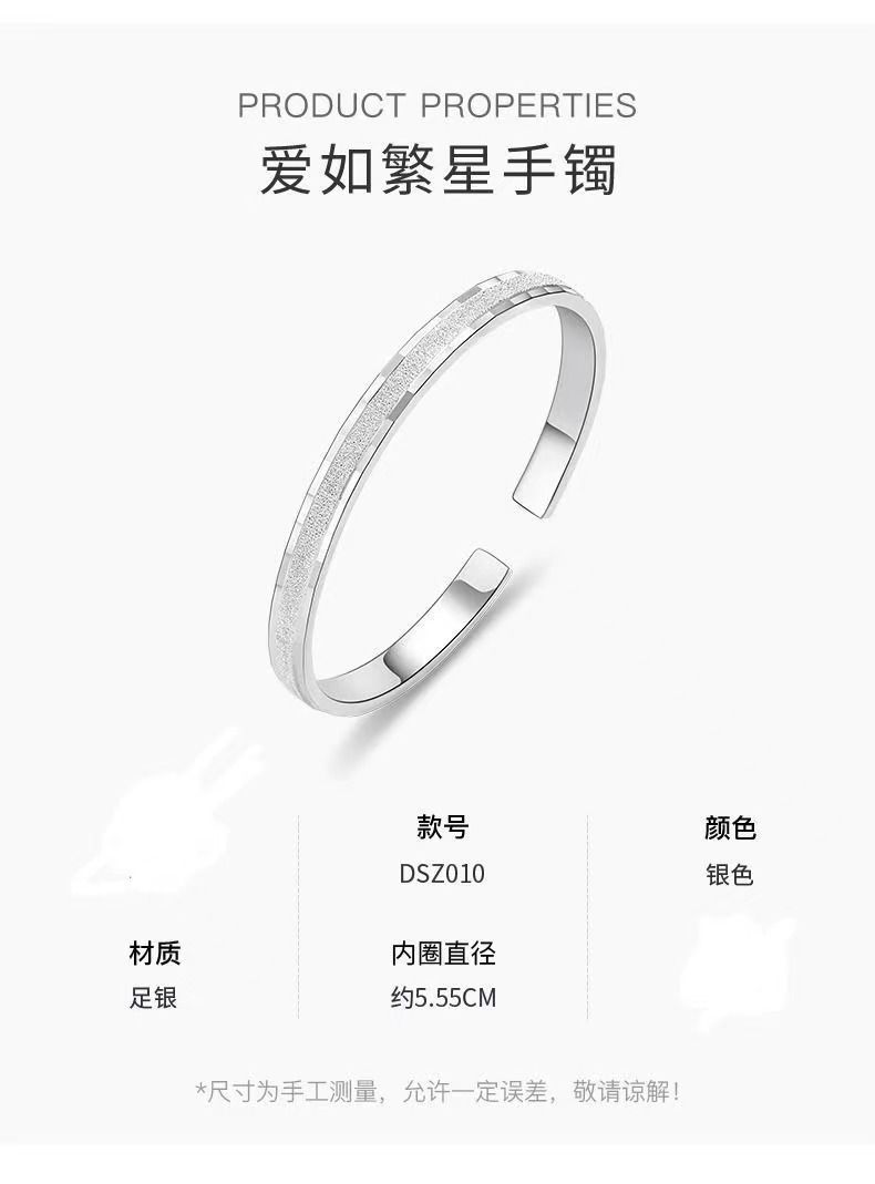 999足银手镯磨砂满天星镯子高级感学生碎冰冰手环女情人节送女友