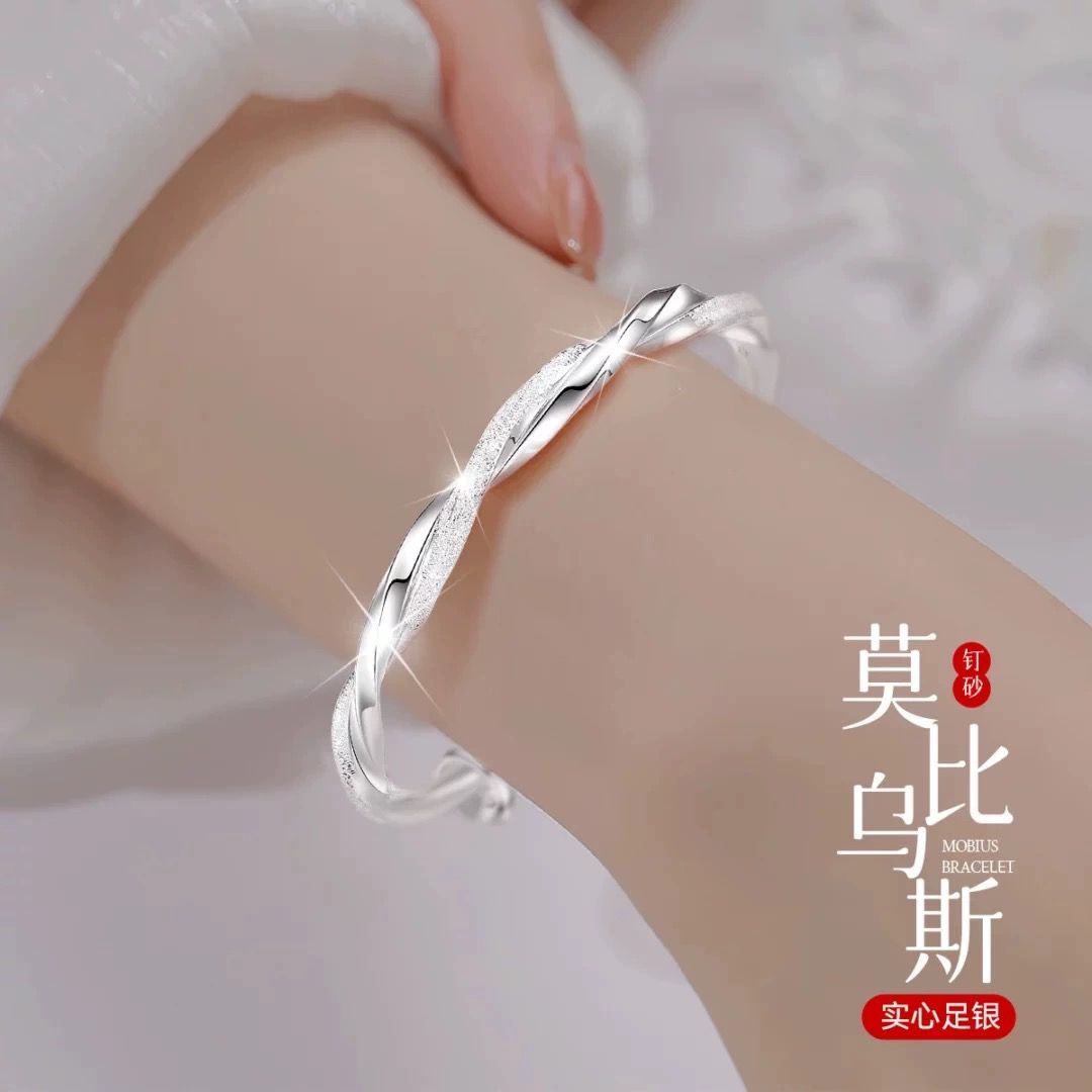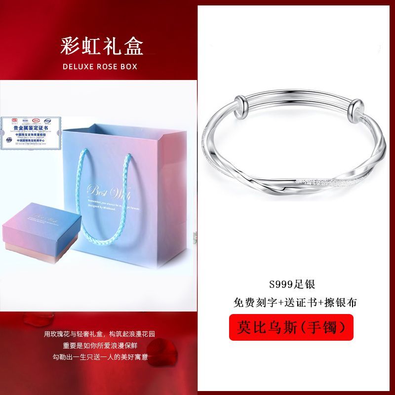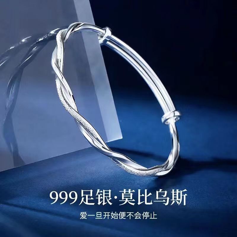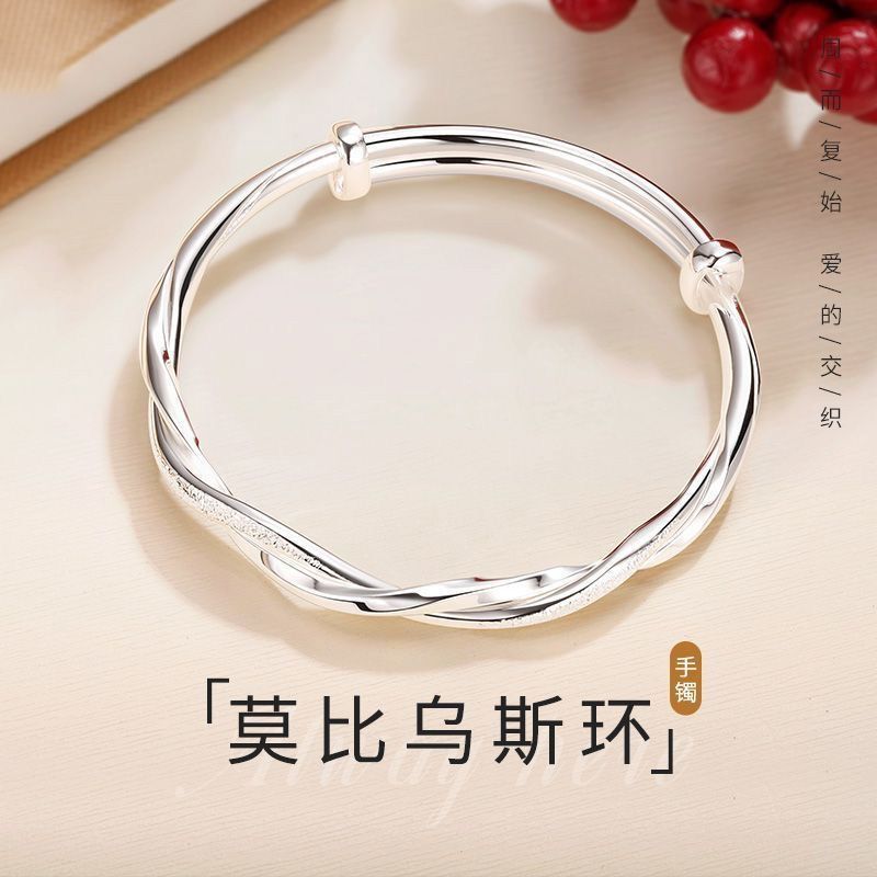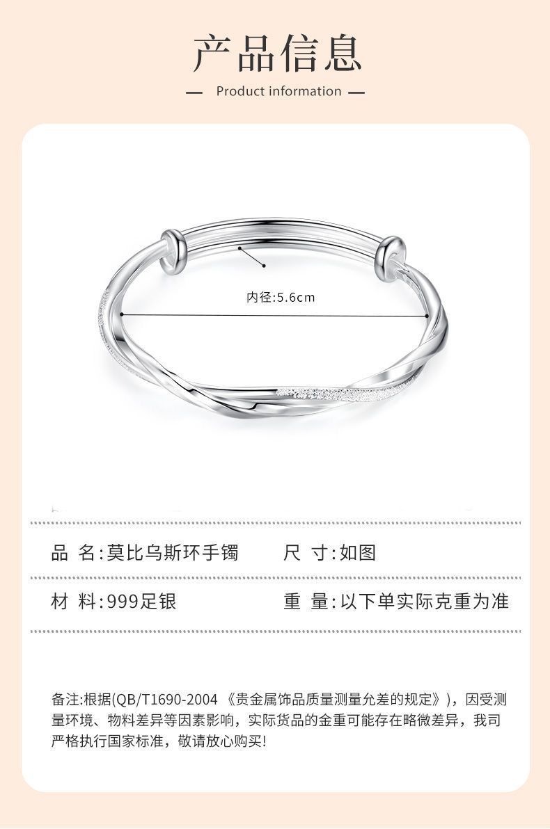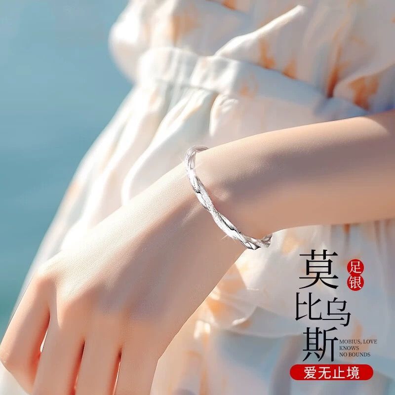 莫比乌斯环纯银手镯女s999足银实心推拉学生镯子送妈妈情人节礼物