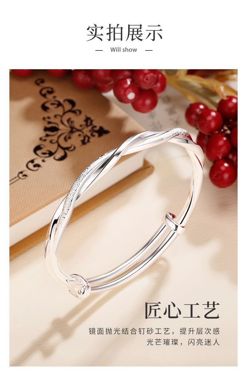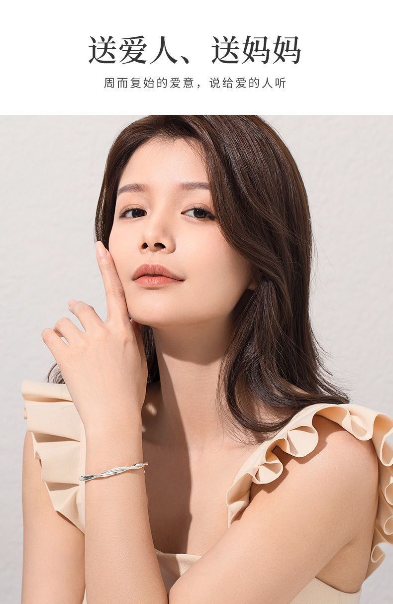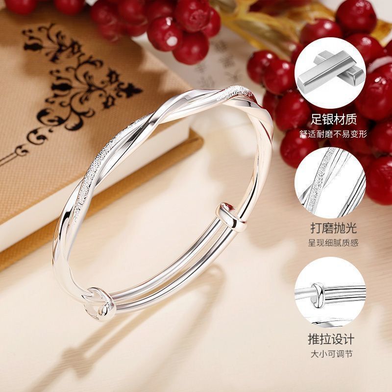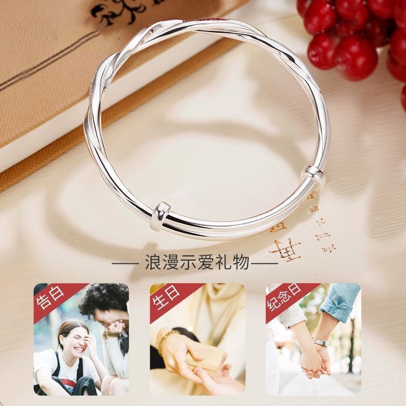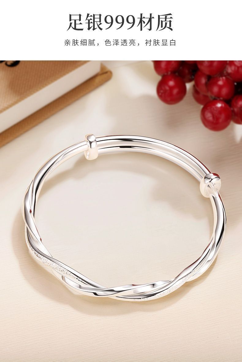 莫比乌斯环纯银手镯女s999足银实心推拉学生镯子送妈妈情人节礼物