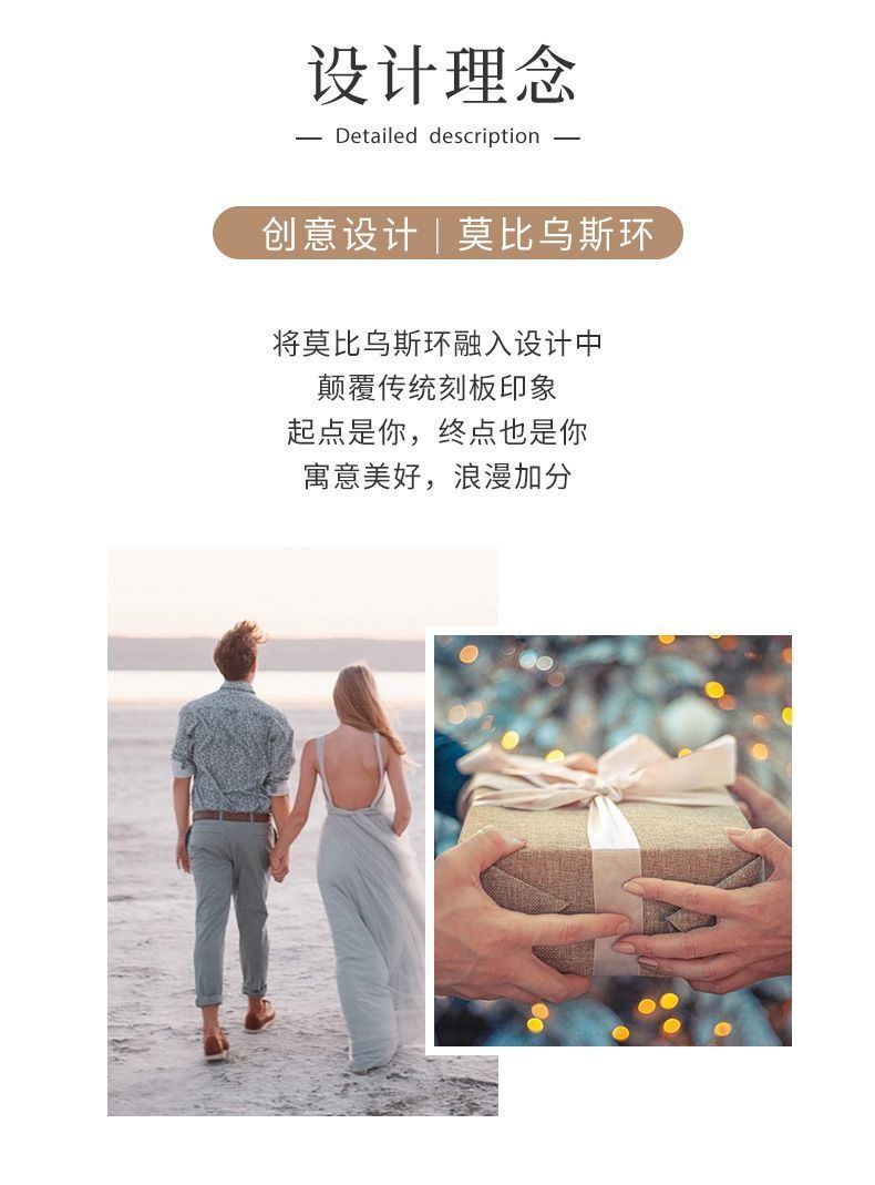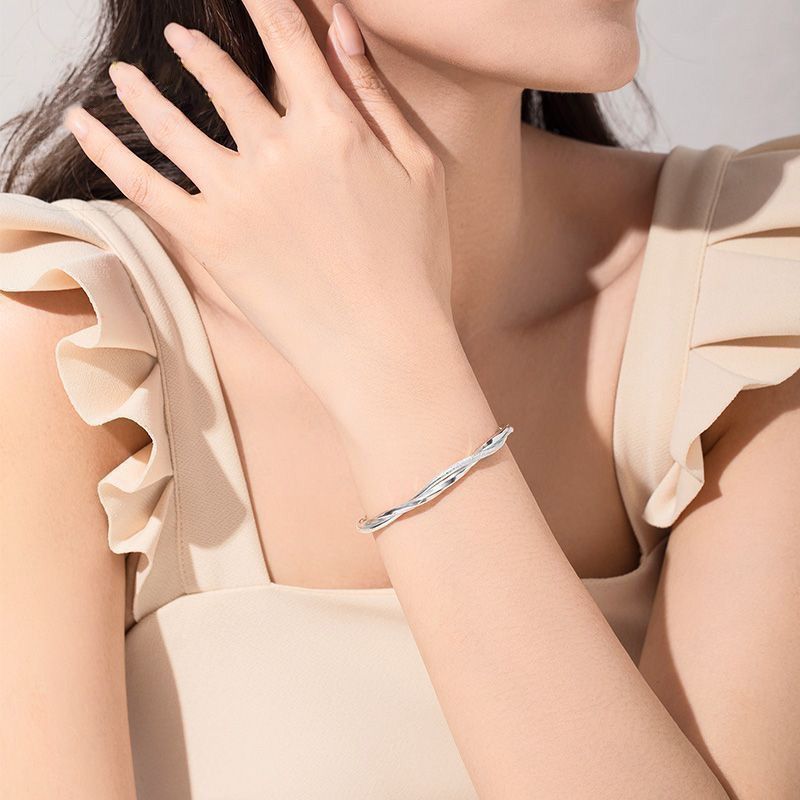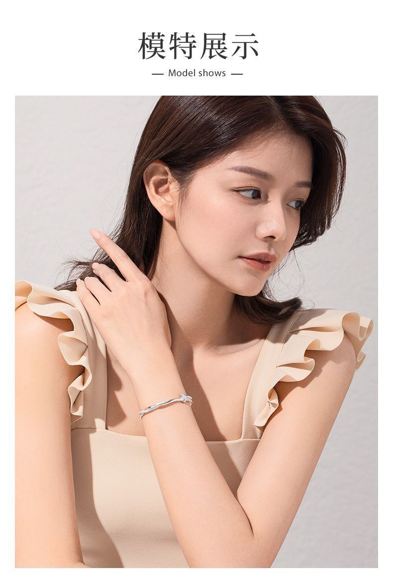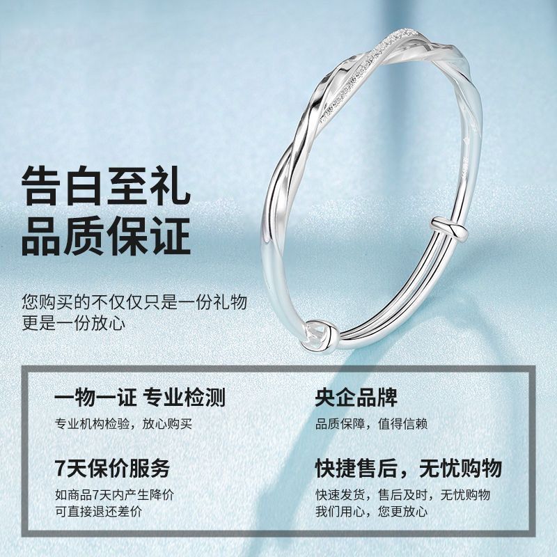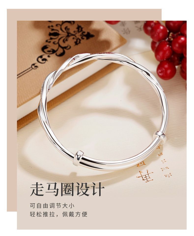 莫比乌斯环纯银手镯女s999足银实心推拉学生镯子送妈妈情人节礼物