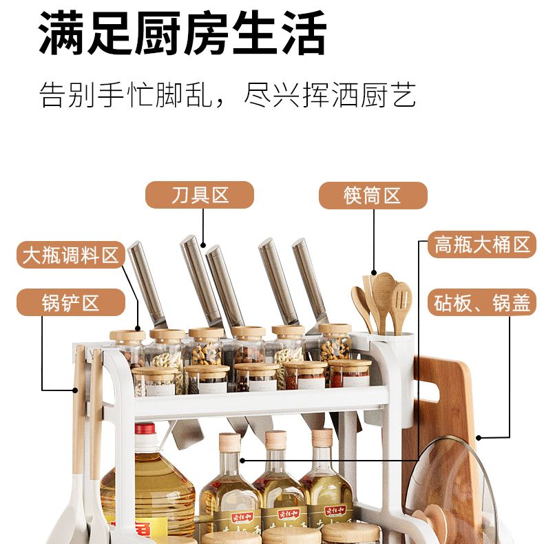 厨房置物架调味料罐收纳架厨房用具收纳盒塑料台面落地刀架储物架