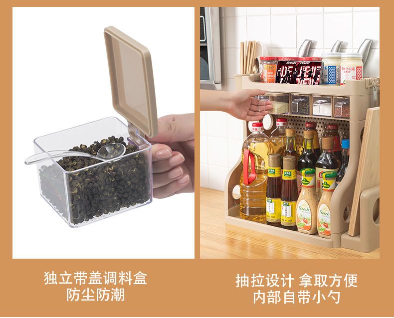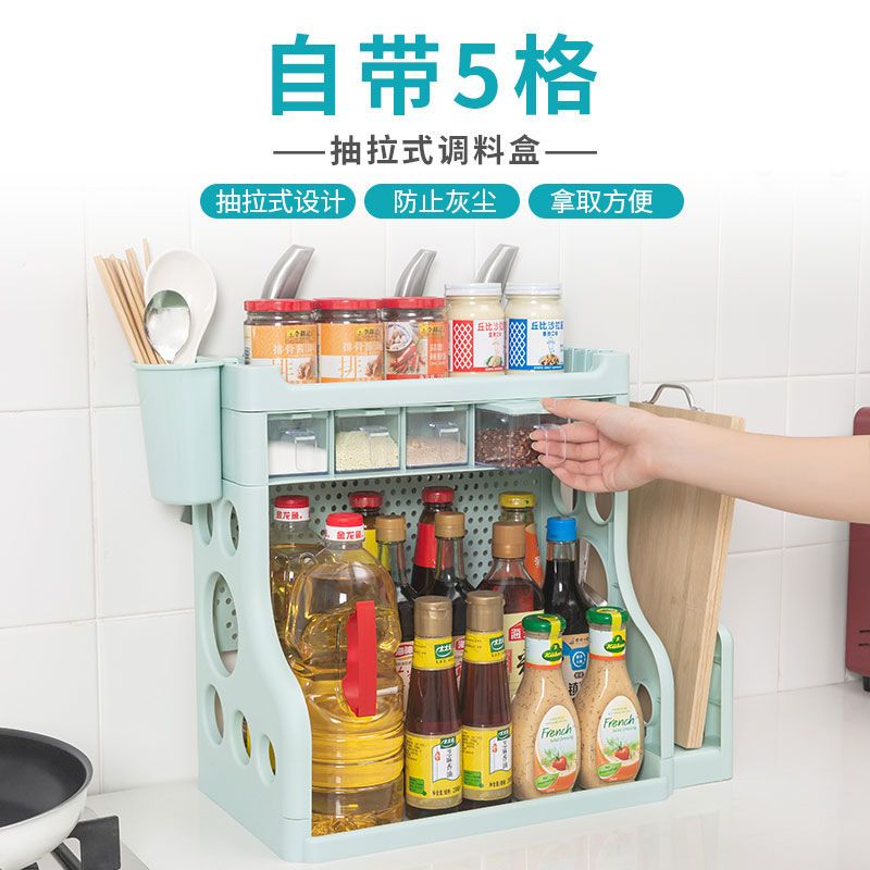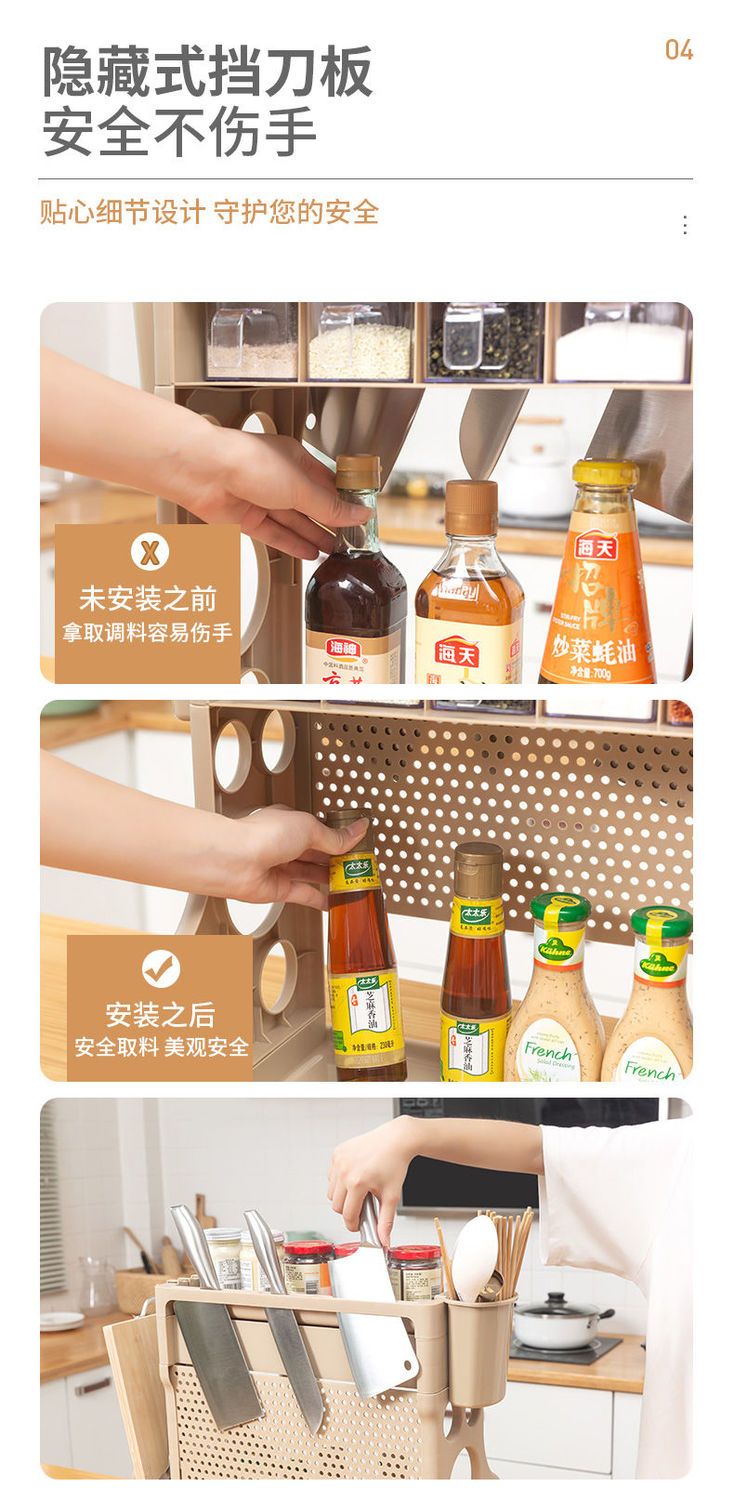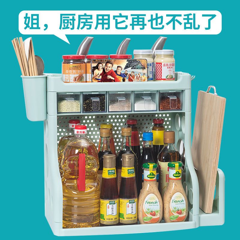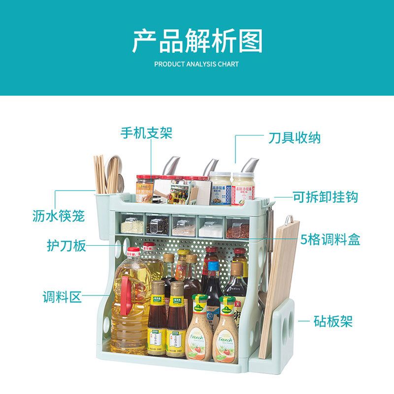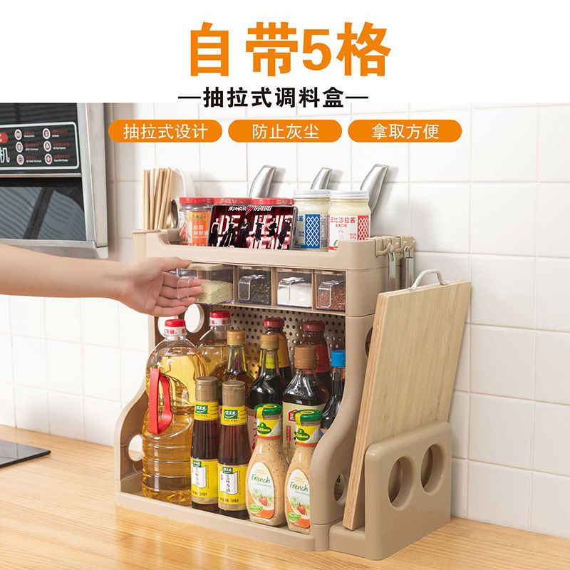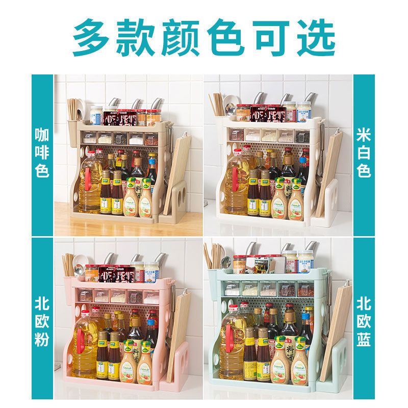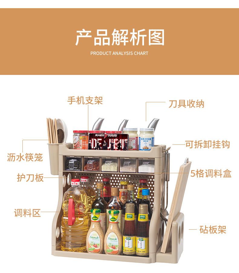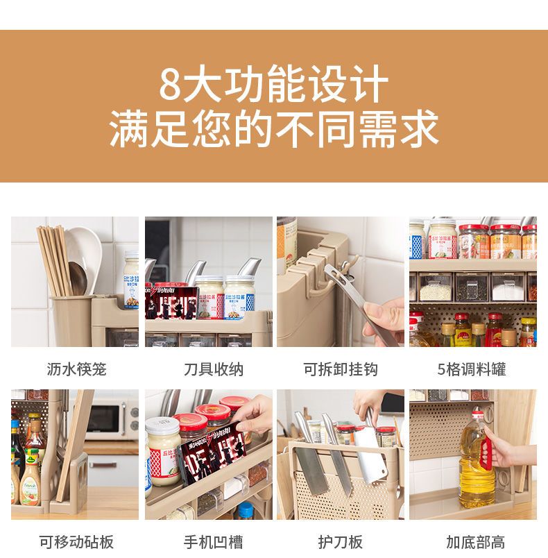 厨房置物架免打孔调料架子收纳架塑料多功能调料盒套装刀架菜板架