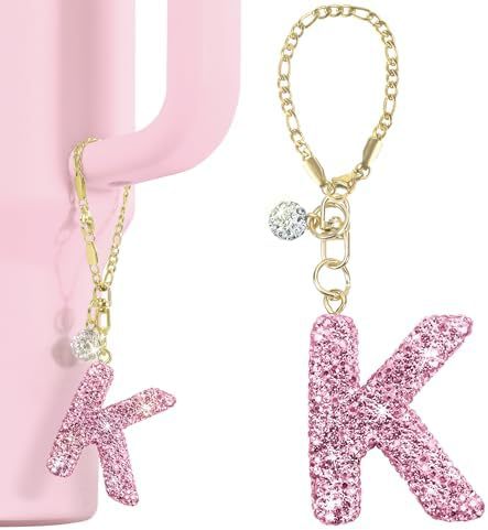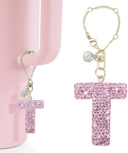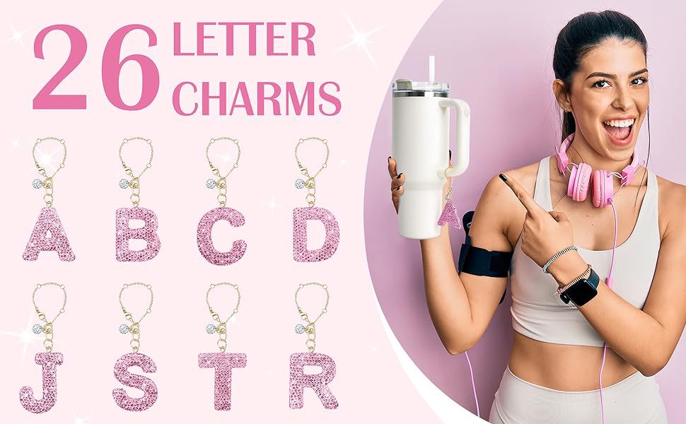 斯坦利杯镶钻字母吊饰不倒翁瓶链带手柄软陶英文字母钥匙扣配件