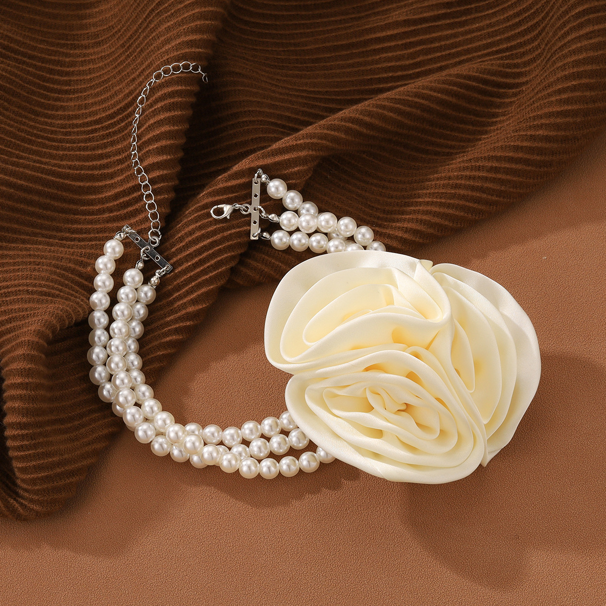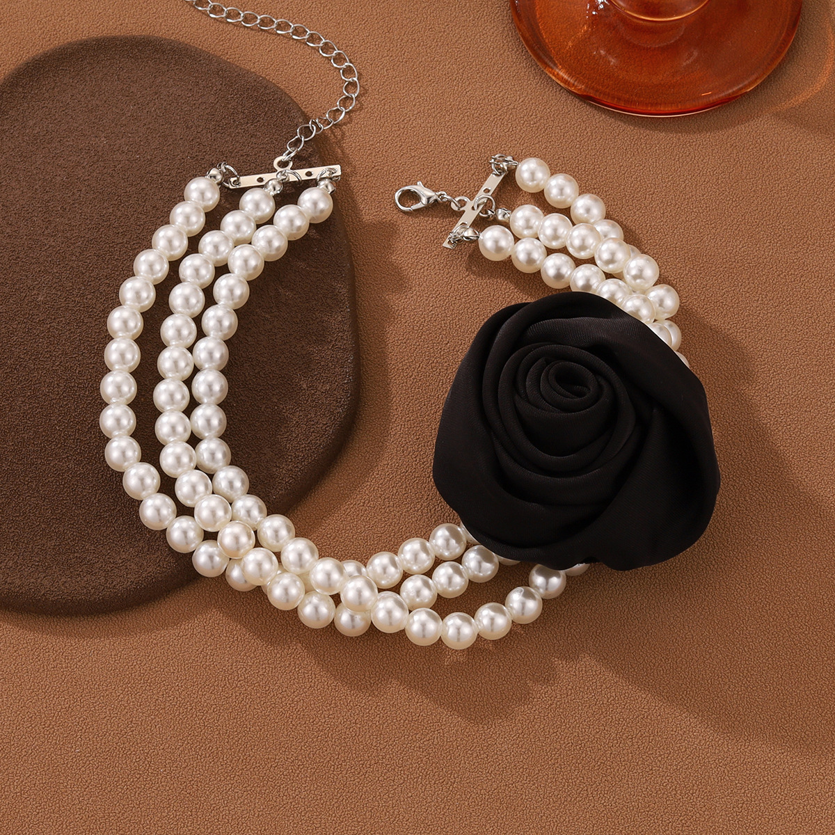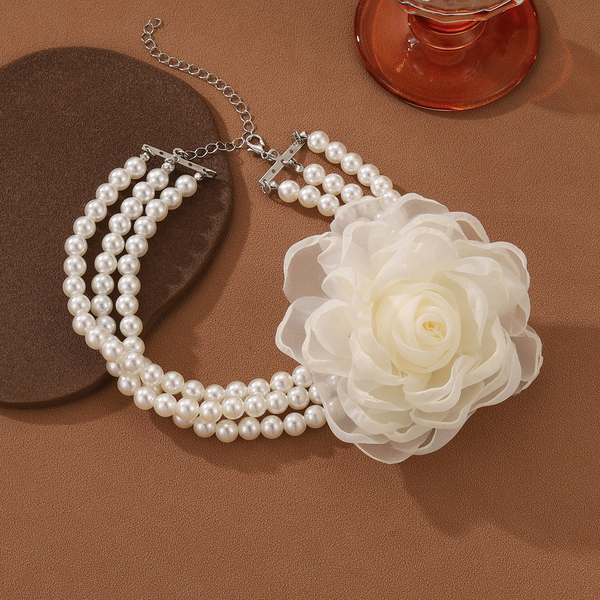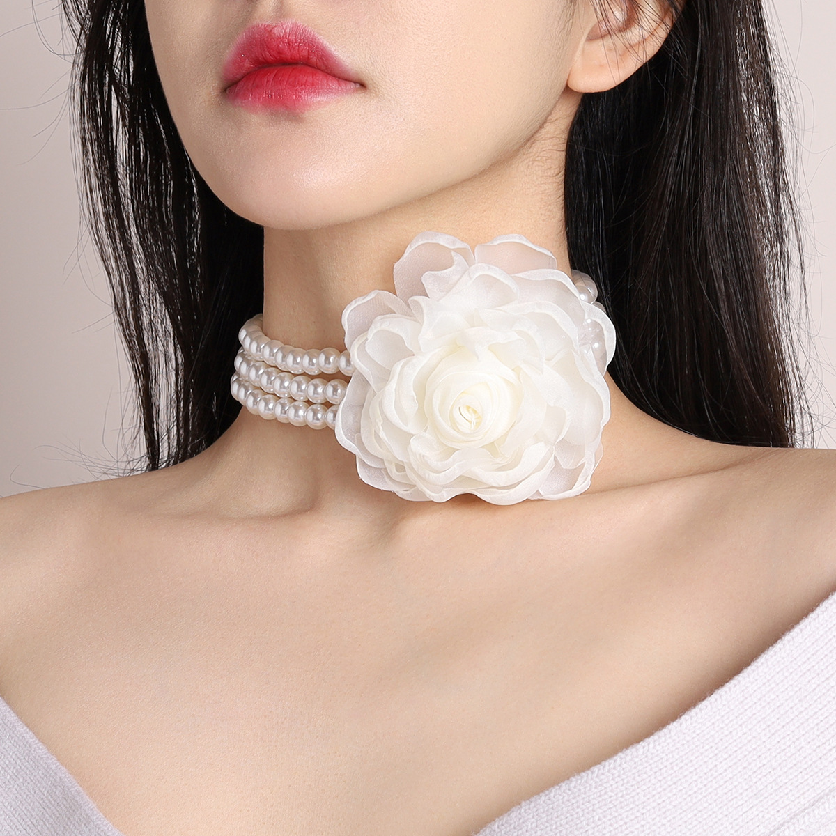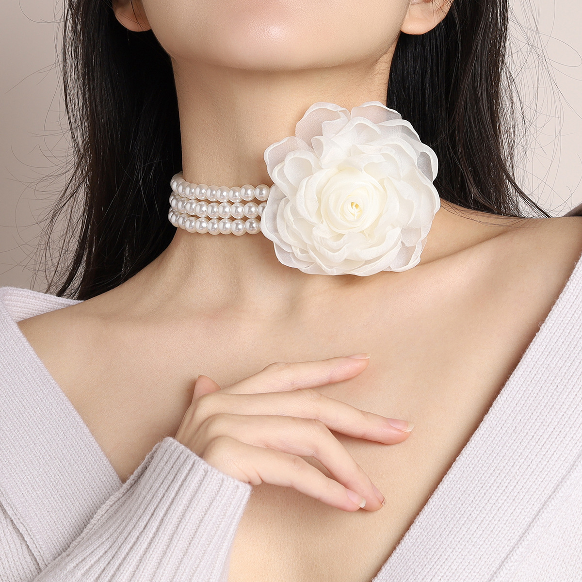 跨境现货高级感珍珠项链时尚简约choker脖子配饰颈链女花朵锁骨链