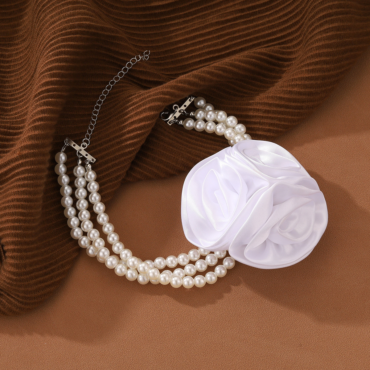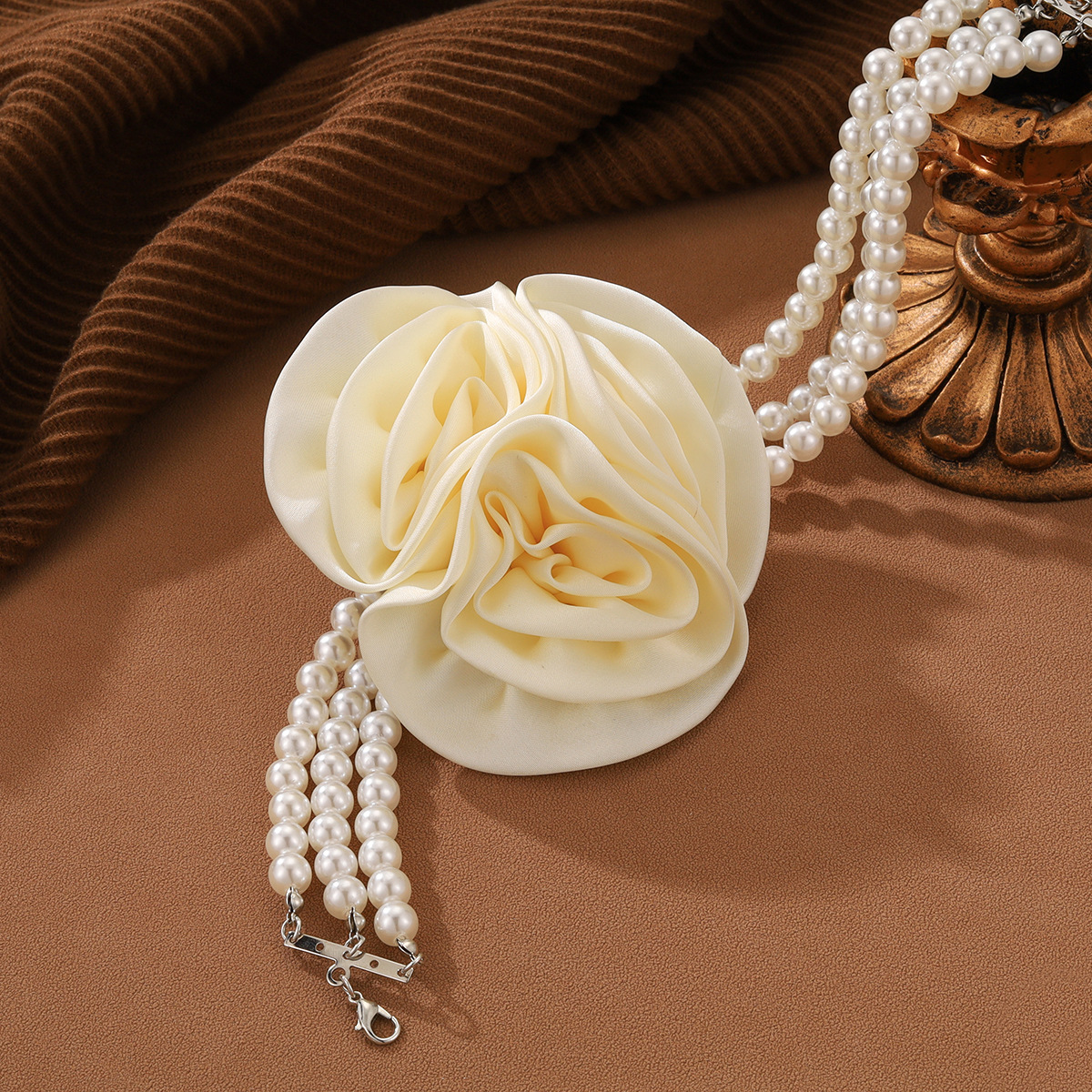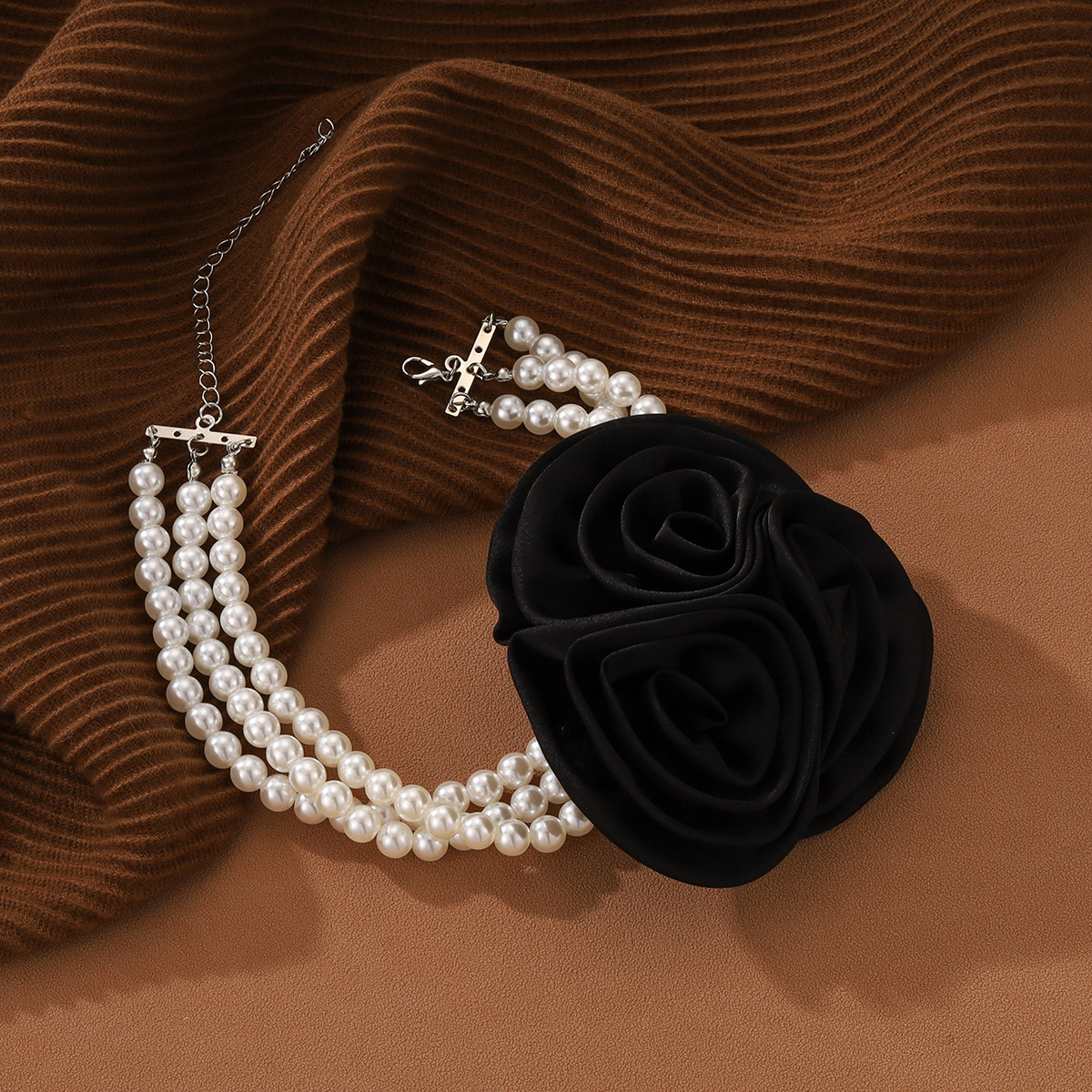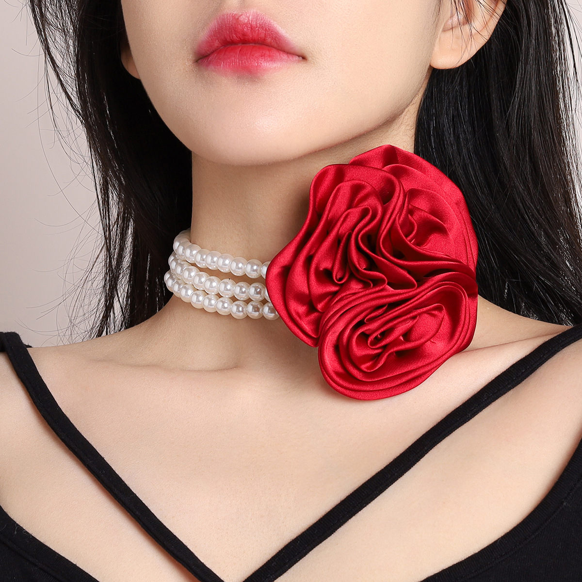 跨境现货高级感珍珠项链时尚简约choker脖子配饰颈链女花朵锁骨链
