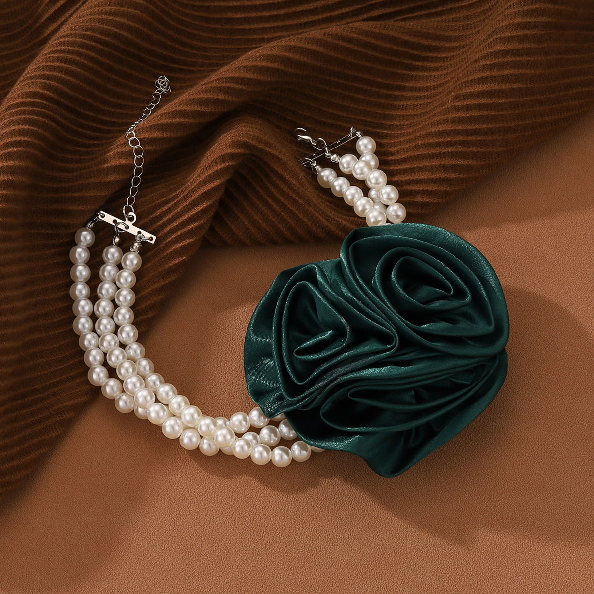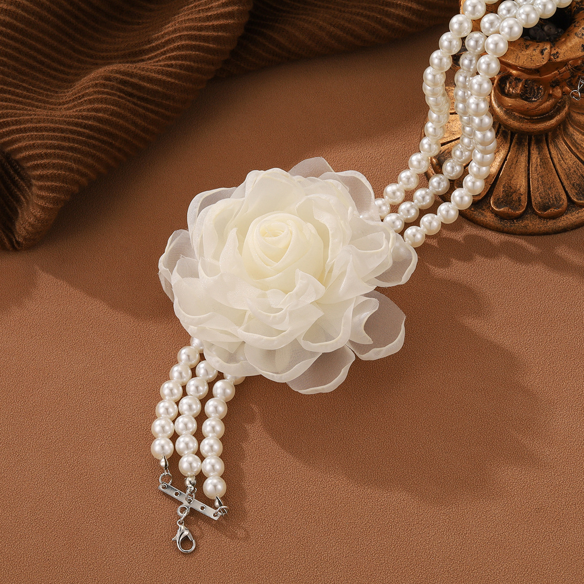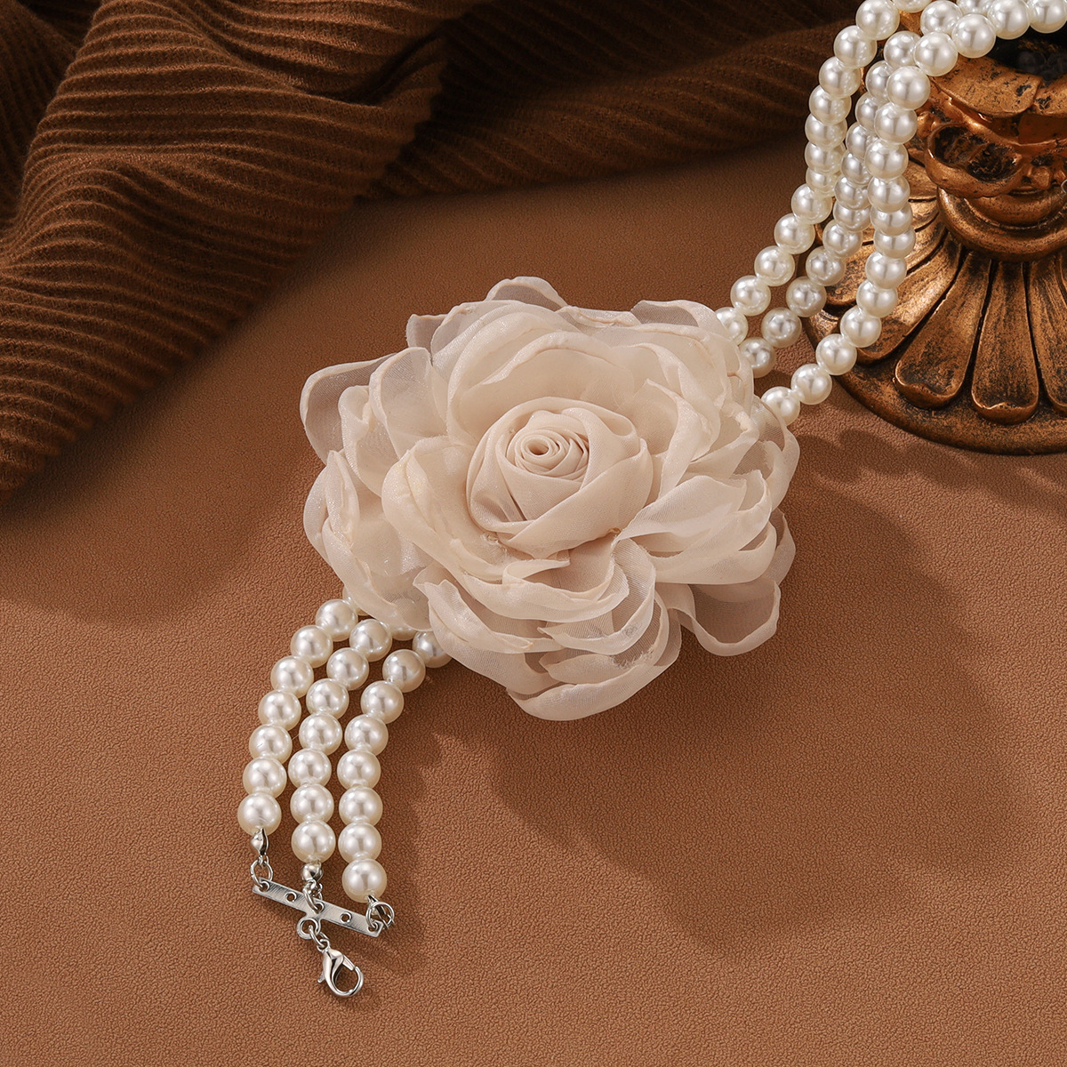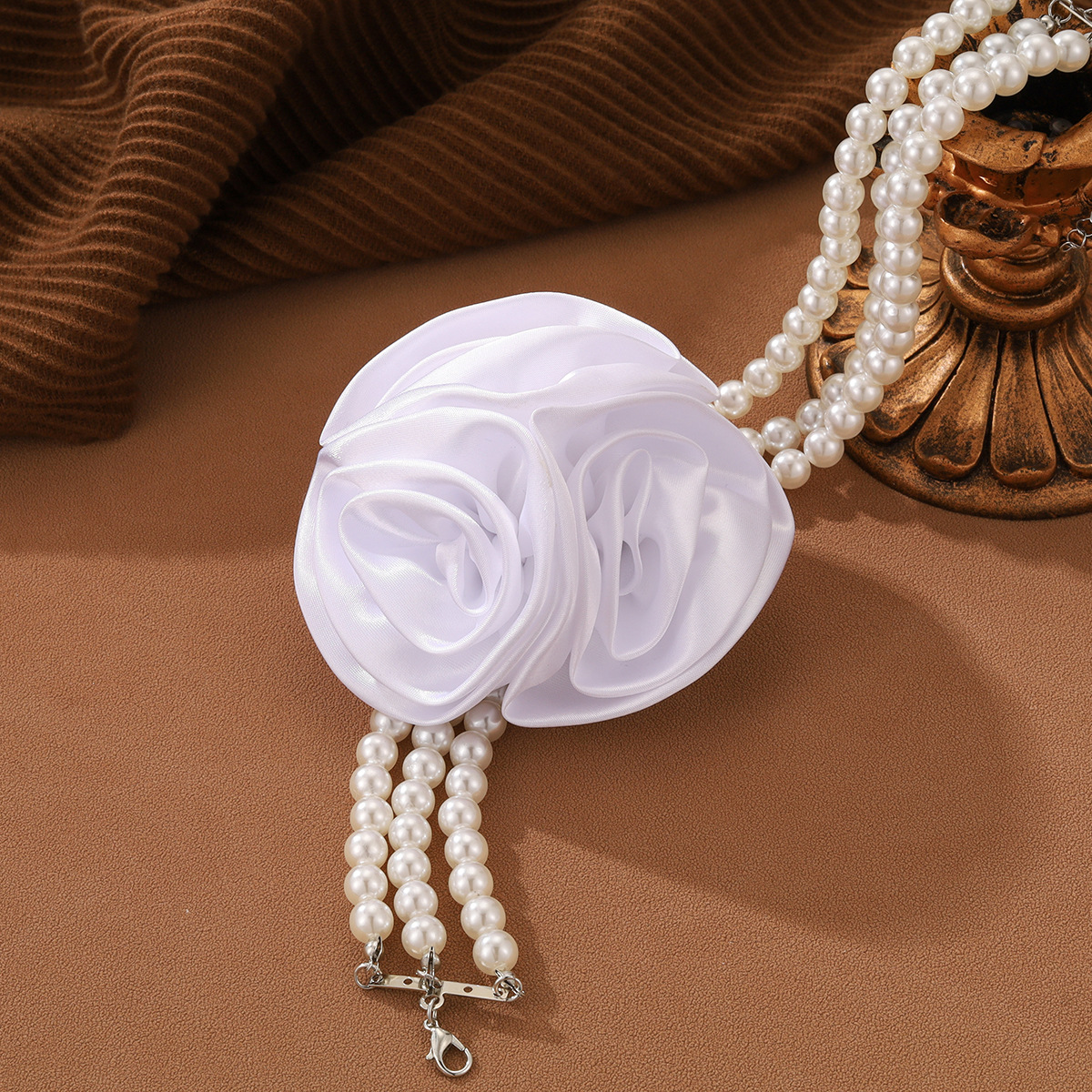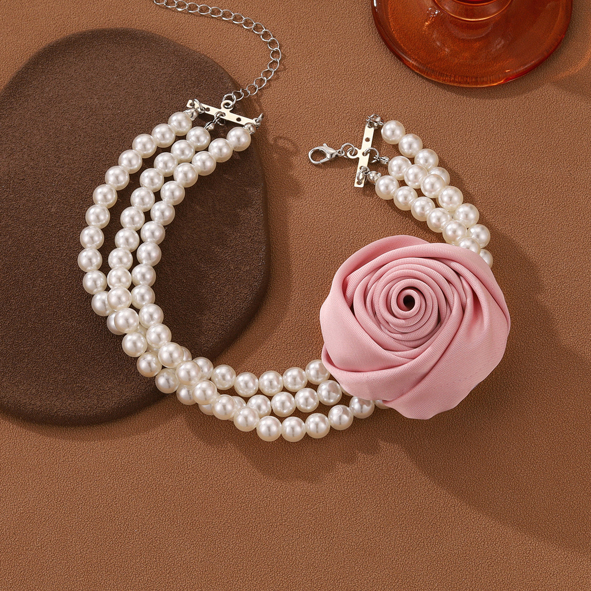 跨境现货高级感珍珠项链时尚简约choker脖子配饰颈链女花朵锁骨链