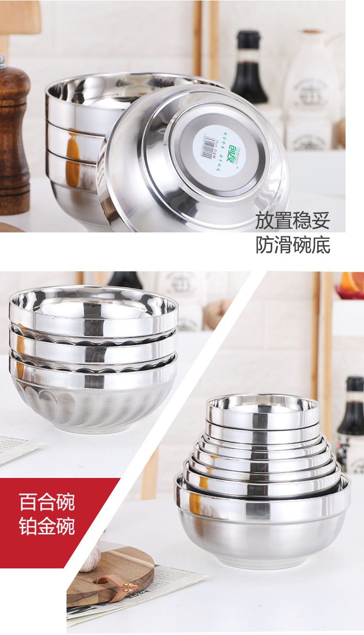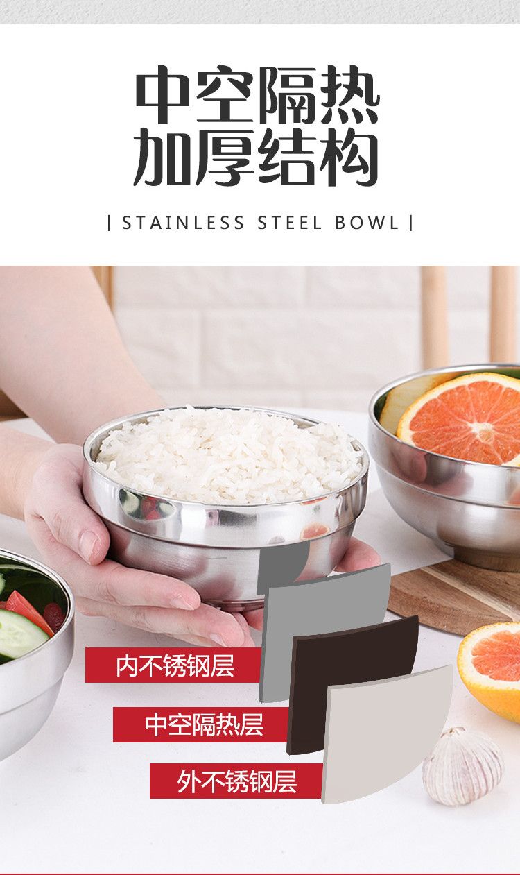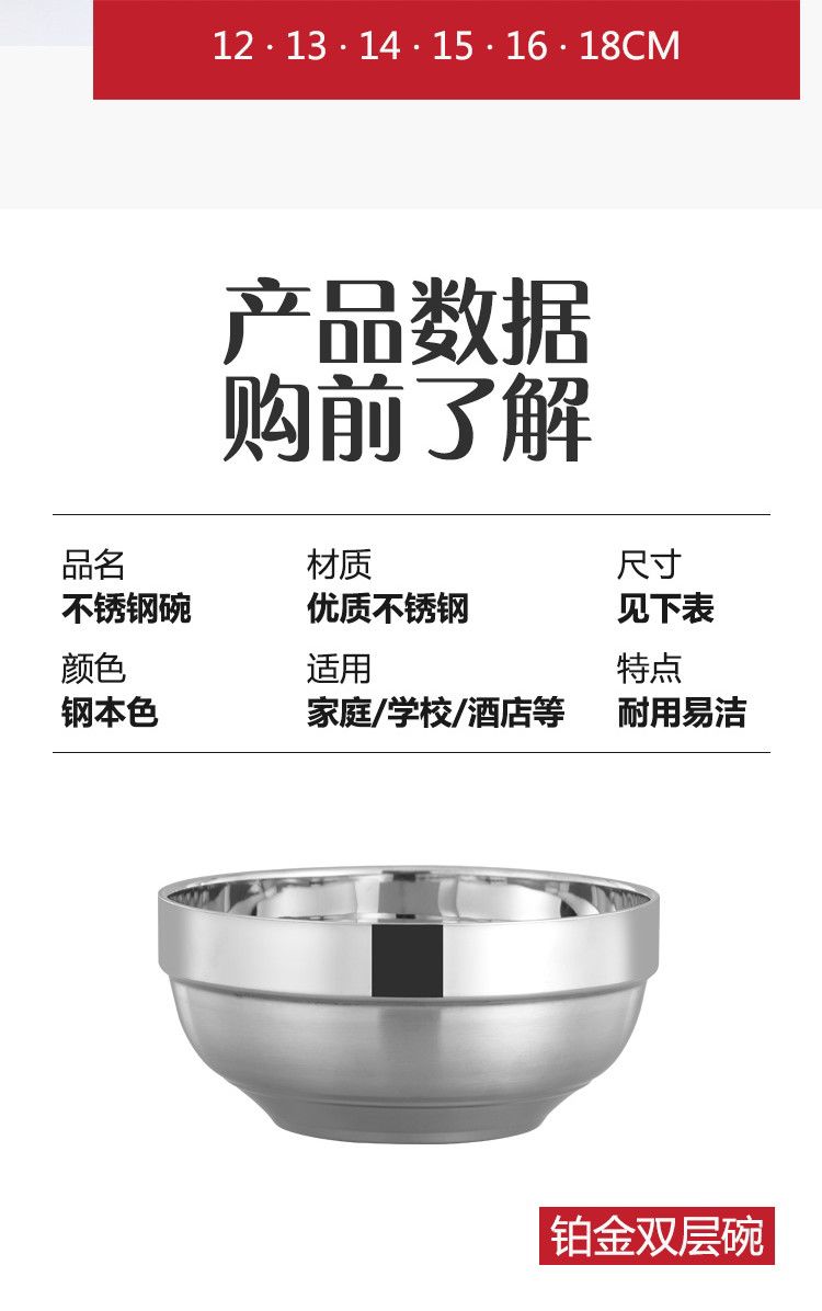 加厚316L不锈钢碗家用食堂双层碗隔热防烫成人泡面碗儿童碗防烫碗