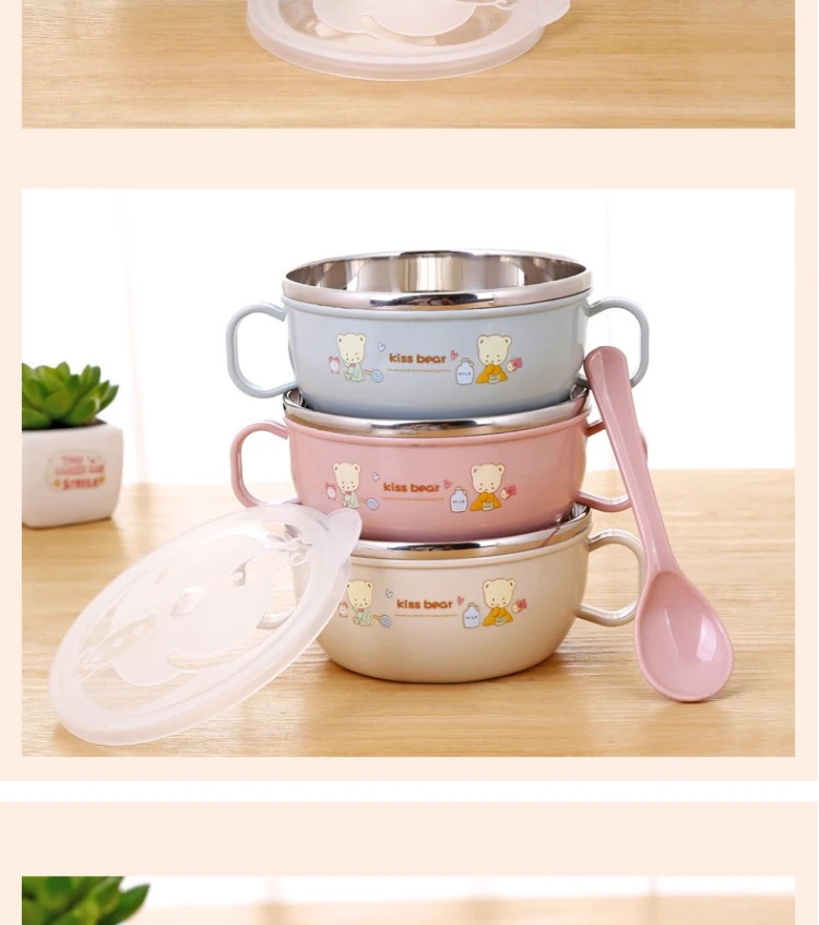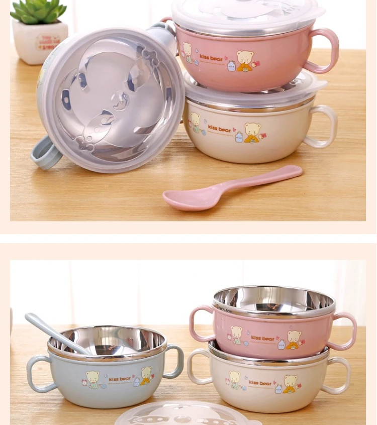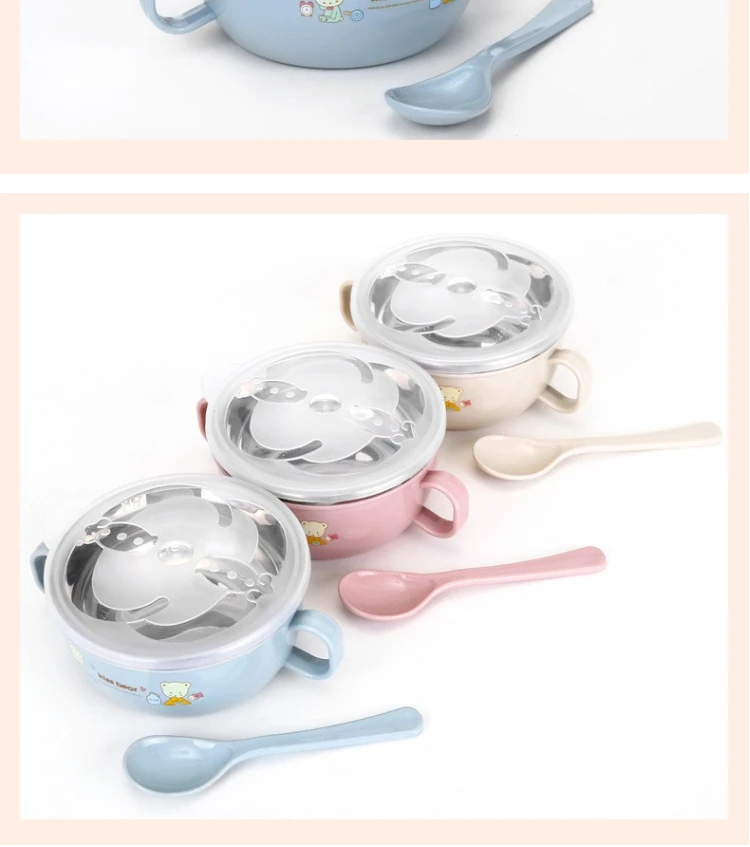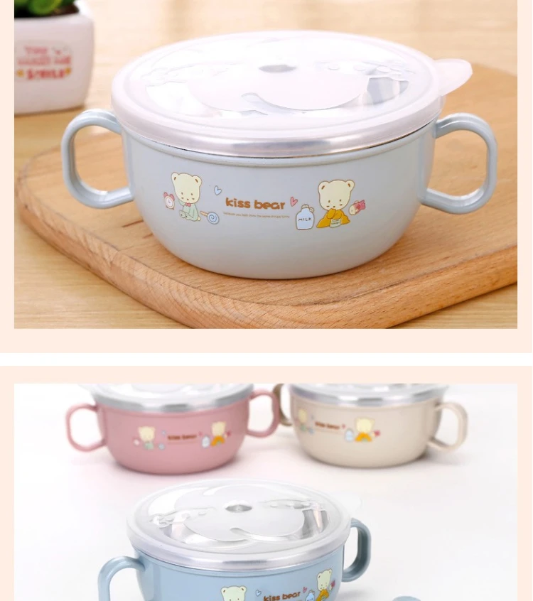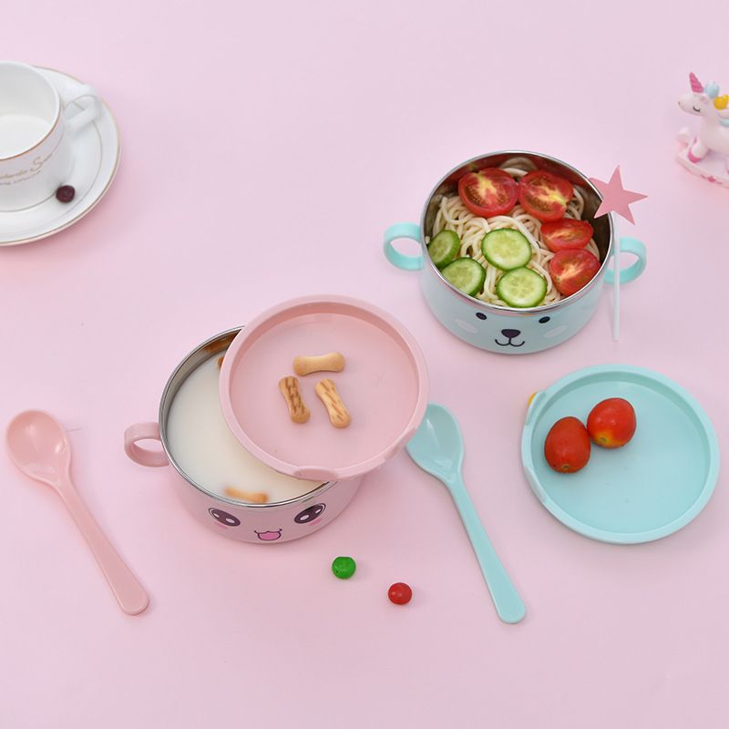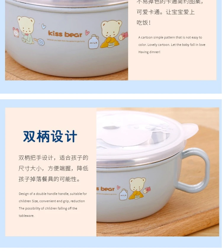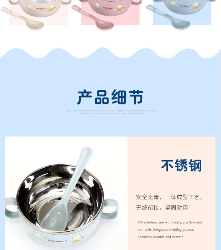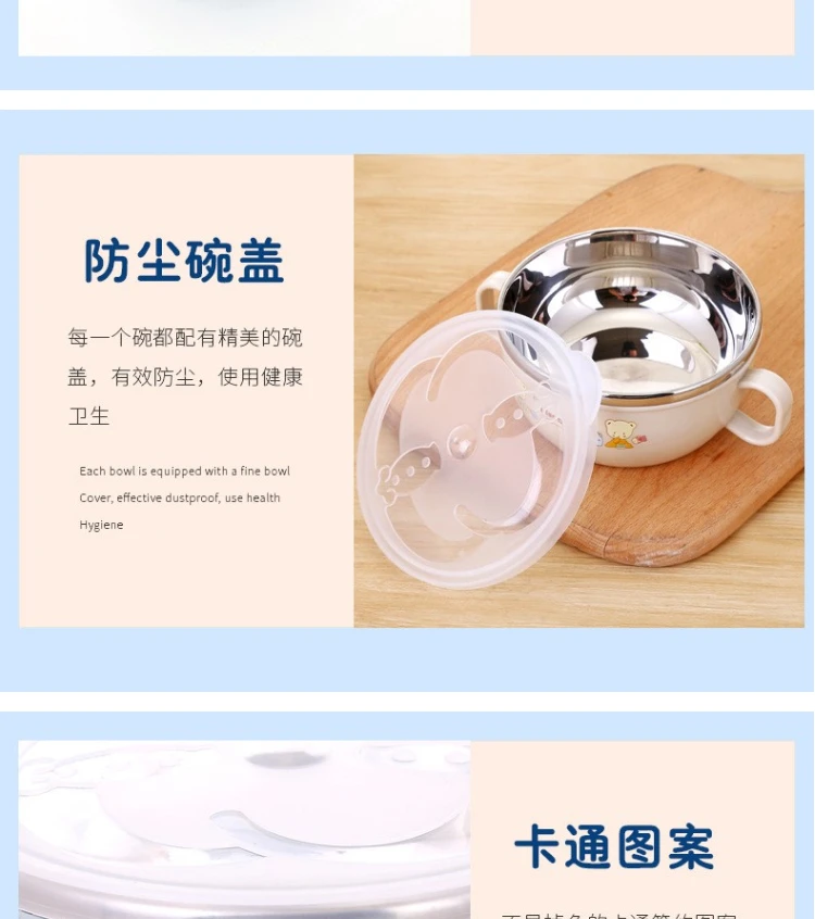 儿童不锈钢碗宝宝小碗吃饭碗带盖辅食碗婴幼儿双层防摔防烫隔热碗