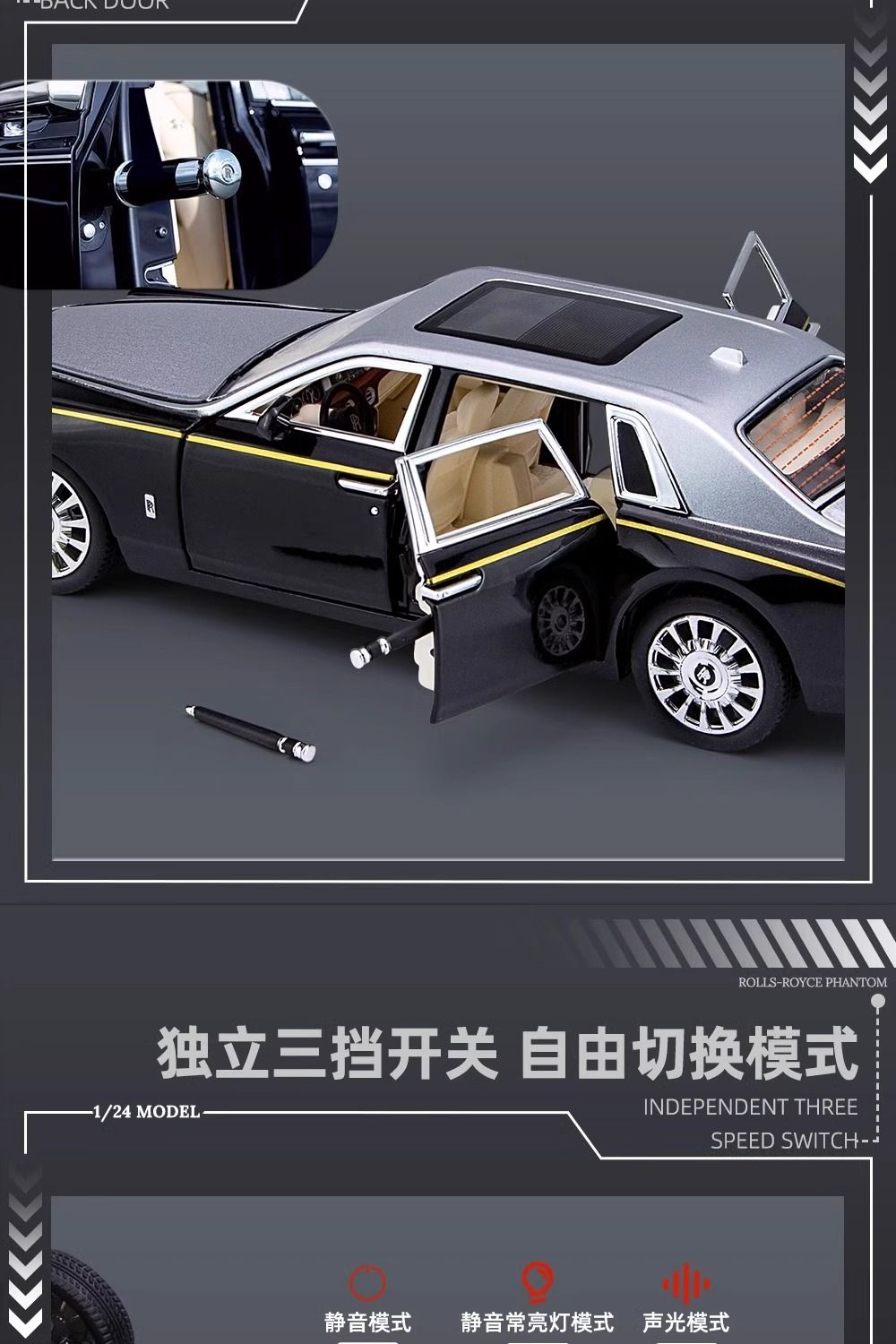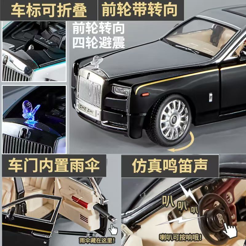 1∶24劳斯莱斯幻影仿真汽车模型儿童玩具车回力合金车模男孩礼物