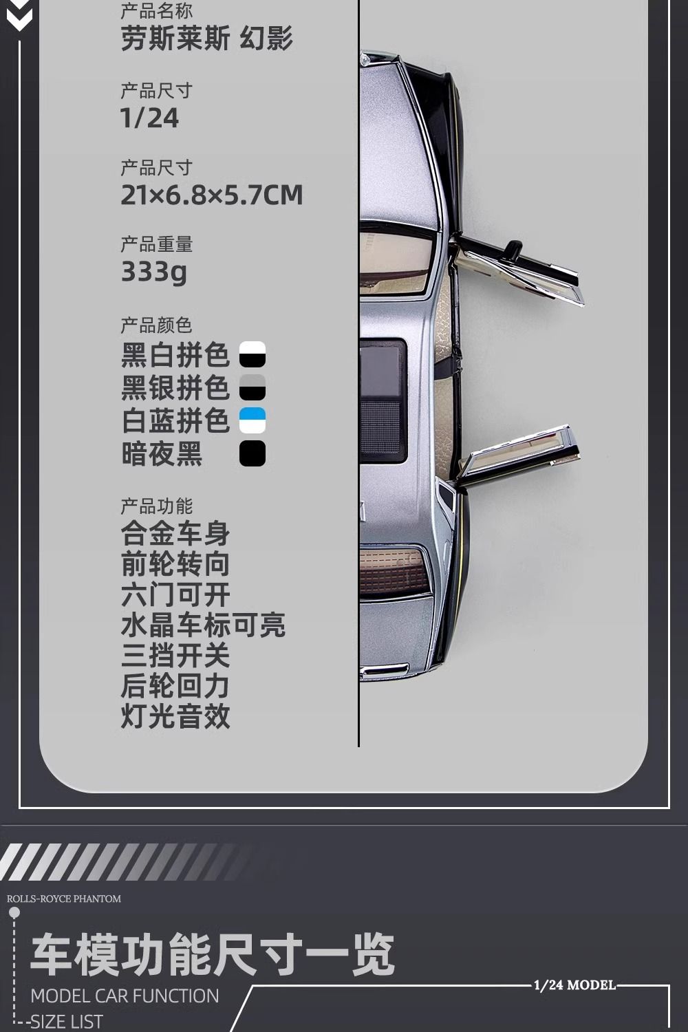 | 1:32-rolls-royce phantom-black and white patchwork(1:32-劳斯莱斯幻影-黑白拼) | USD $11.08 | 999999 piece available |